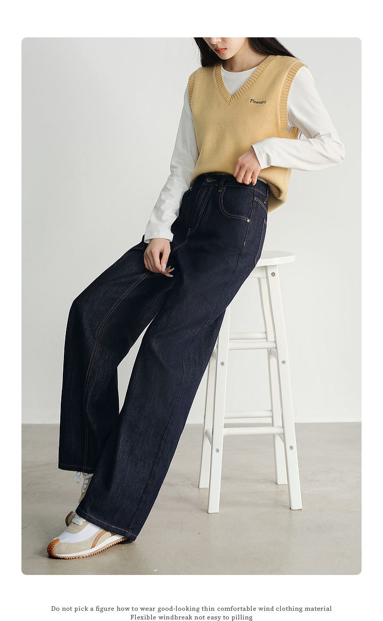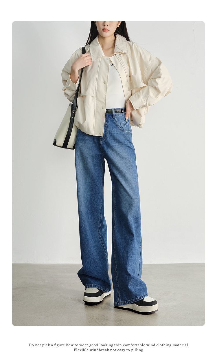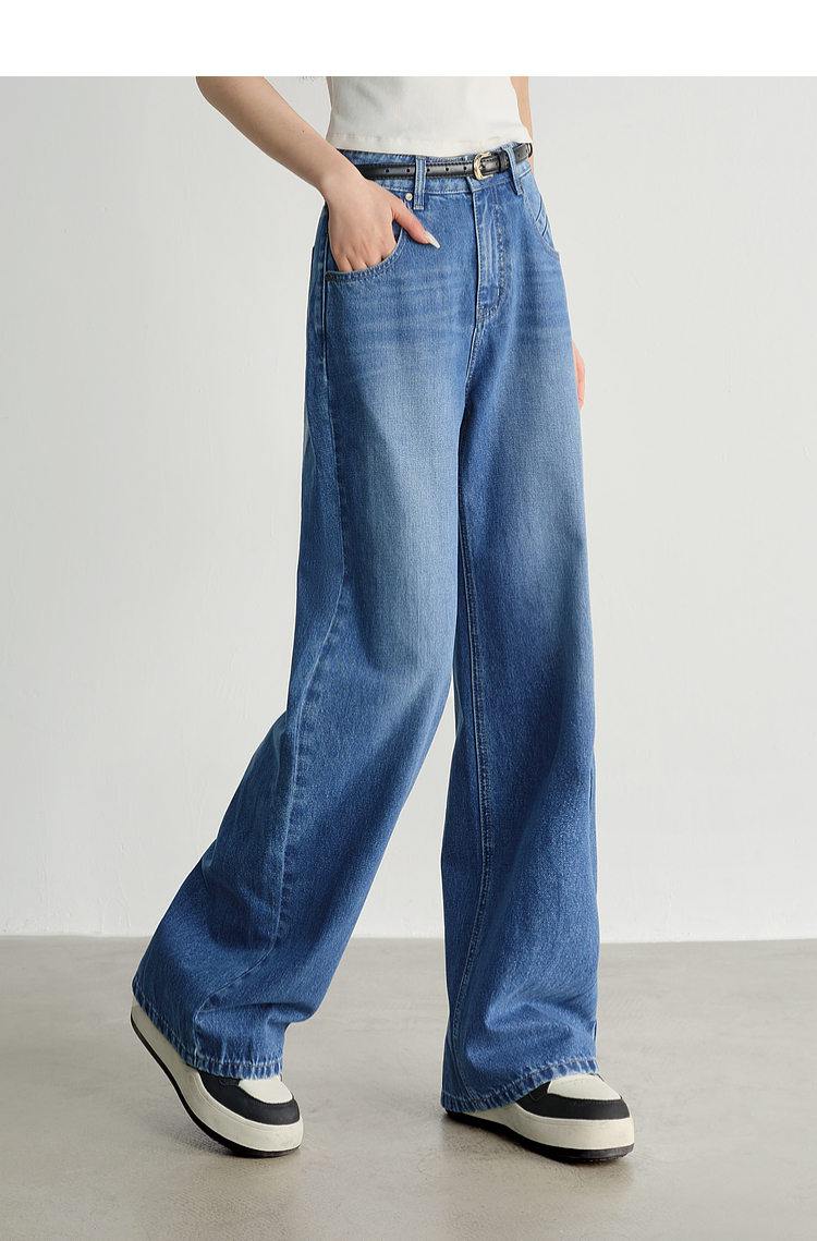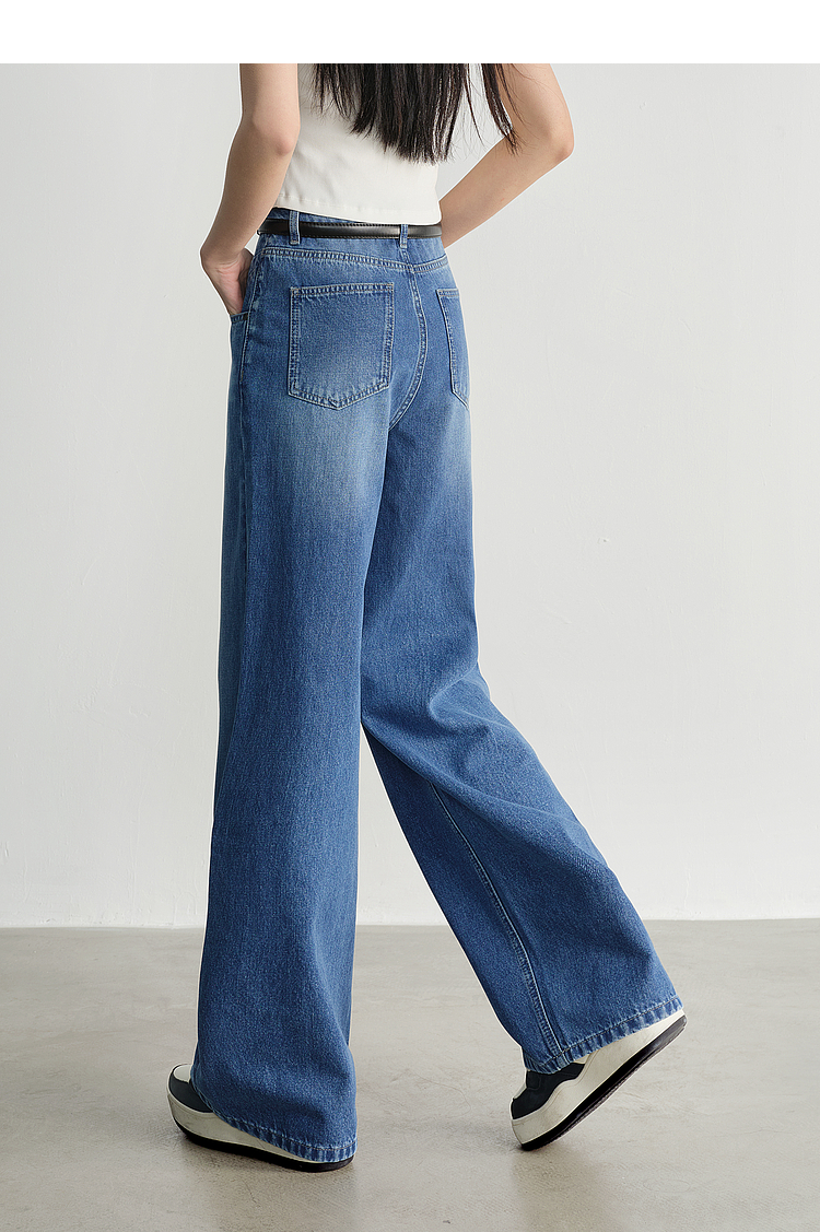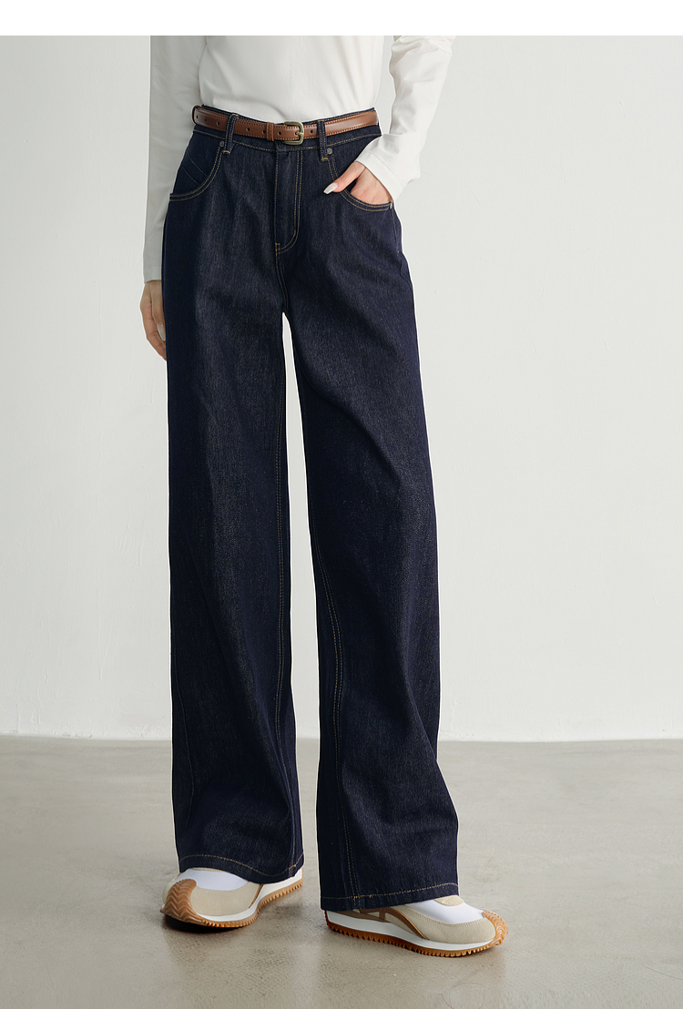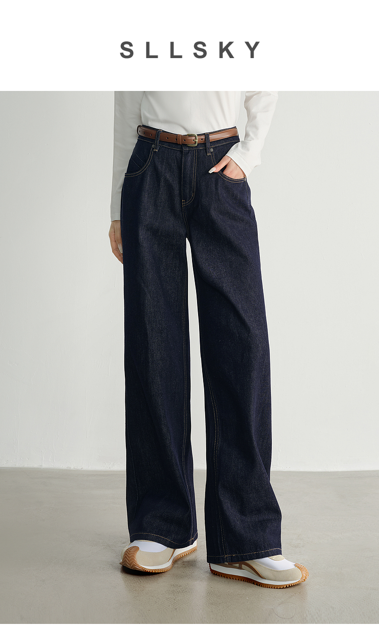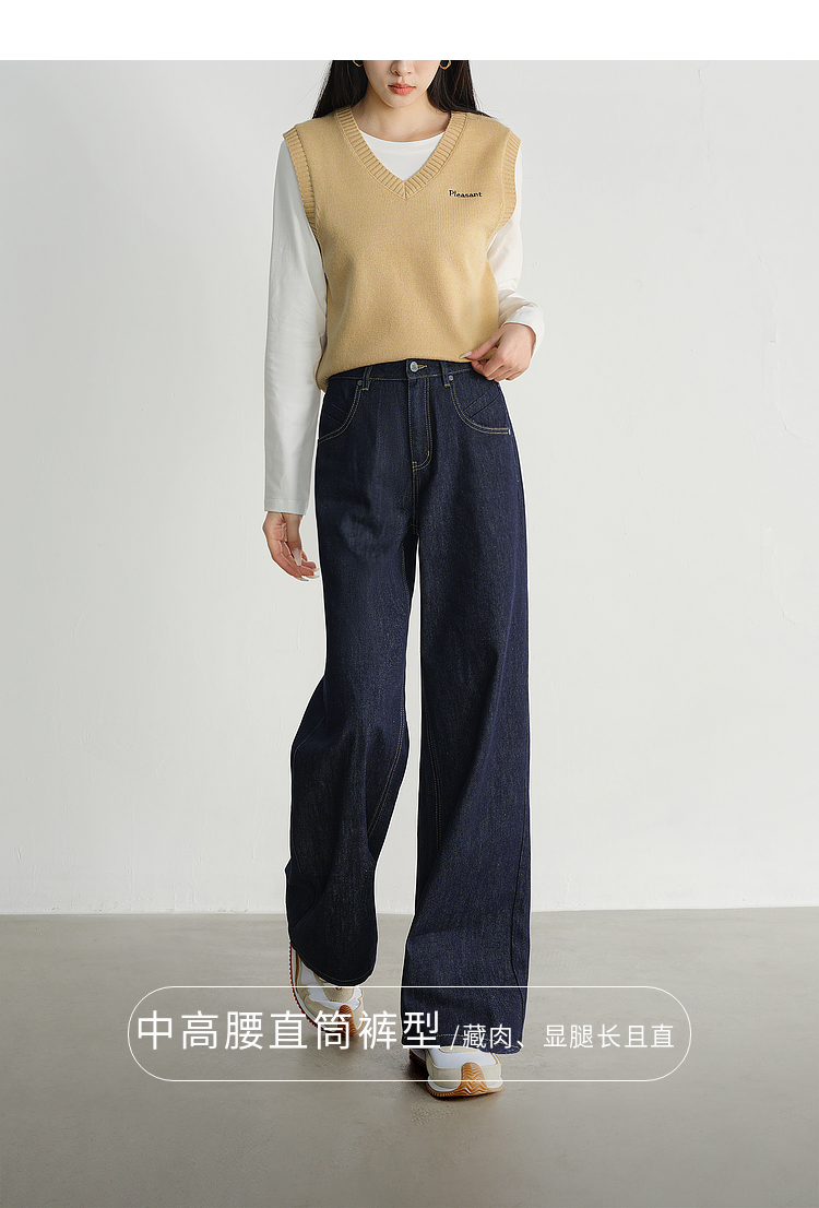 【专属特价】熙世界白色牛仔裤女直筒宽松2025年春秋新款高腰显高窄版阔腿裤子