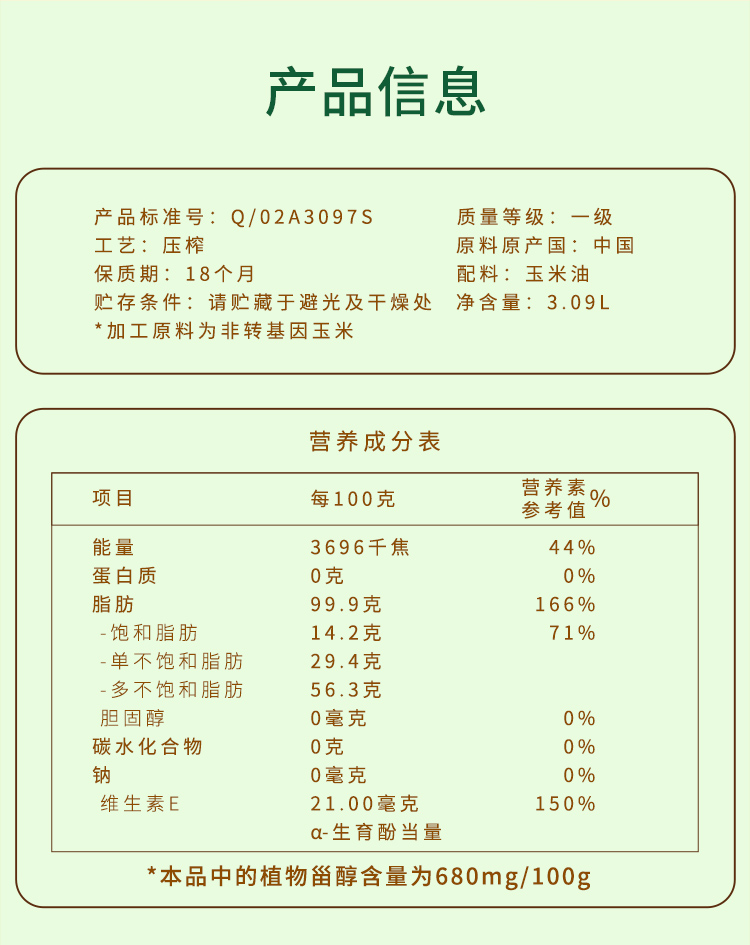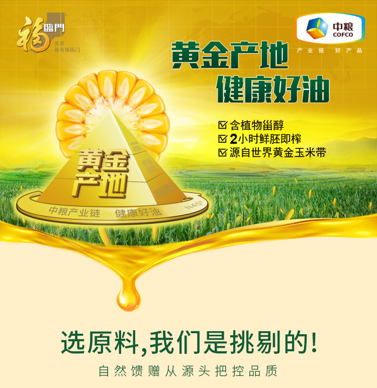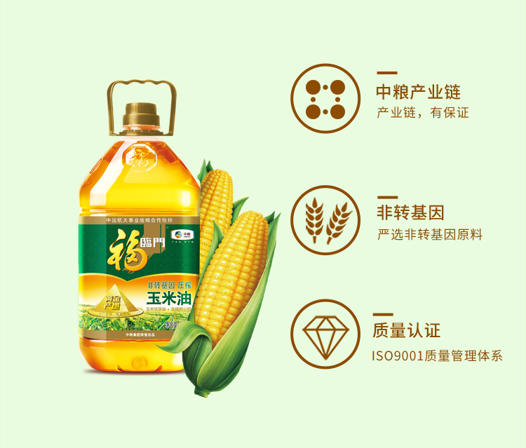 福临门 食用油 非转基因压榨玉米油3.09L 黄金产地 中粮出品