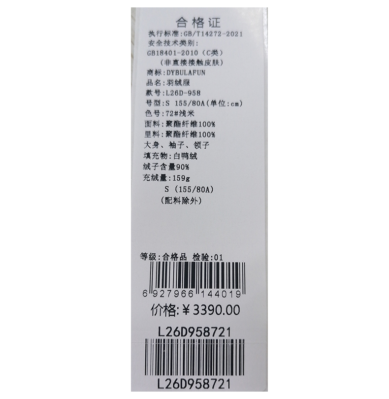 戴布拉芬羽绒服L26D958