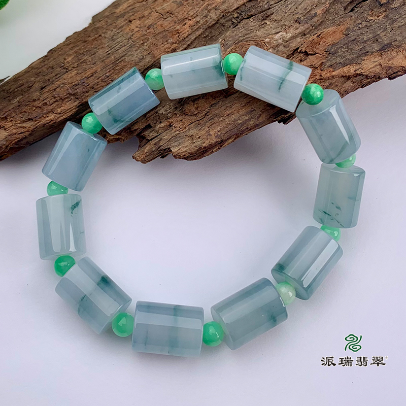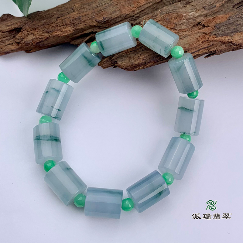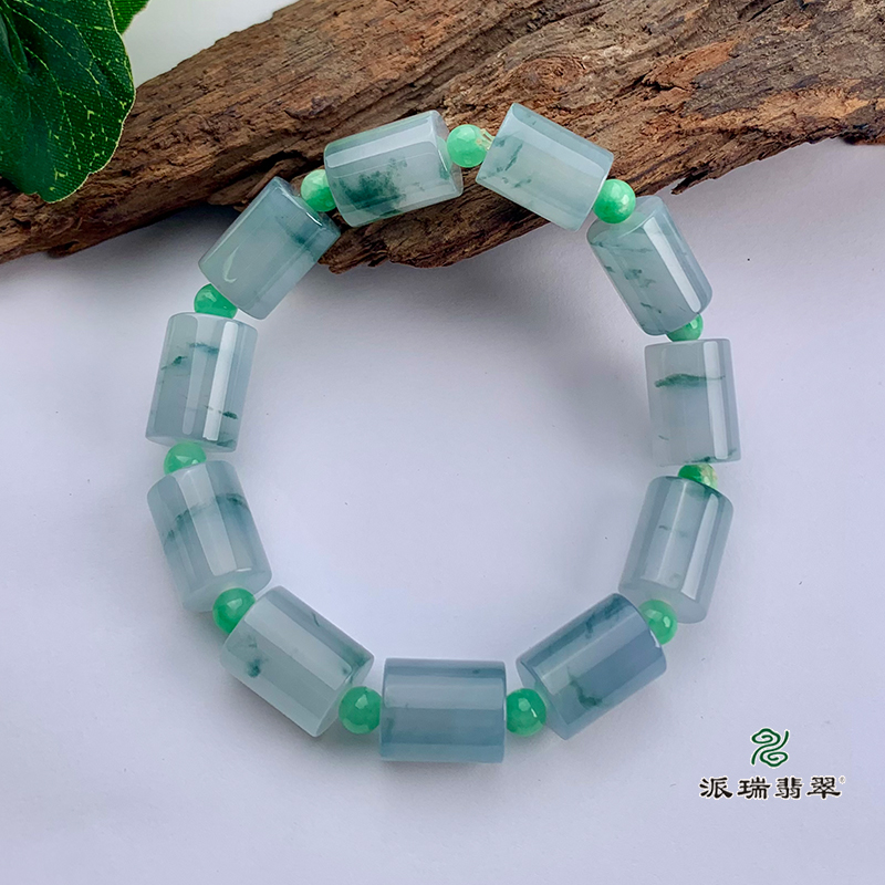 派瑞翡翠 翡翠手链 糯冰种 绿色 飘花