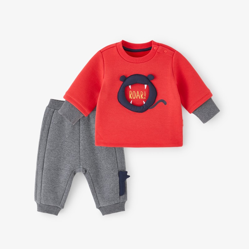 英氏-童衣类(冬)E1新针外着衣裤套婴粟红100CM