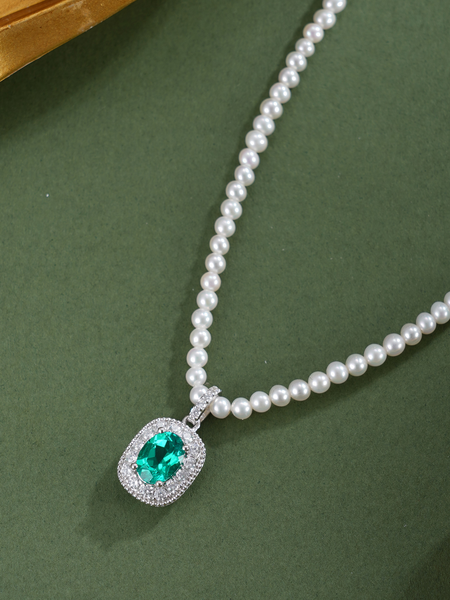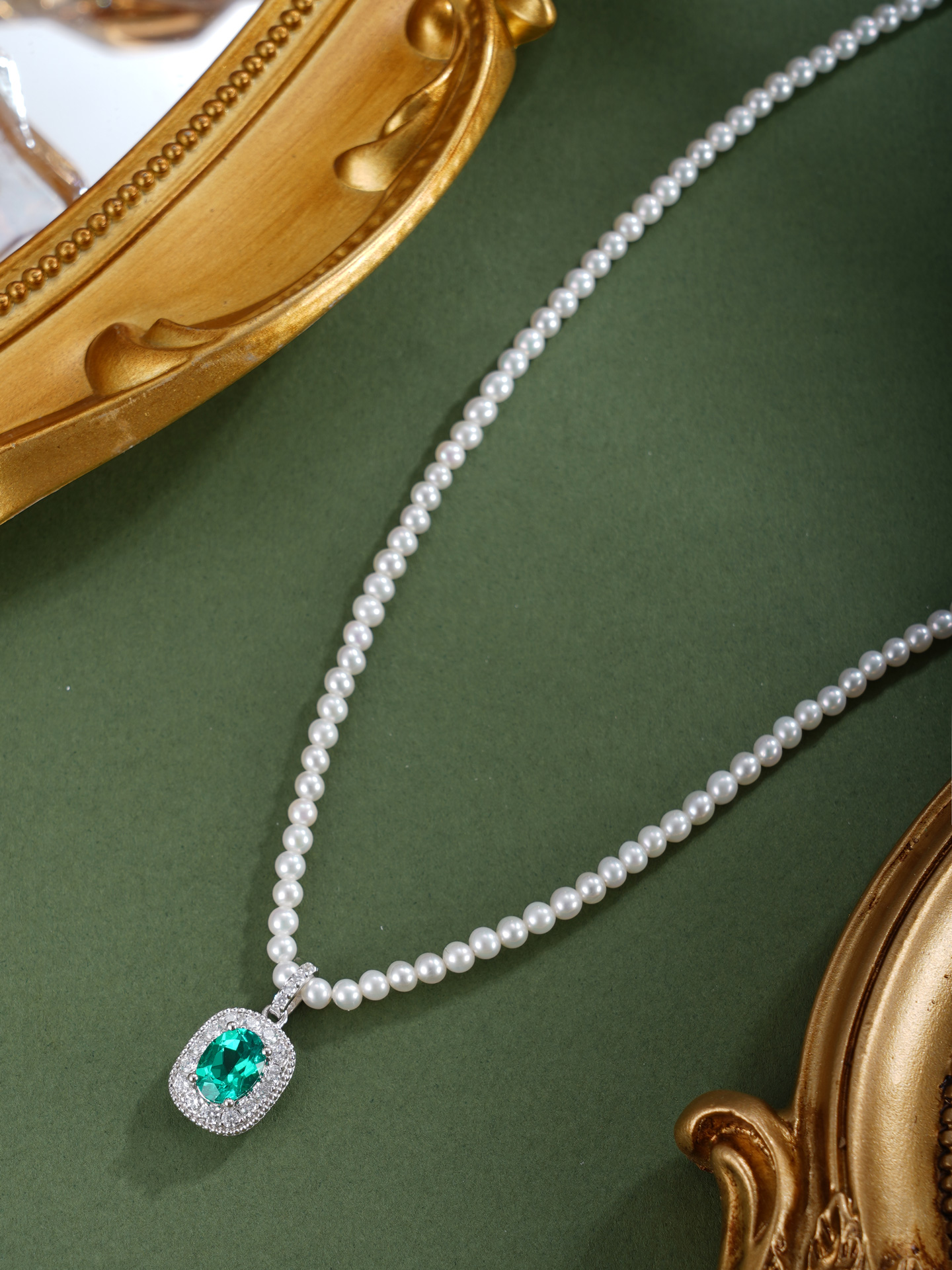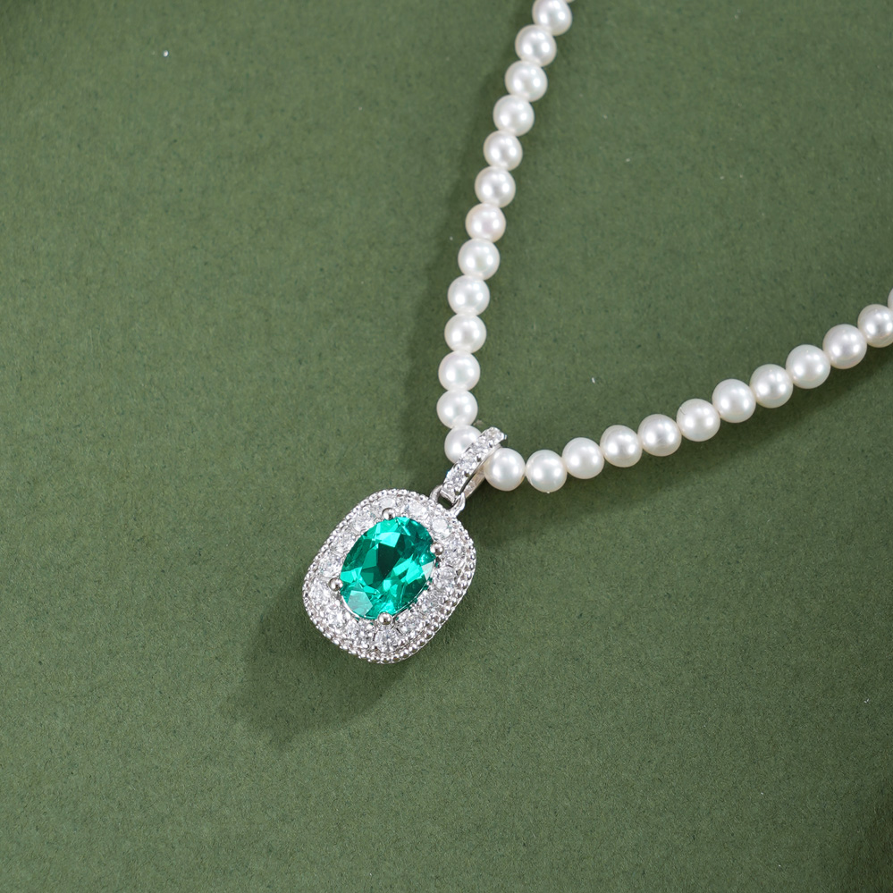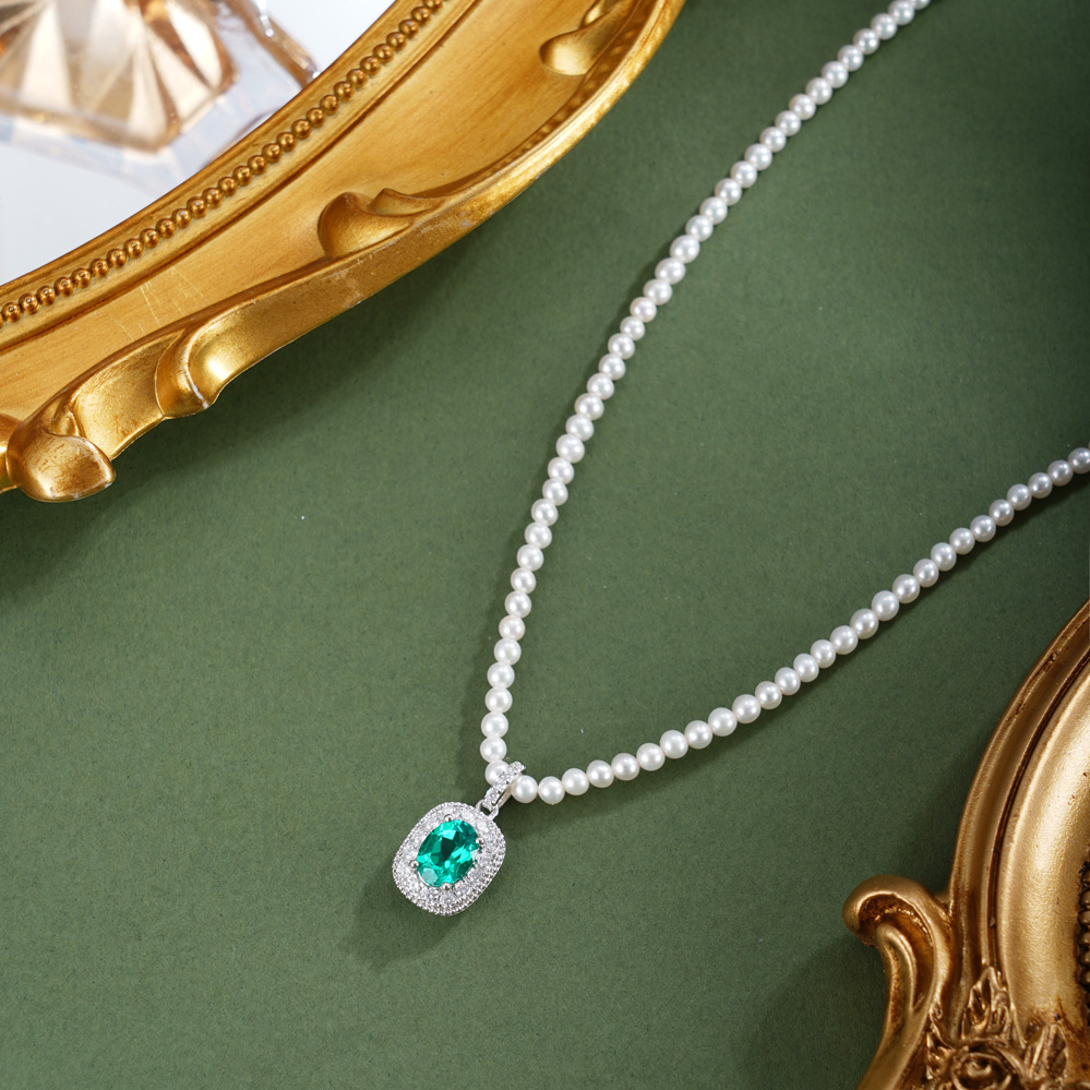 子佩集【岁月新生】银S925珍珠惜王妃项链【ZZXL033】2.8mm珠绿椭圆方块2601