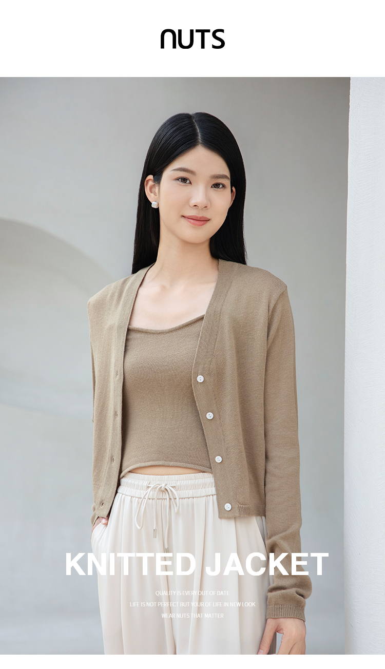 NUTS春秋季新款针织开衫外搭时尚通勤风毛织短外套女4380508A1