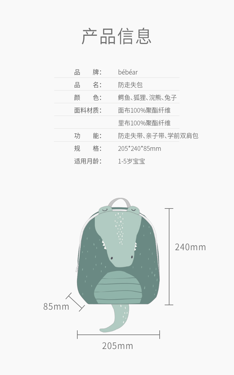 抱抱熊bebear儿童防丢失背包婴幼儿防丢失背包b014