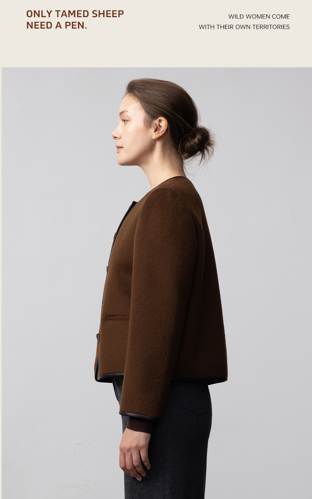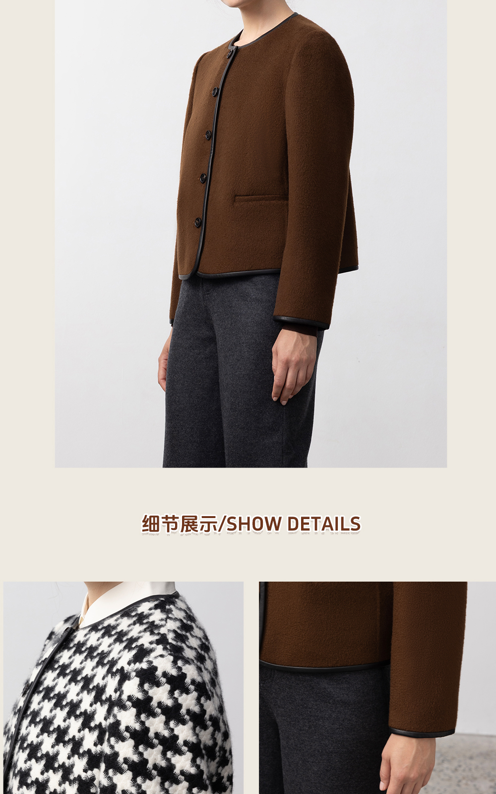 东黎 • 我不被驯化 山羊绒女士秋季皮边短款大衣 5309