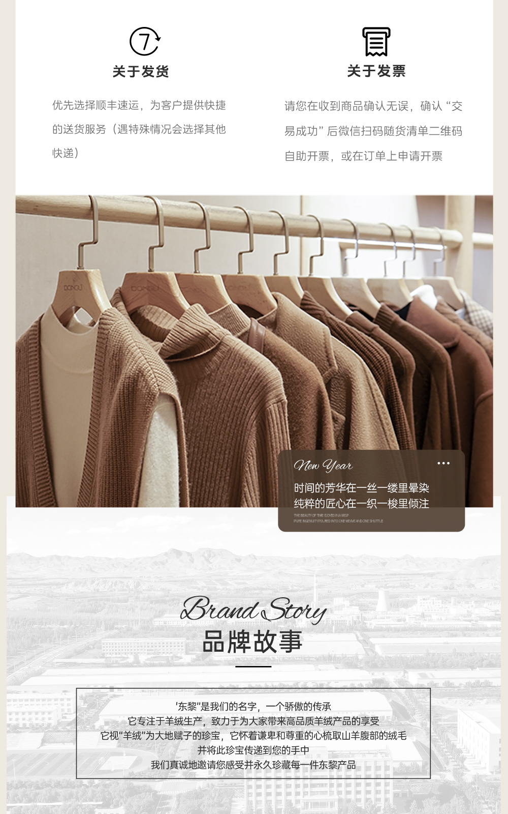 东黎羊绒是赤峰东荣集团自主品牌,自有牧场/羊绒制品全产业链优势,实现了羊绒从“牧场”到“商场”的华丽转变。