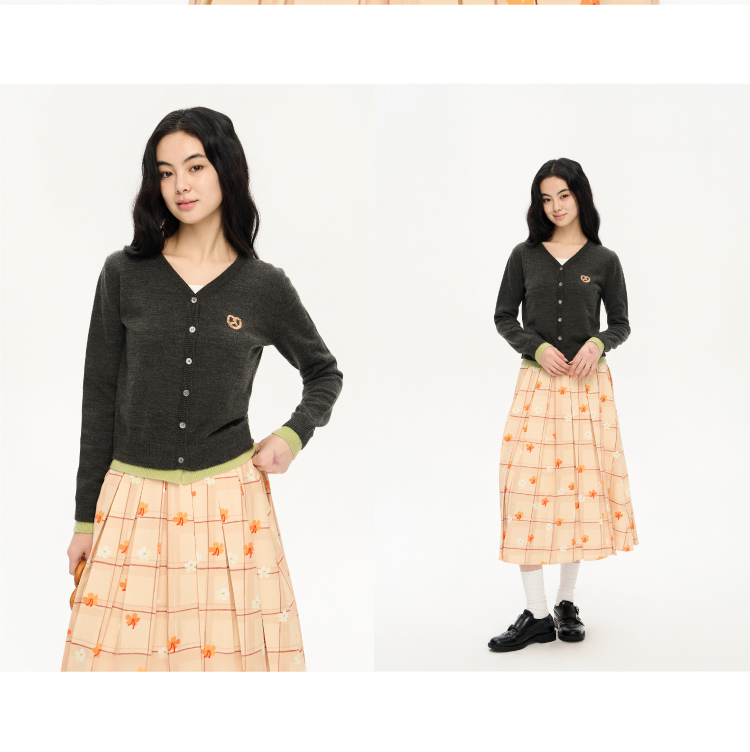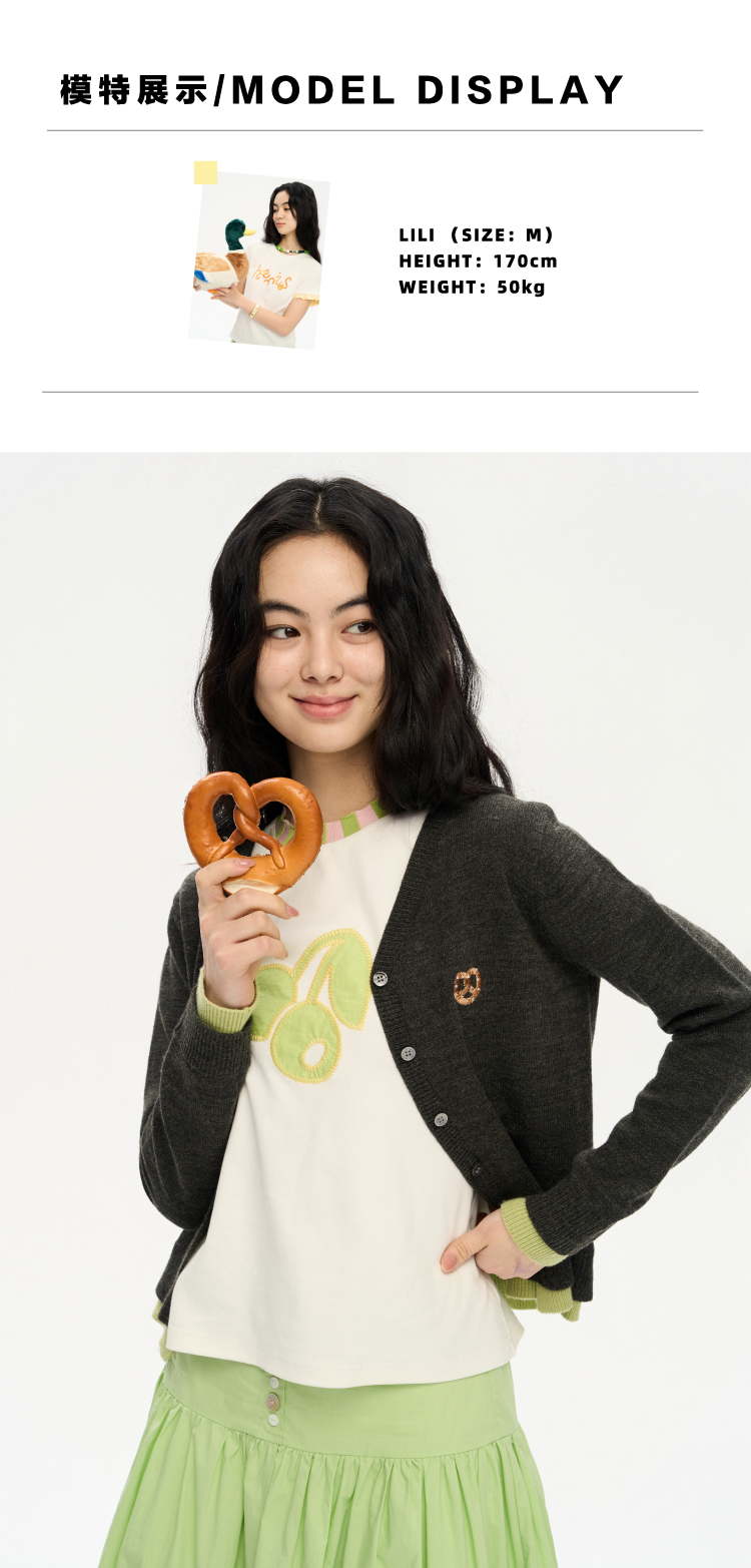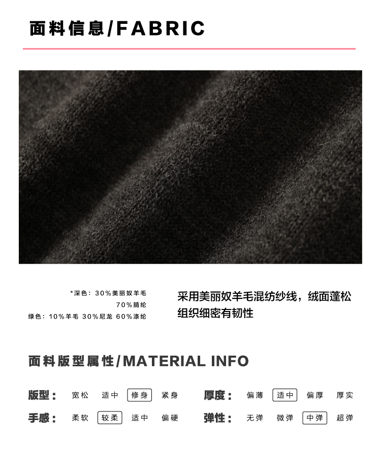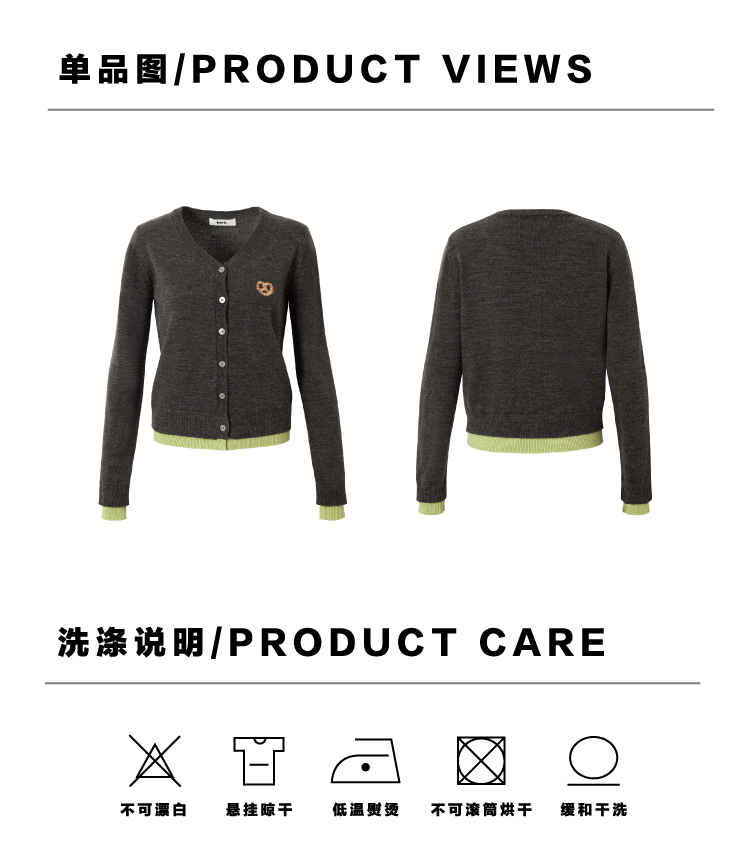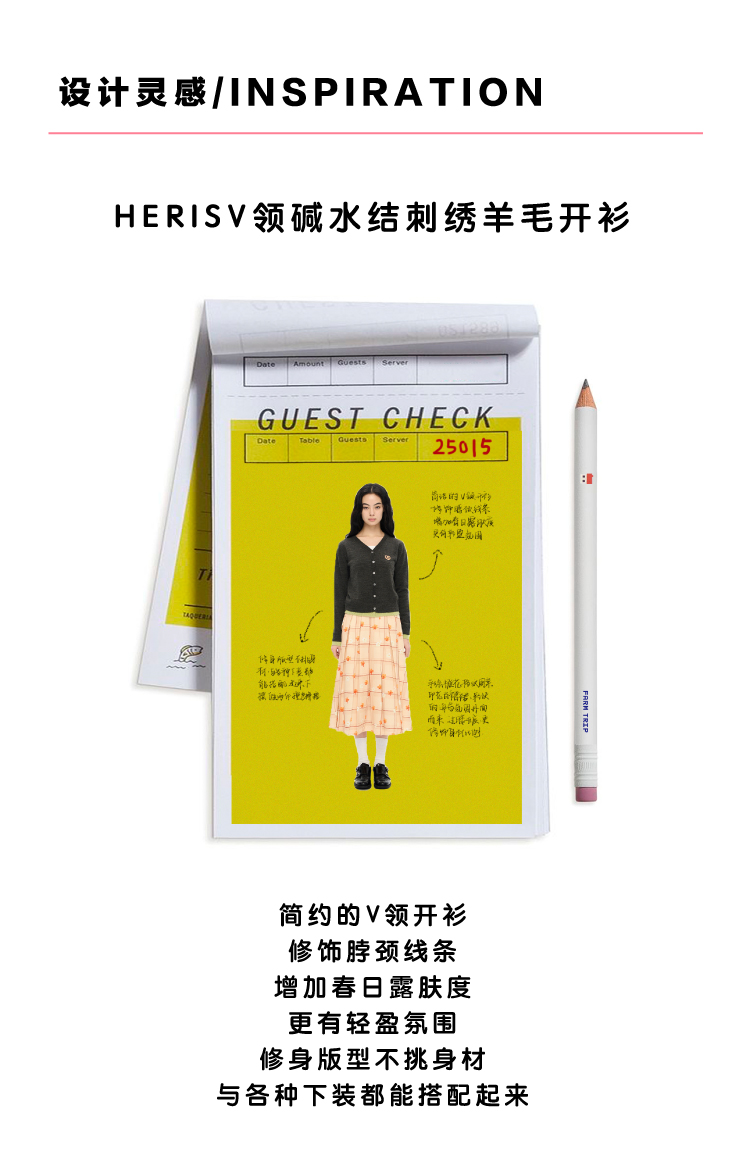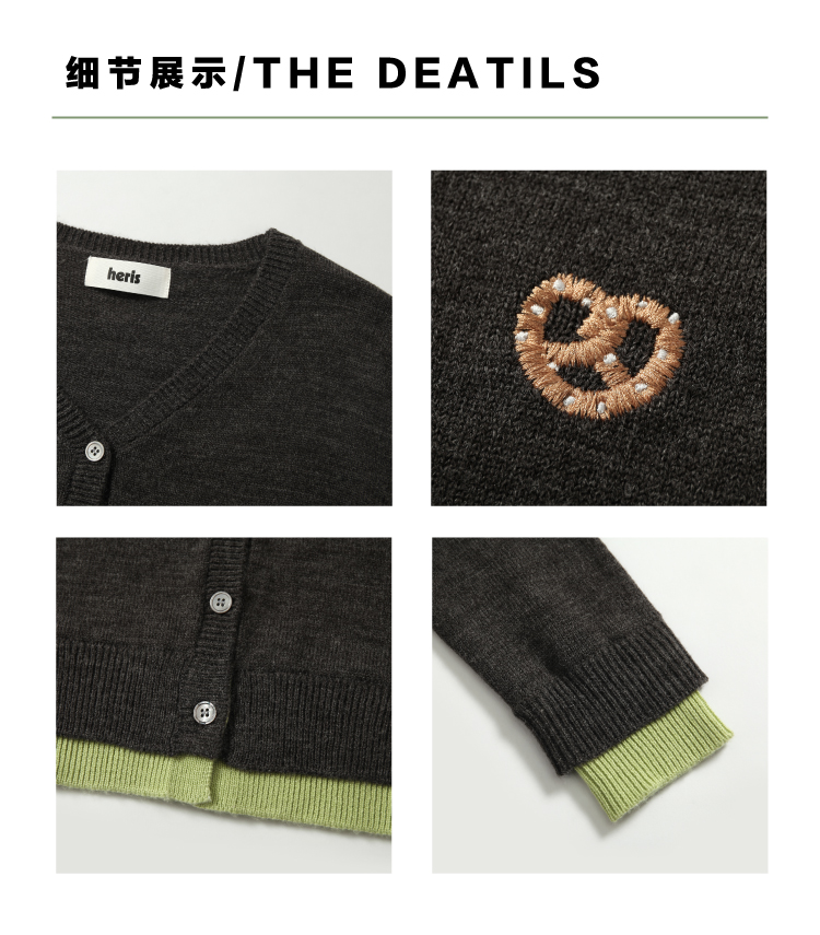 heris/H51102/碱水结刺绣 气质V领撞色假两件羊毛开衫