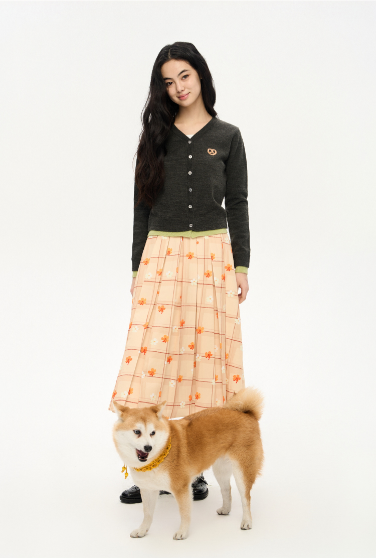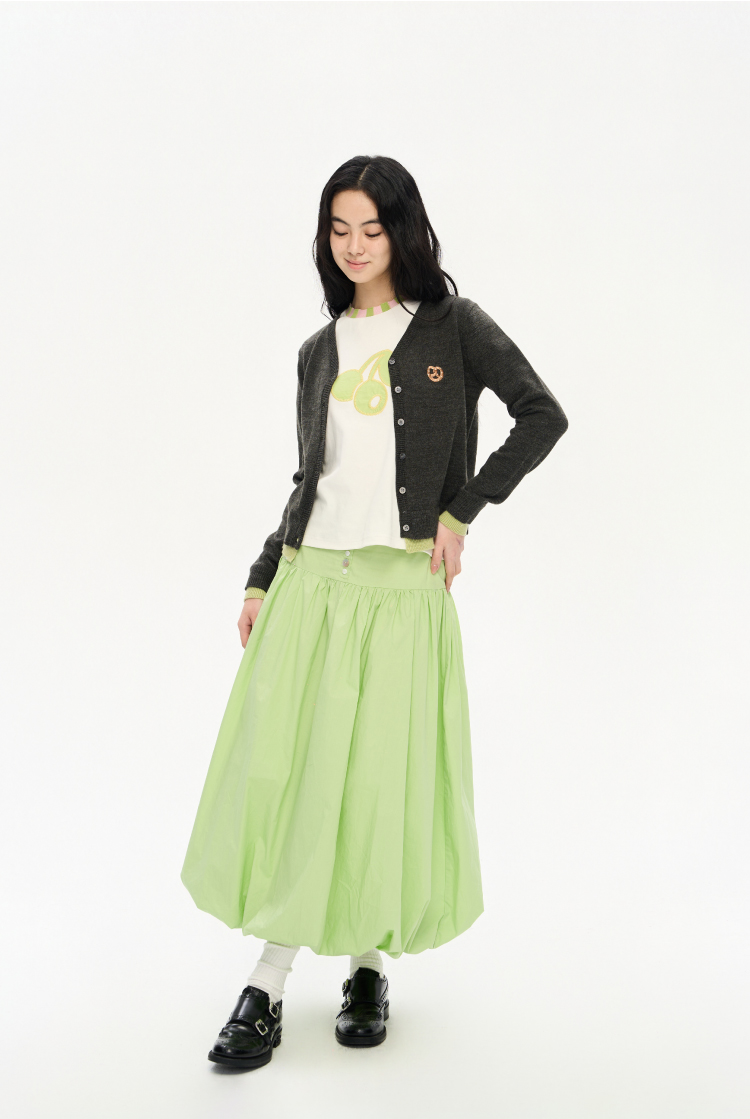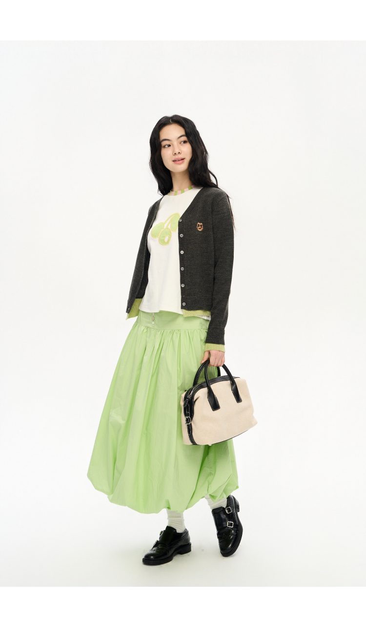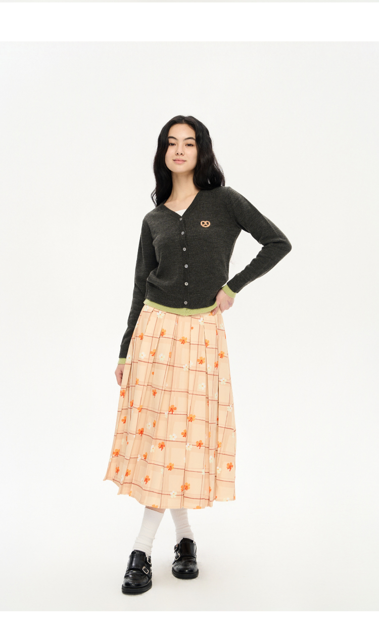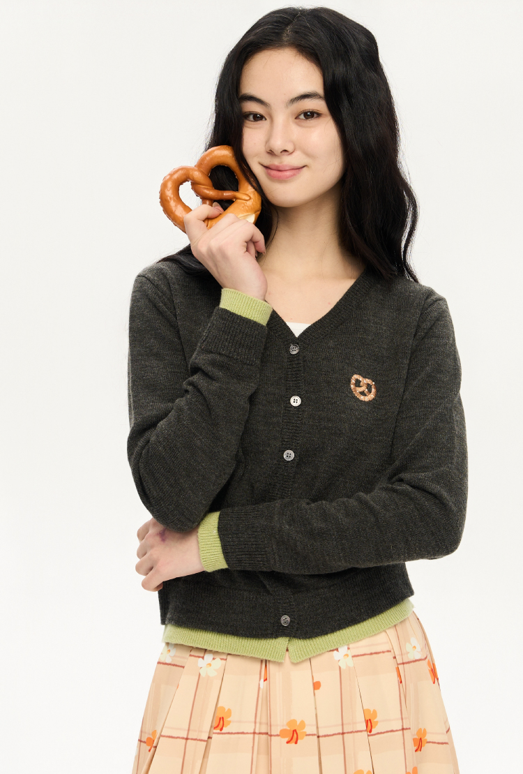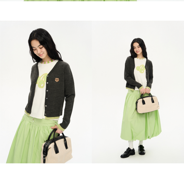 heris/H51102/碱水结刺绣 气质V领撞色假两件羊毛开衫