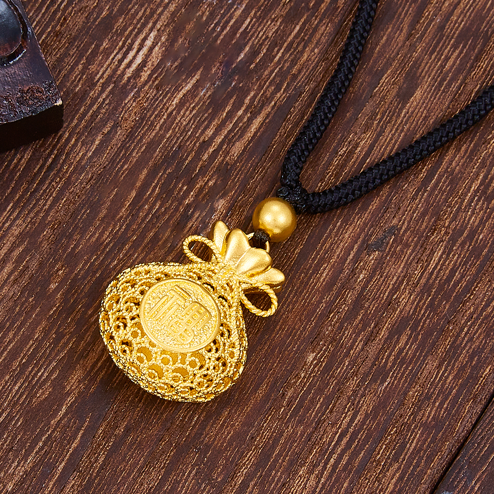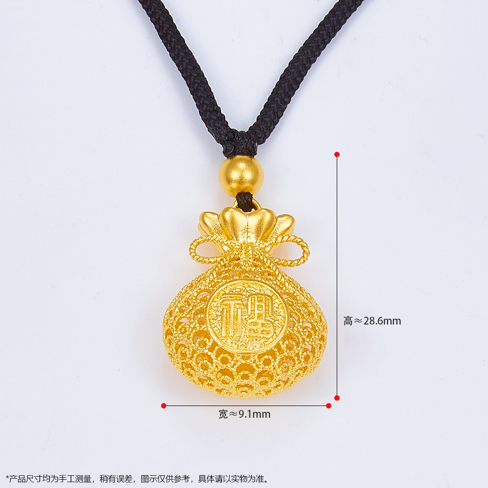 【限时克减150元】足金999 #福袋 古法镂空双面福袋倒模花丝挂绳吊坠(含珠子)(YGFDZ00209)(预售产品下单后不退款不退货不换货不补差(预售产品下单后不退款不退货不换货不补差
