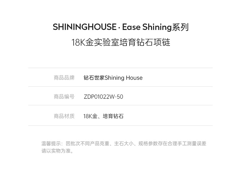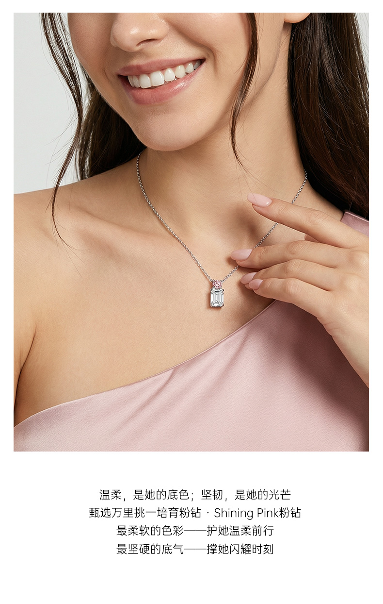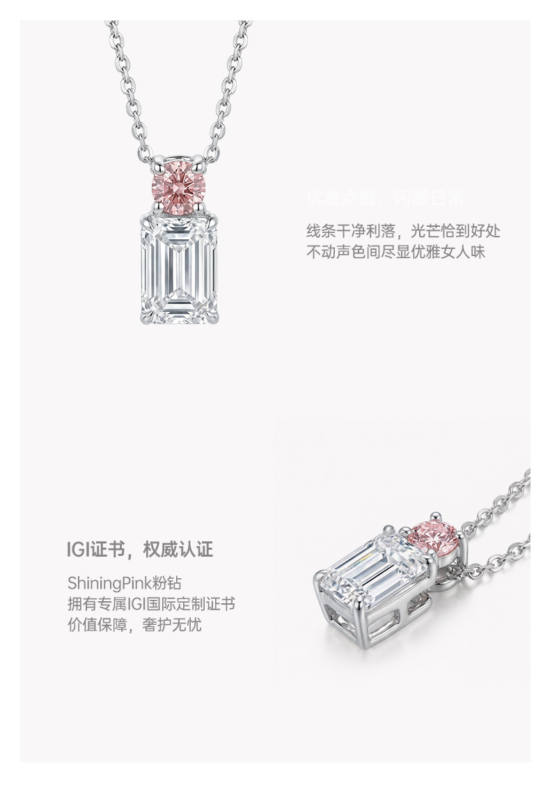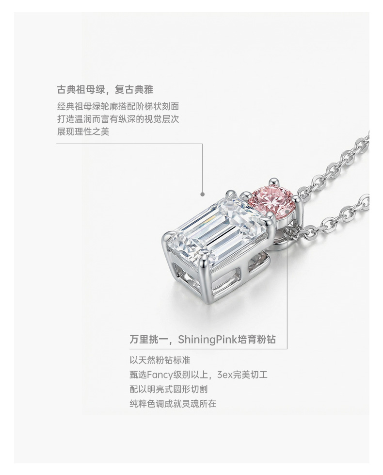 Ease·Shining系列 ShiningHouse[培育] 18k金钻石吊坠 祖母绿形人工真钻人造钻石K金吊坠简约钻石吊坠悦己送礼臻选(单吊坠,图片仅展示)【此商品不支持7天无理由退货退款】