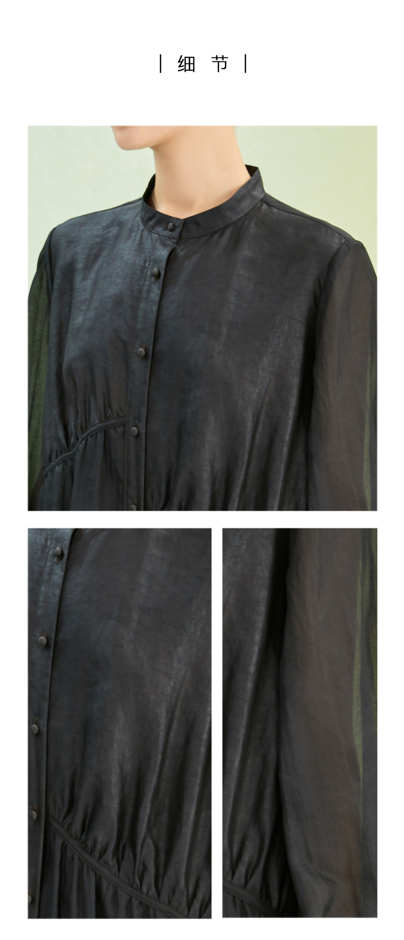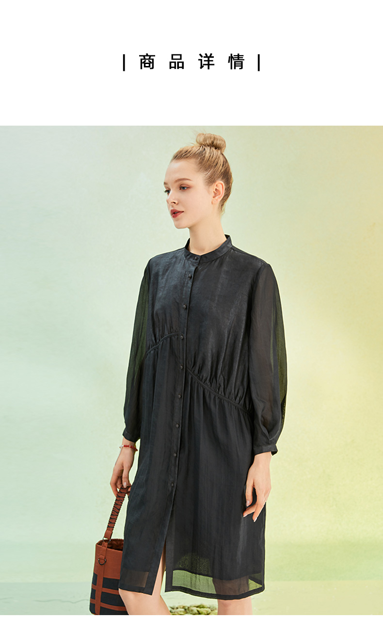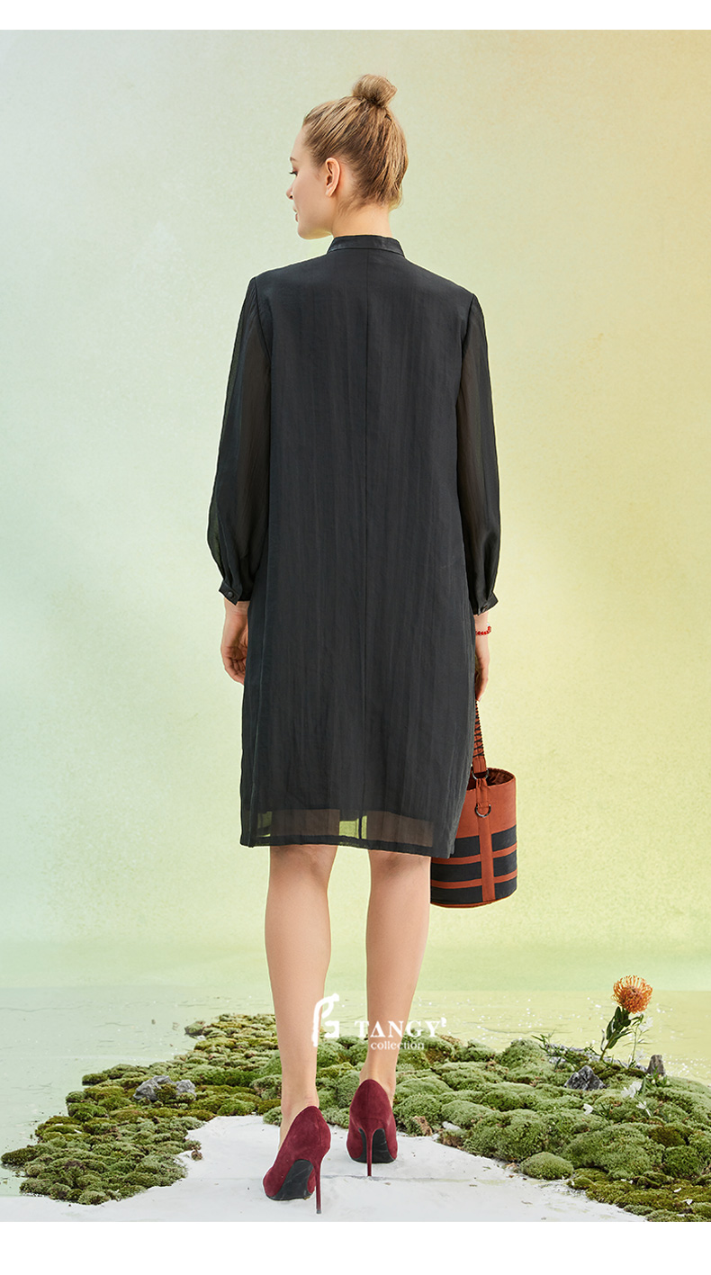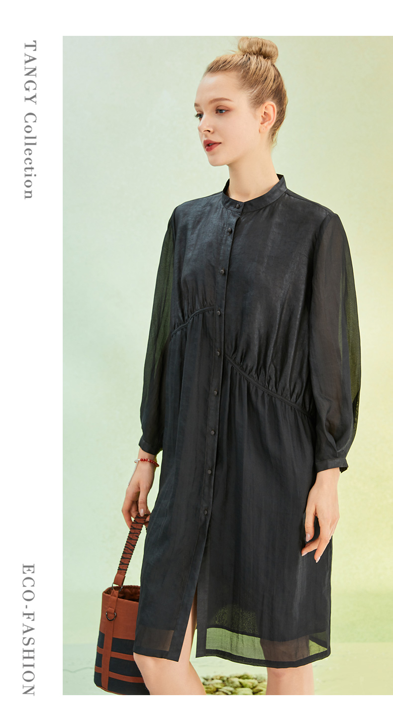 TANGY Collection/天意精品2022年春夏新品国捏褶立领长款莨绸连衣裙 商品图4