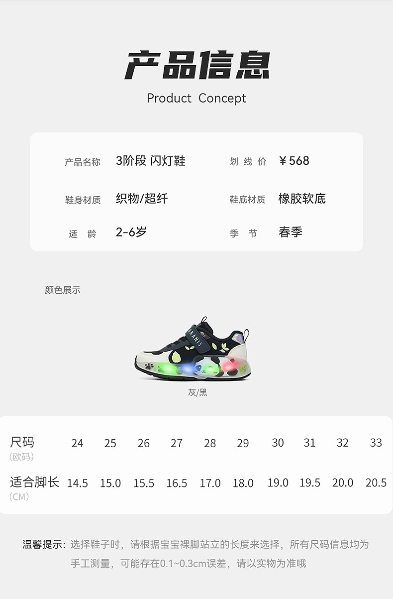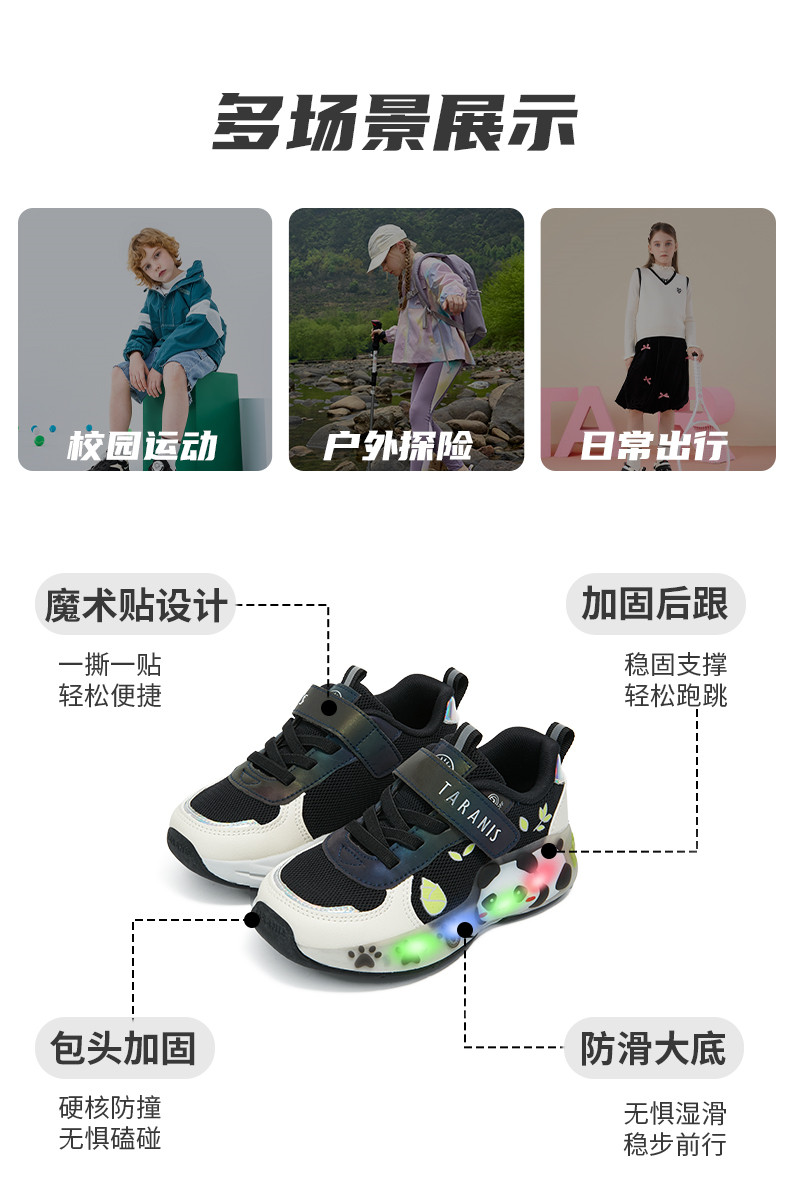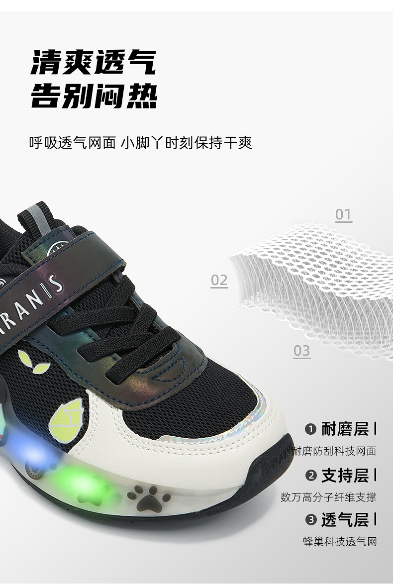 泰兰尼斯春季新款儿童运动鞋轻便小熊闪灯鞋减震防滑男童鞋女童鞋T01X6A8614