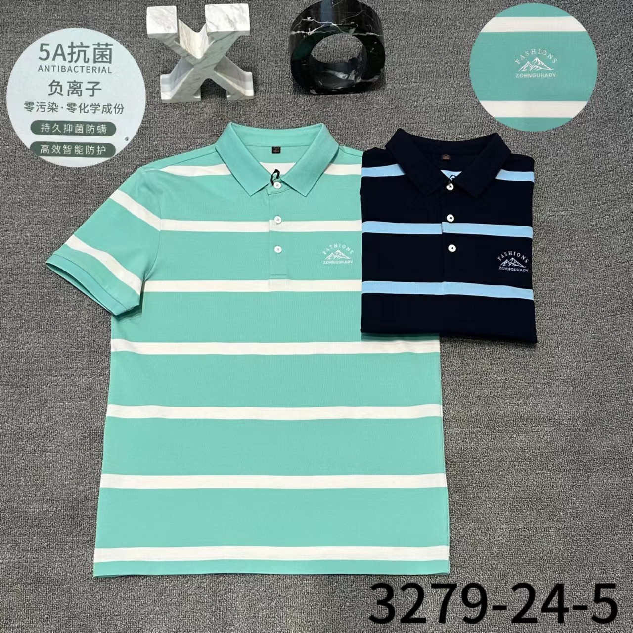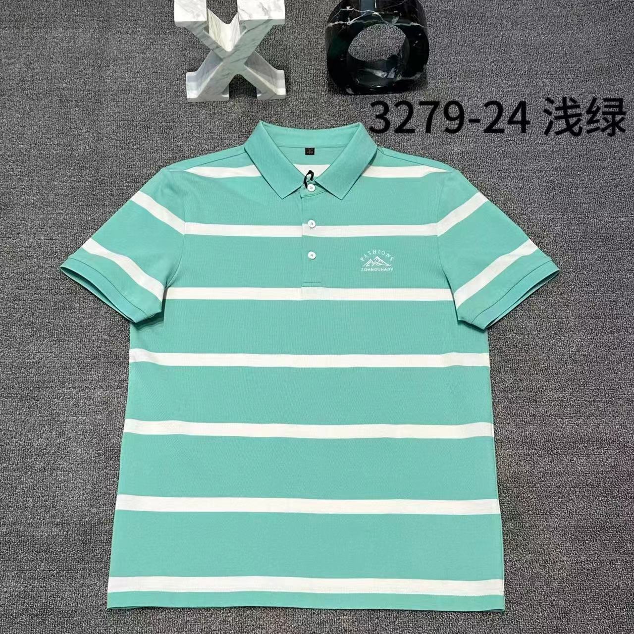 3279# 宽条纹短袖POLO衫男士纯棉透气夏季新款休闲翻领T恤男装 蓝色、绿色
