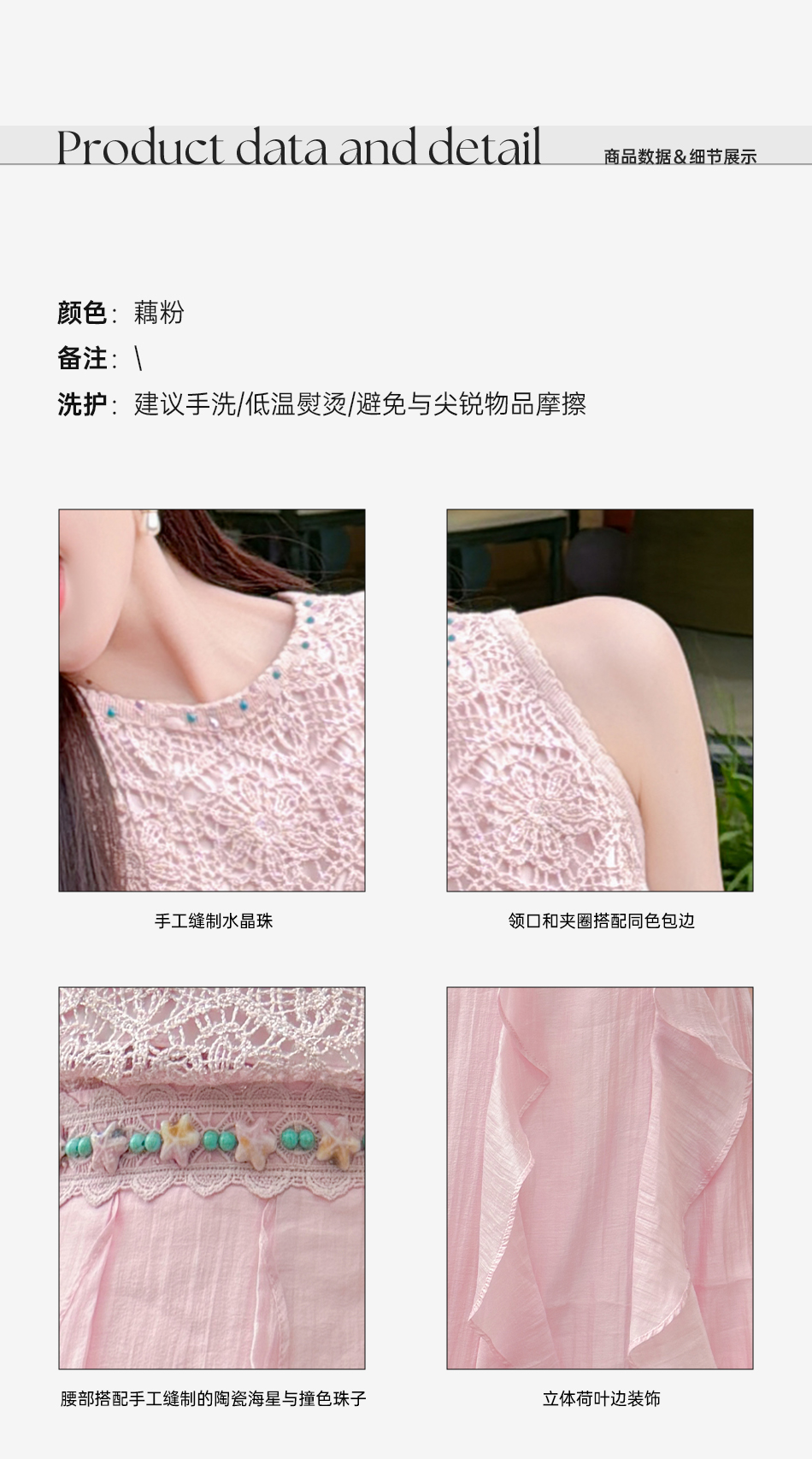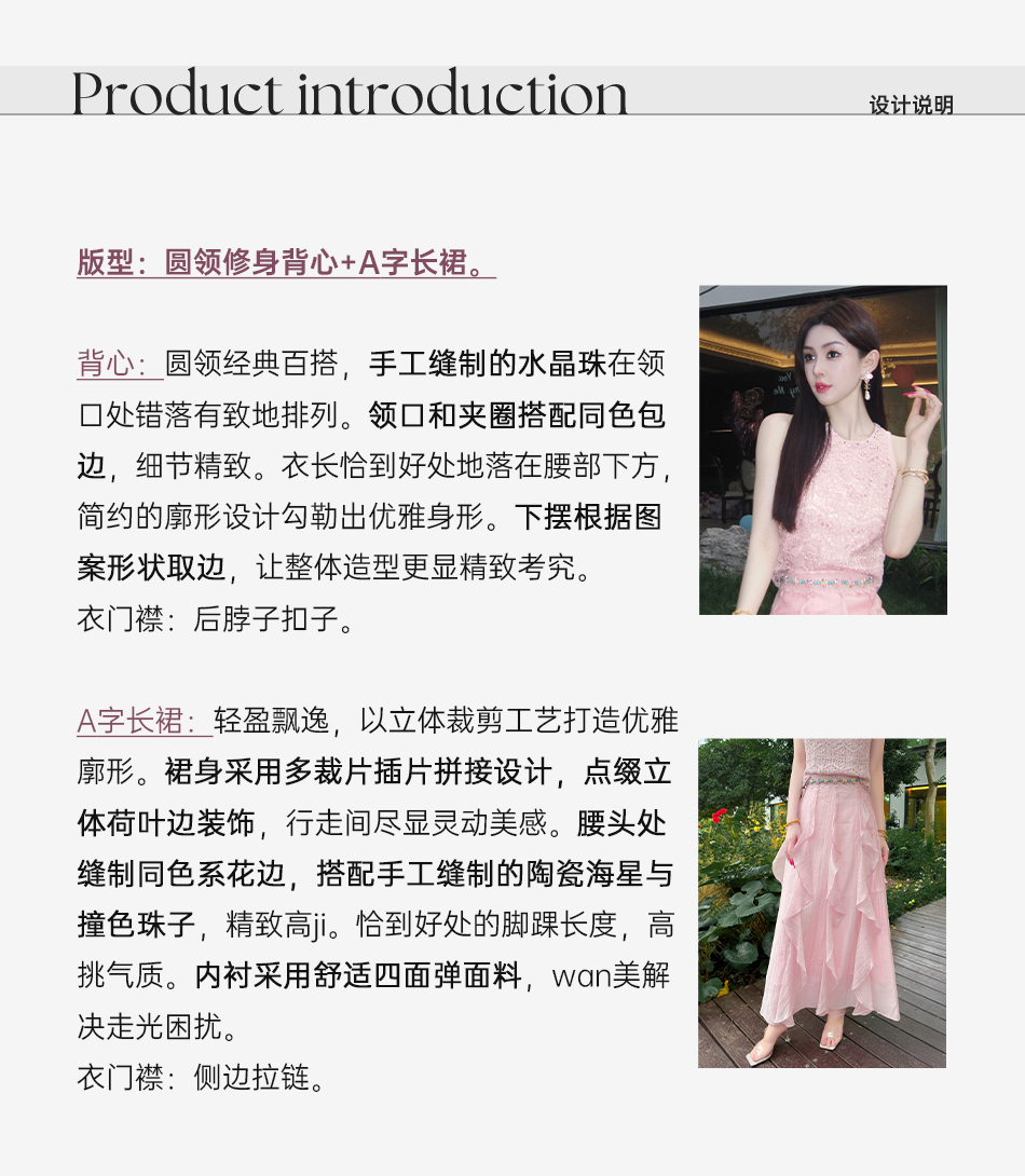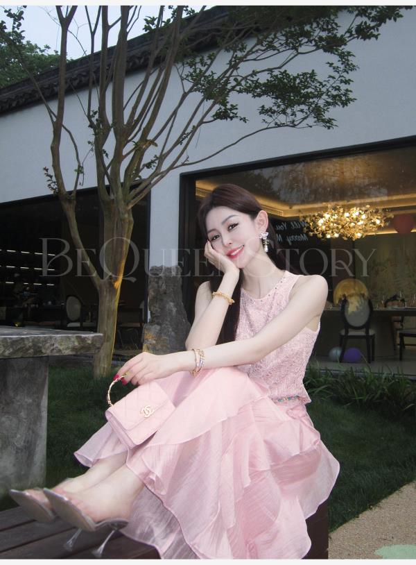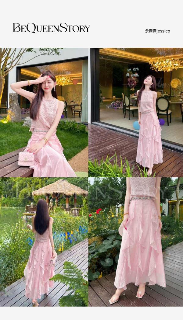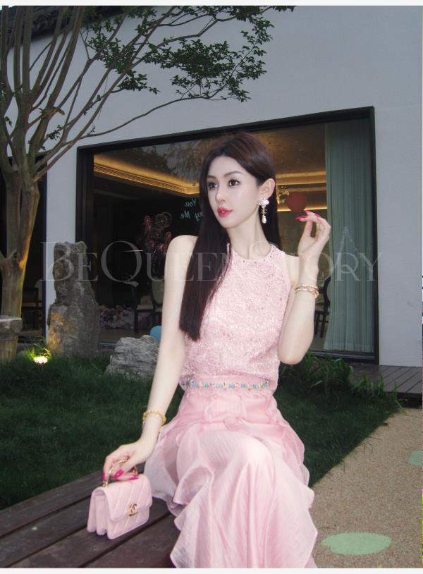 BeQueenStory【樱海盛夏】银丝钩织手工缝珠圆领背心&莱赛尔A字半裙