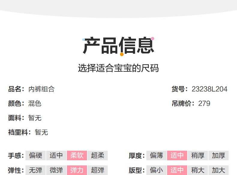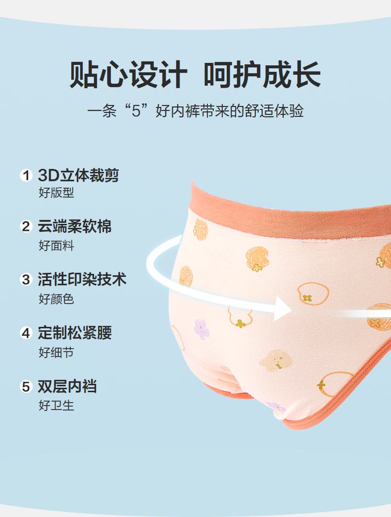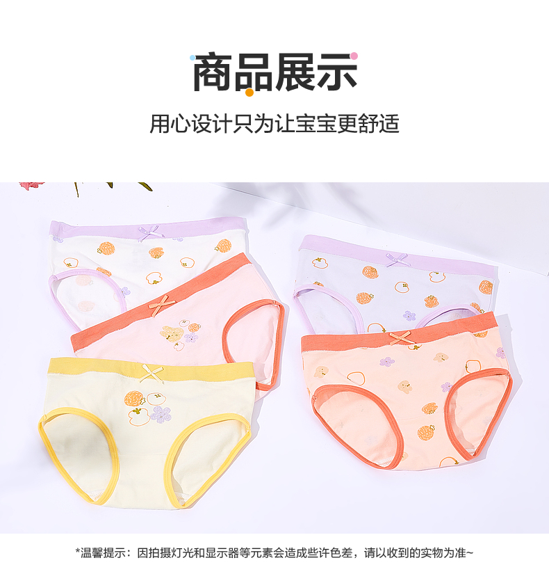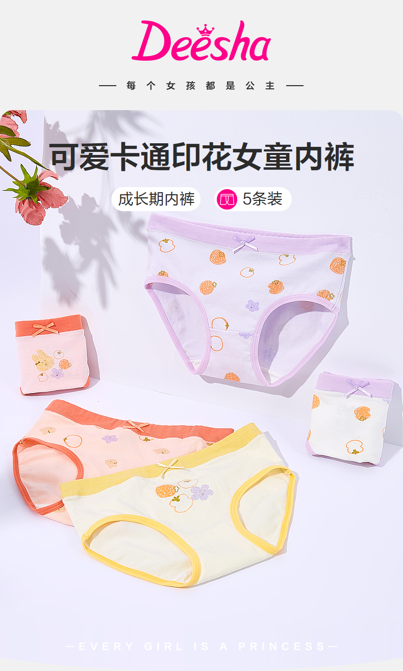 笛莎官方童装女童内裤2023年夏装新款可爱印花三角内裤5条组合装