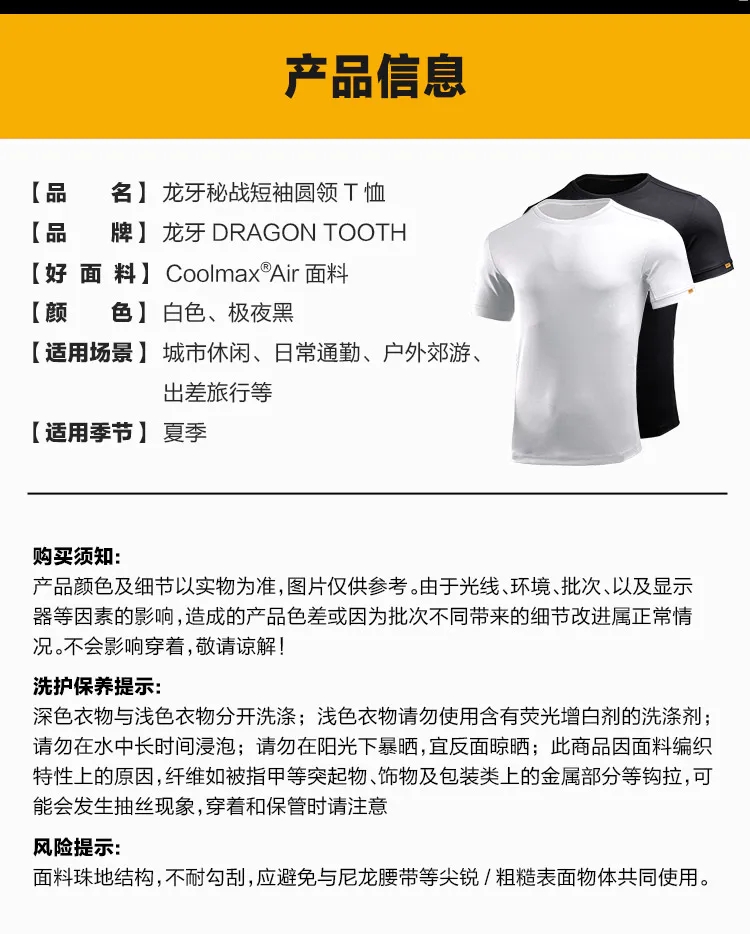 2023夏季新品T恤龙牙秘战短袖圆领T恤加强版吸汗透气运动百搭白T
