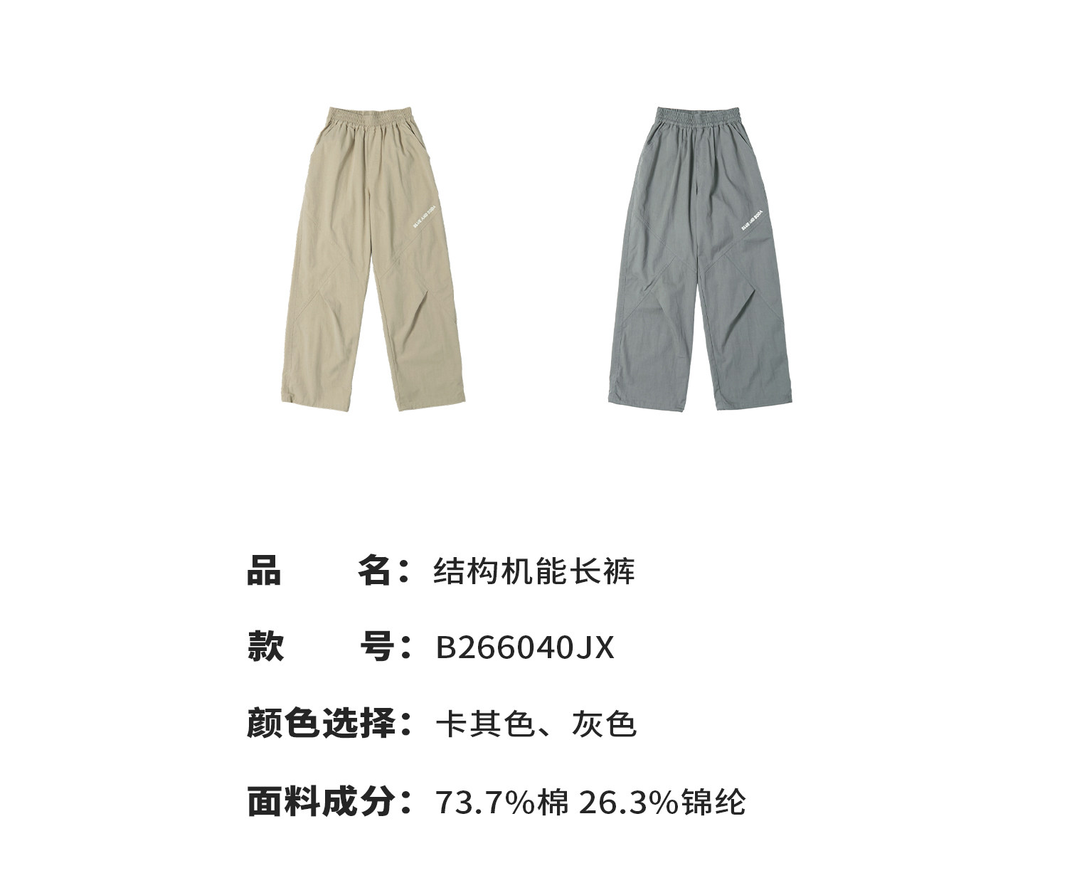 【代发】【灰色175、180预售4.15发货】蓝汽水男童青少年户外休闲裤子轻薄结构机能长裤直筒裤卡其色/灰色