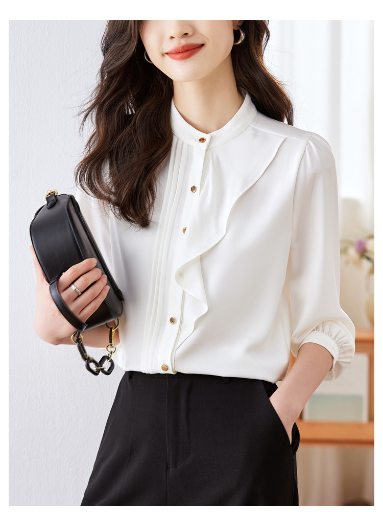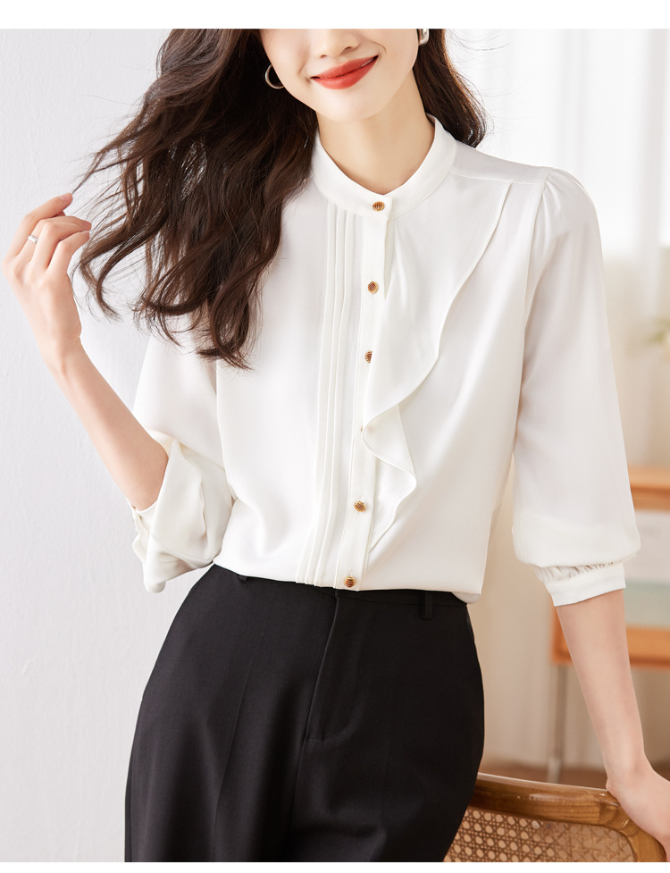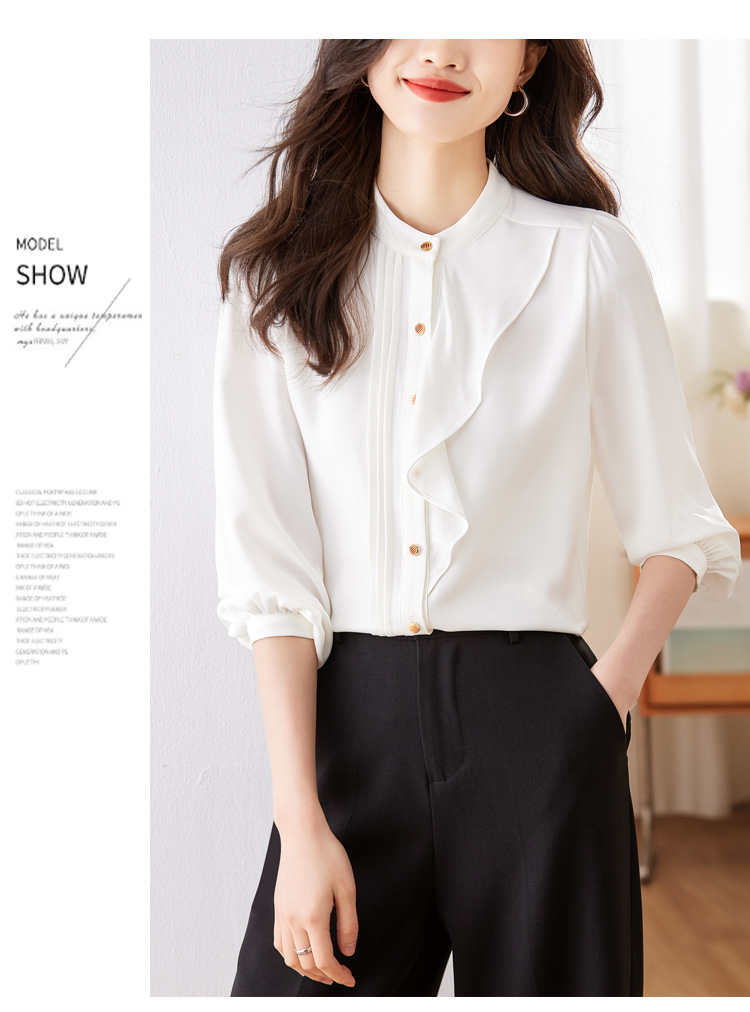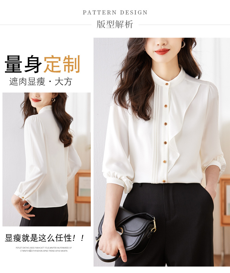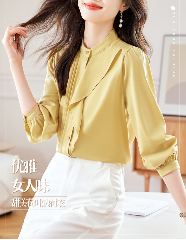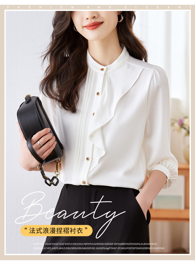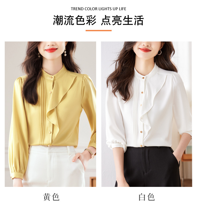设计感小众长袖上衣,荷叶边立领职业衬衣KQL-645T8385