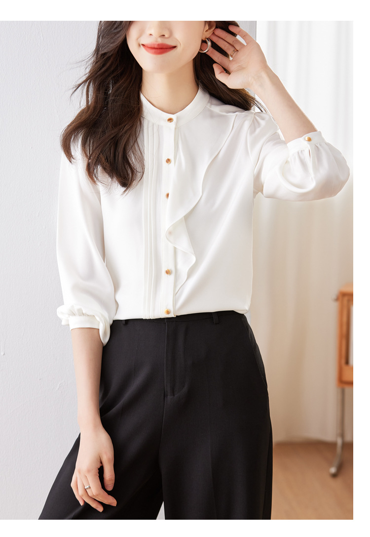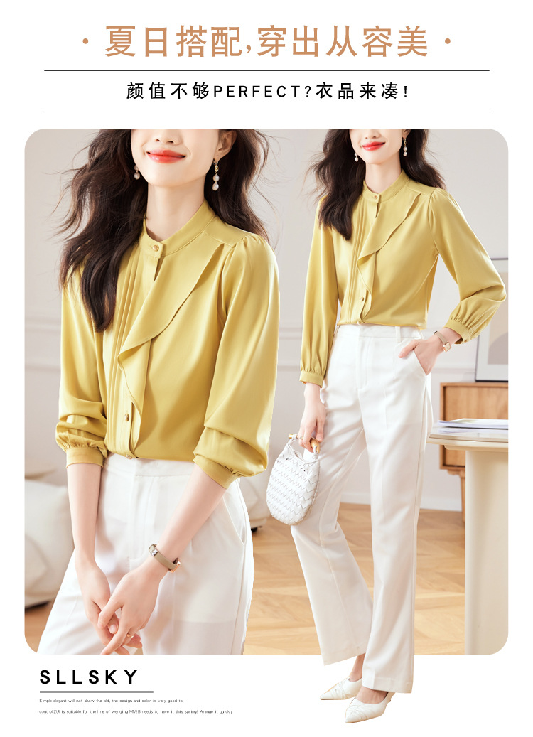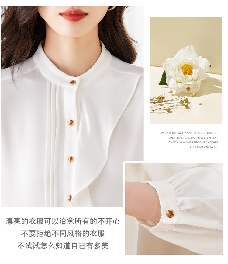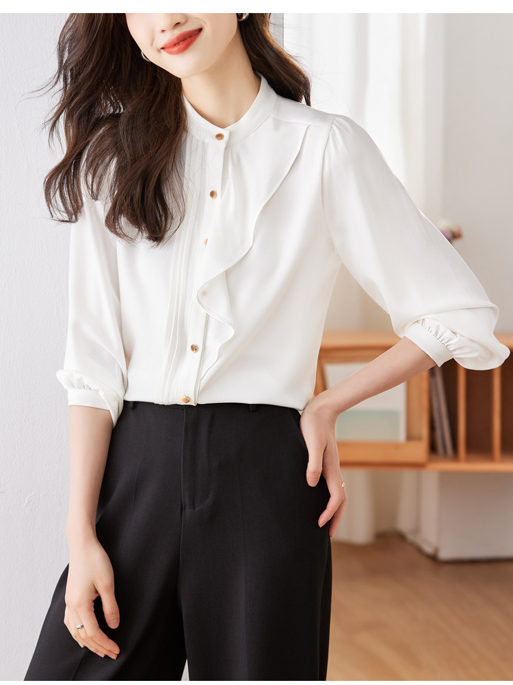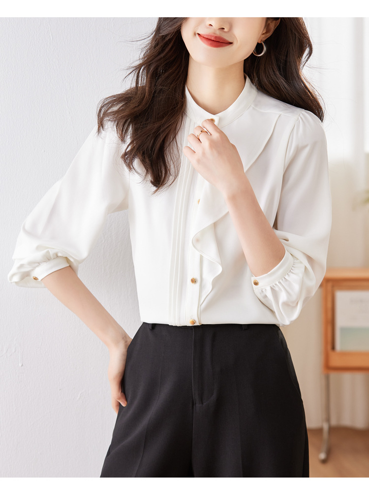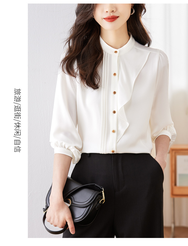 设计感小众长袖上衣,荷叶边立领职业衬衣KQL-645T8385