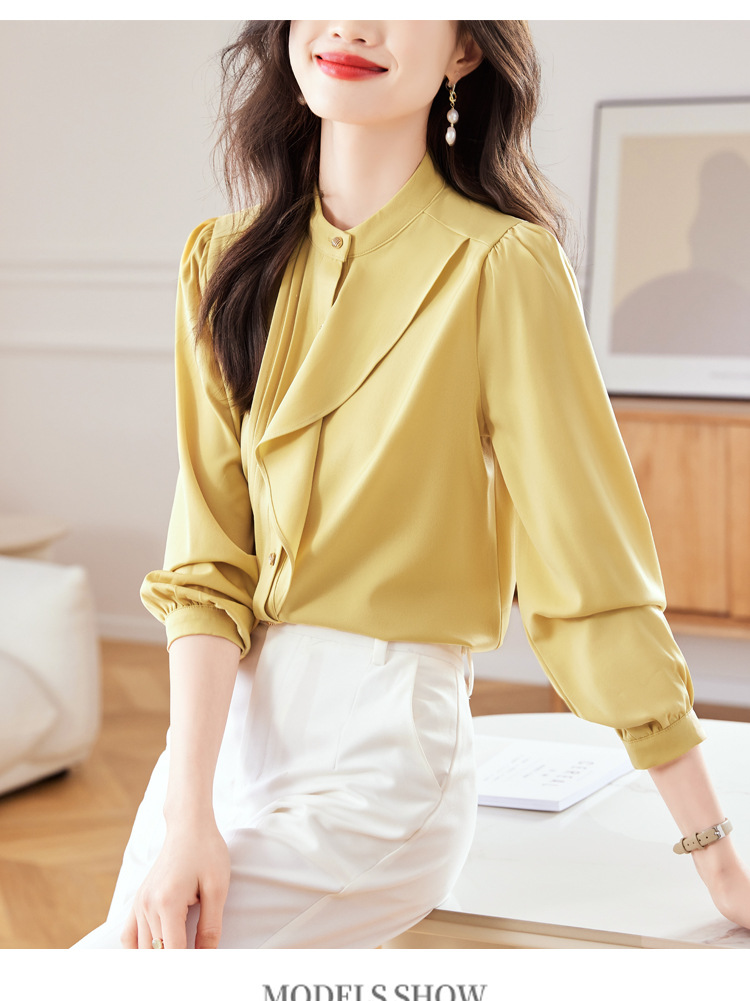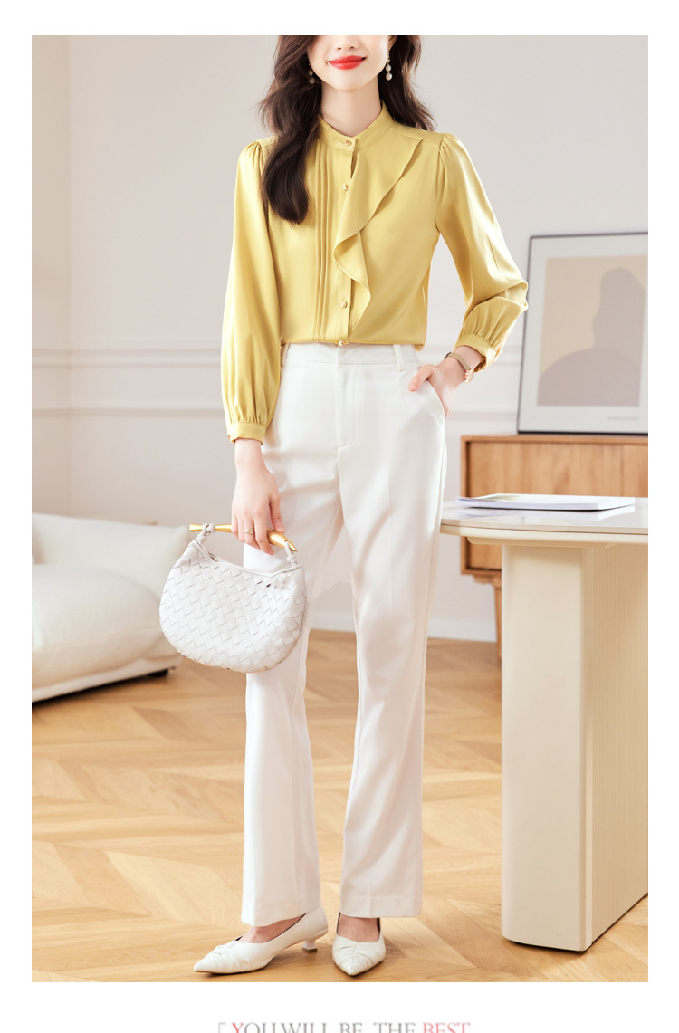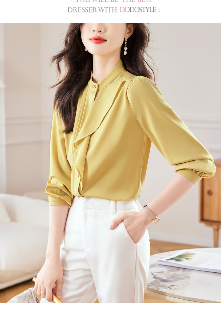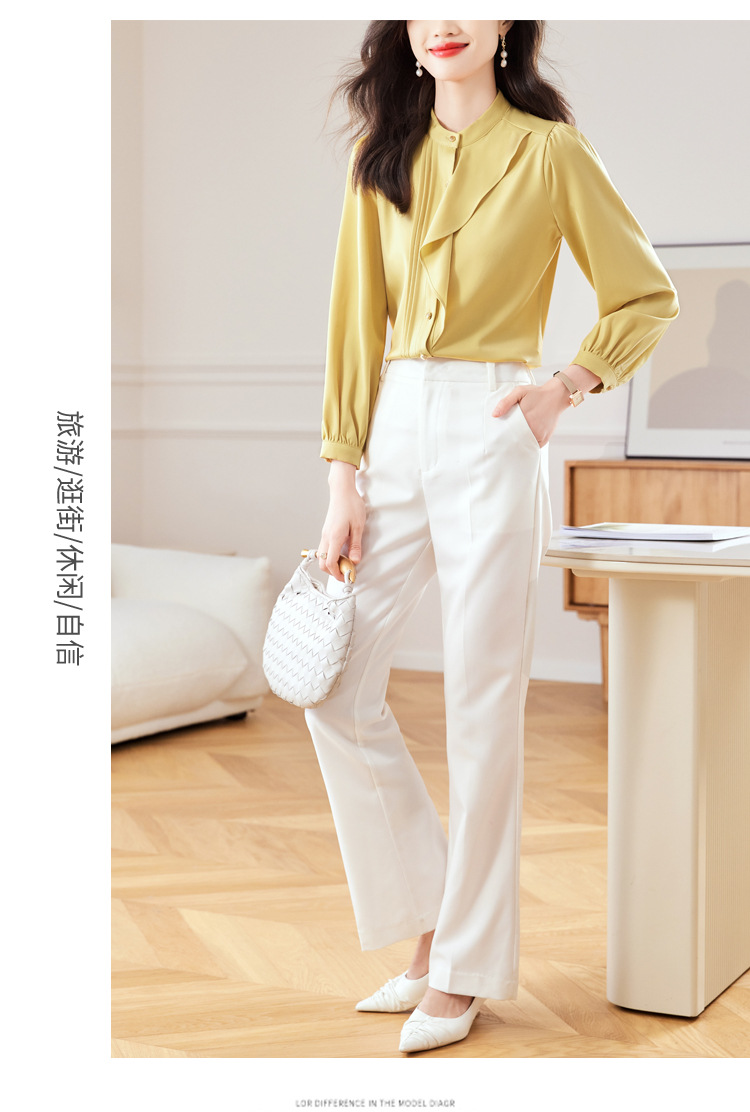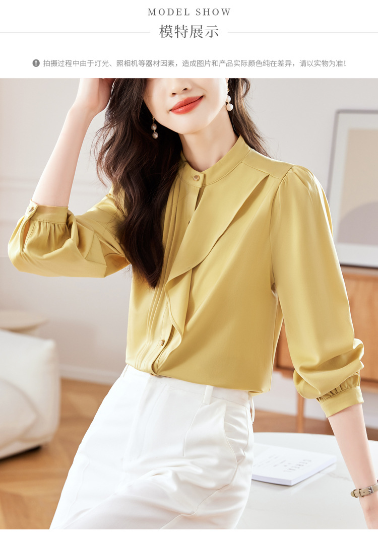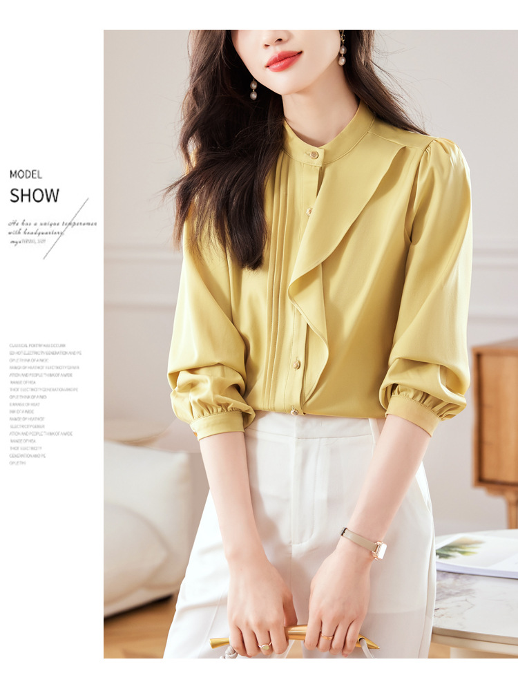 设计感小众长袖上衣,荷叶边立领职业衬衣KQL-645T8385