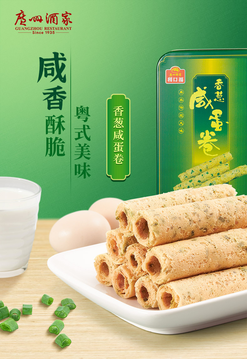 广州酒家 香葱咸蛋卷2盒 休闲零食下午茶饼酥手信