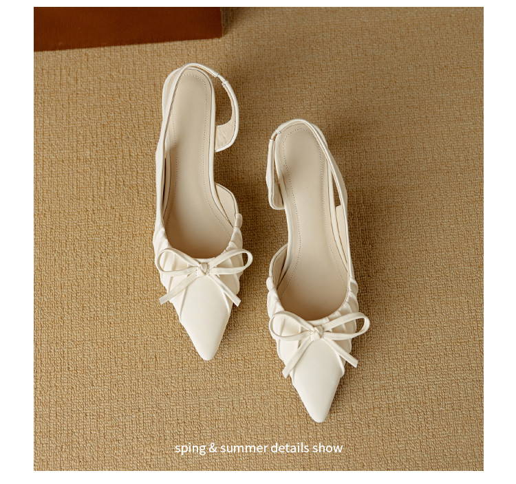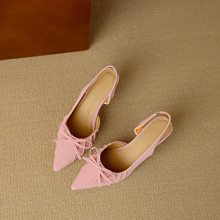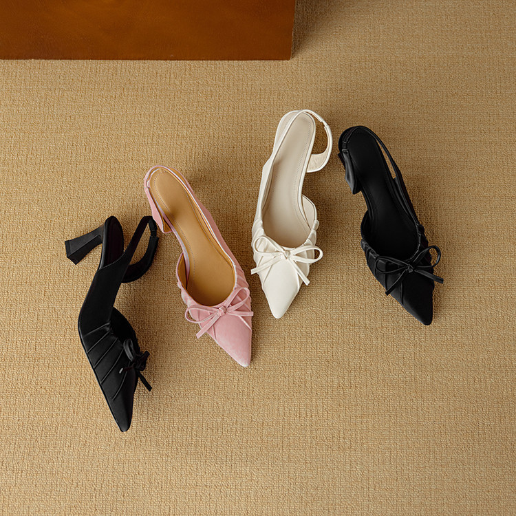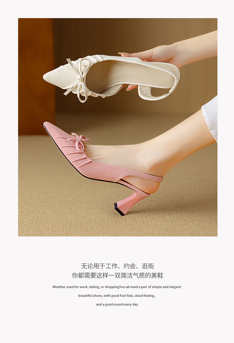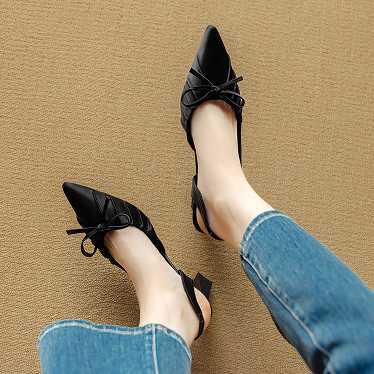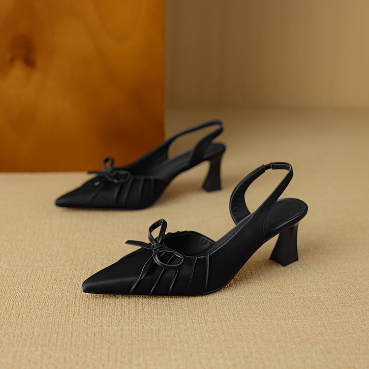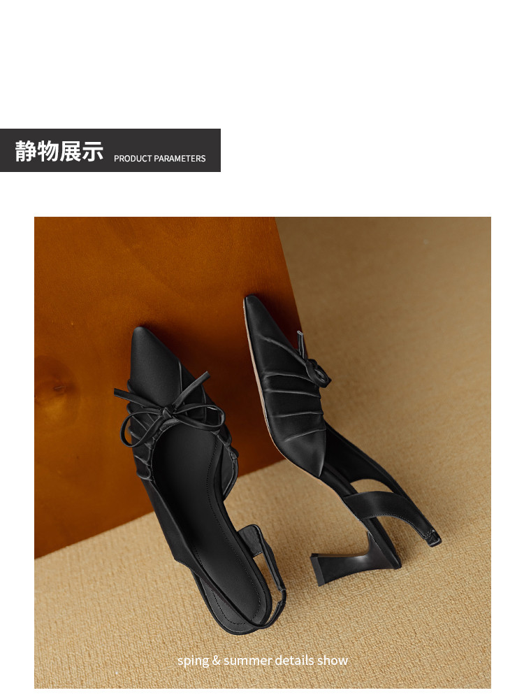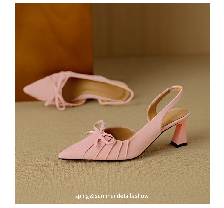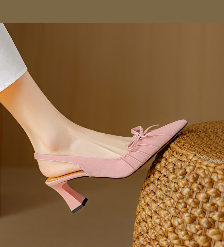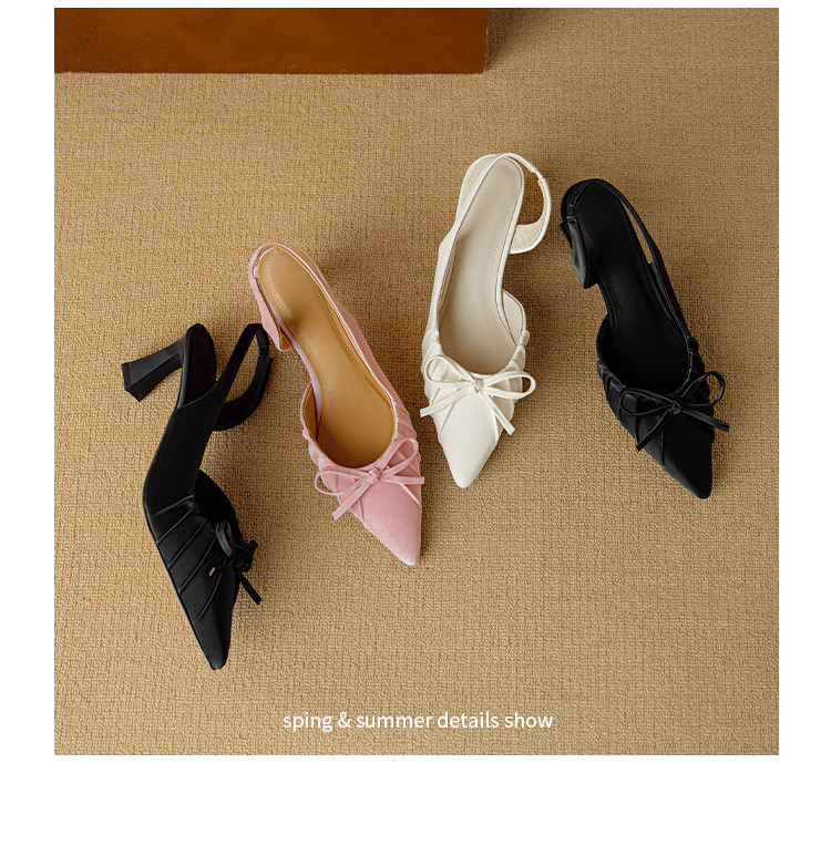 【预售5天】法式气质尖头皱褶包头后空凉鞋女春季新款蝴蝶结温柔高跟单鞋DB&M6263