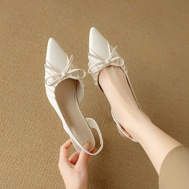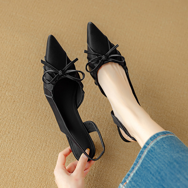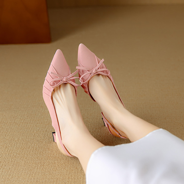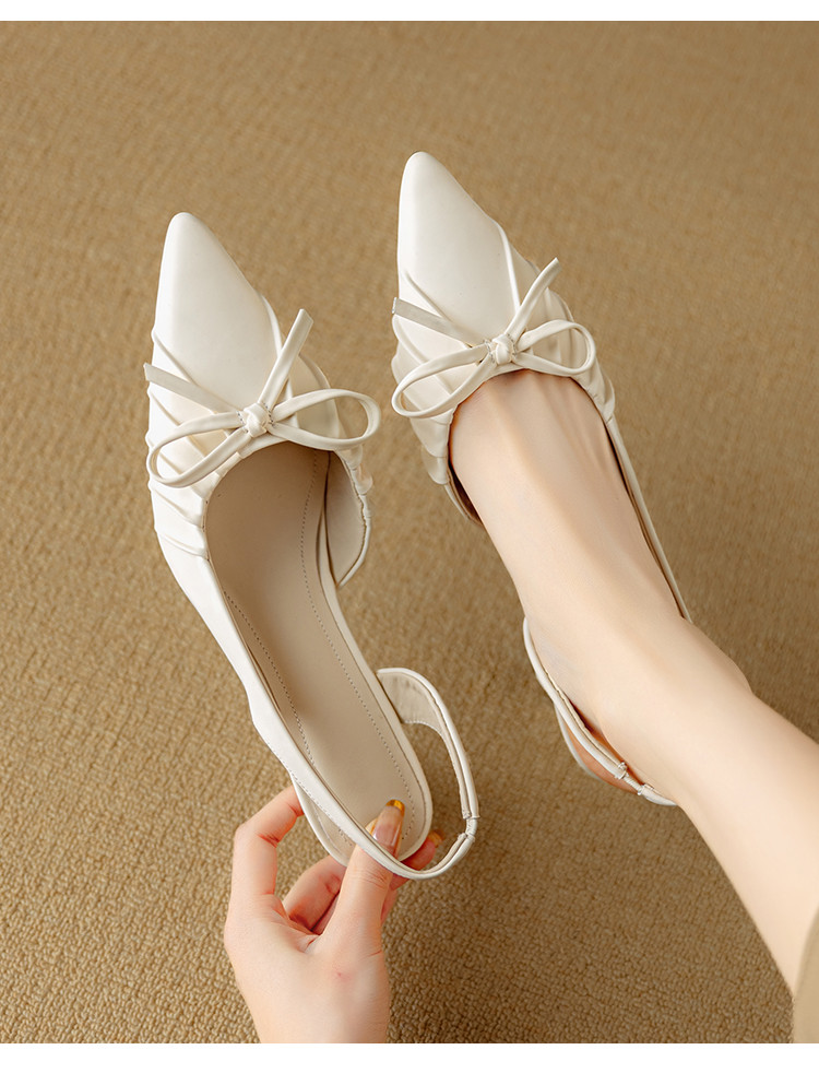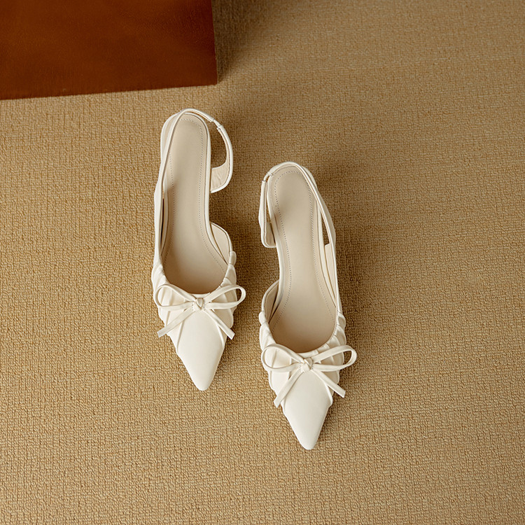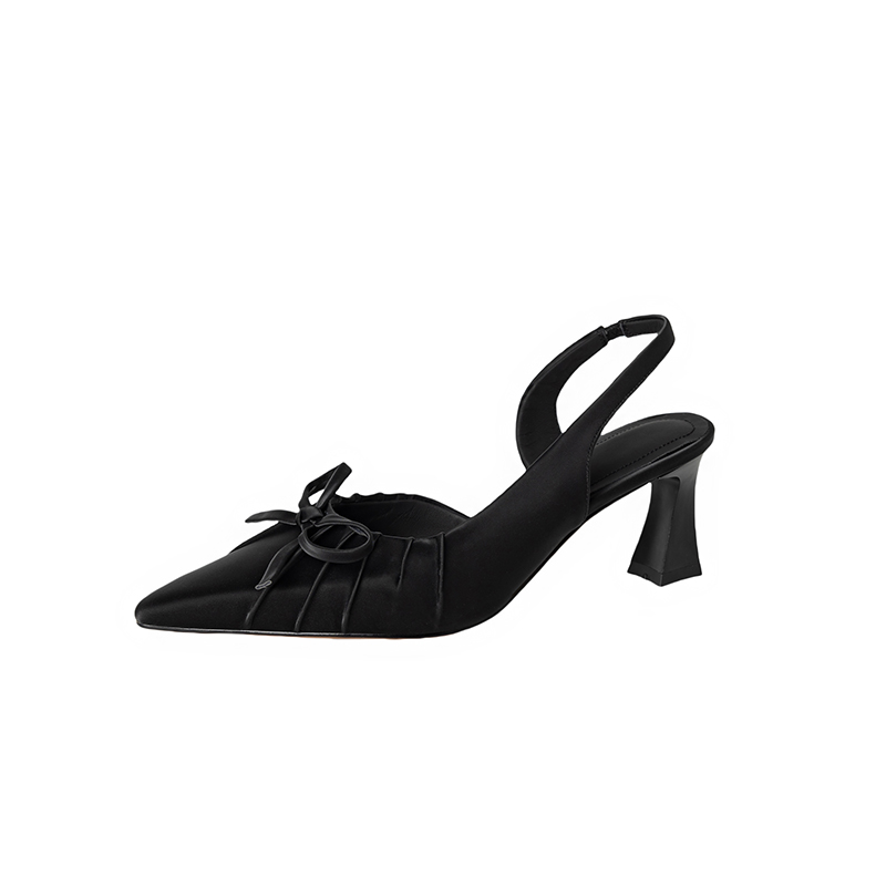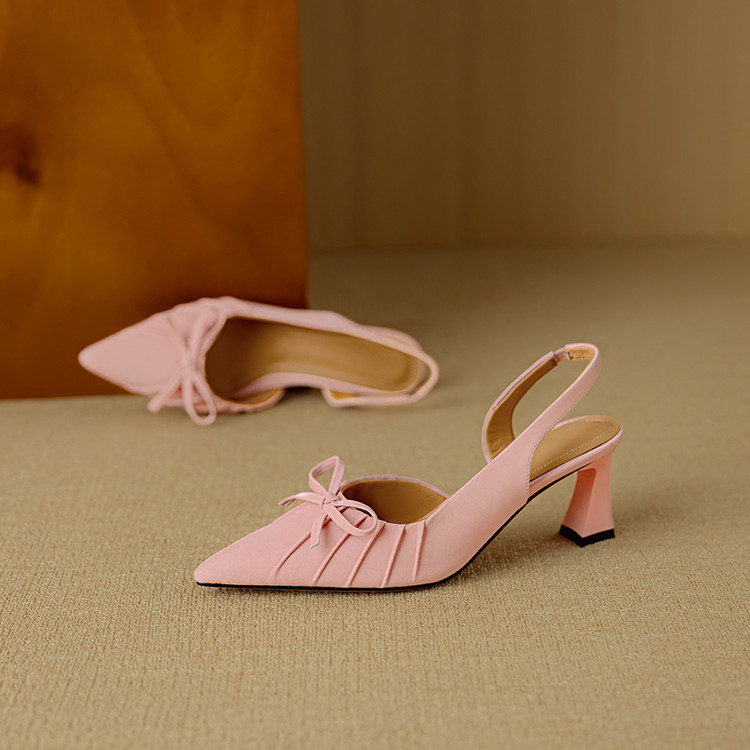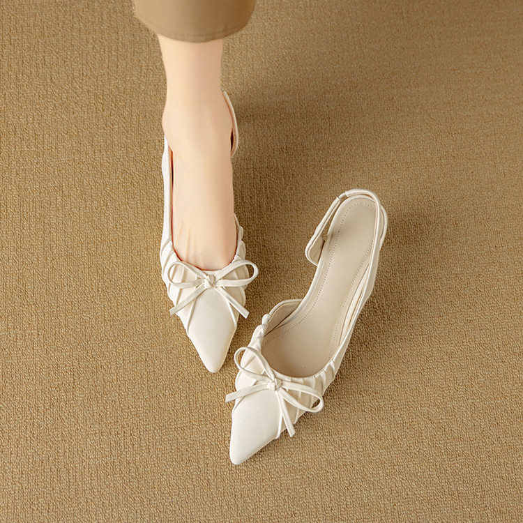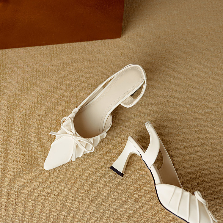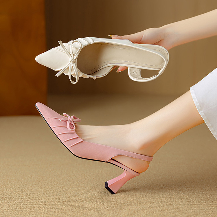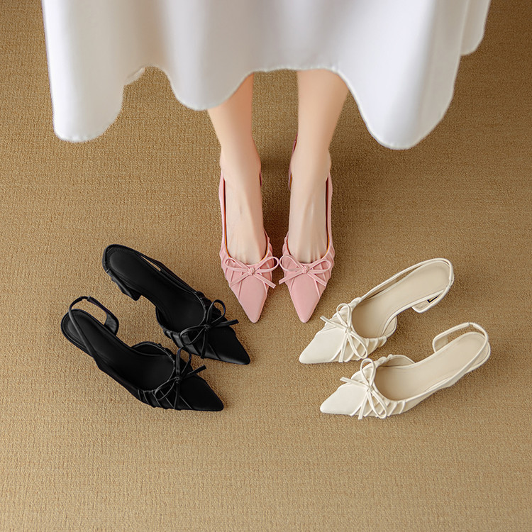 【预售5天】法式气质尖头皱褶包头后空凉鞋女春季新款蝴蝶结温柔高跟单鞋DB&M6263
