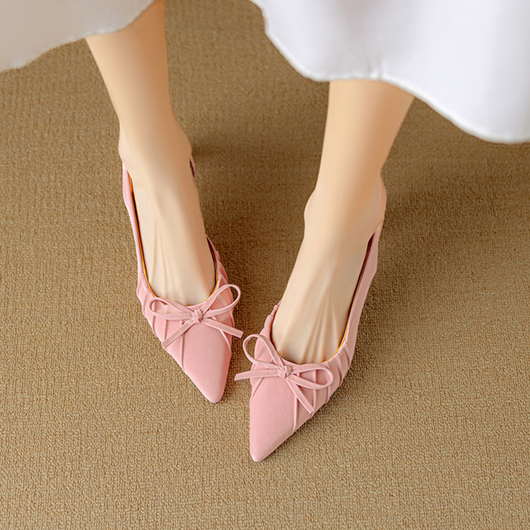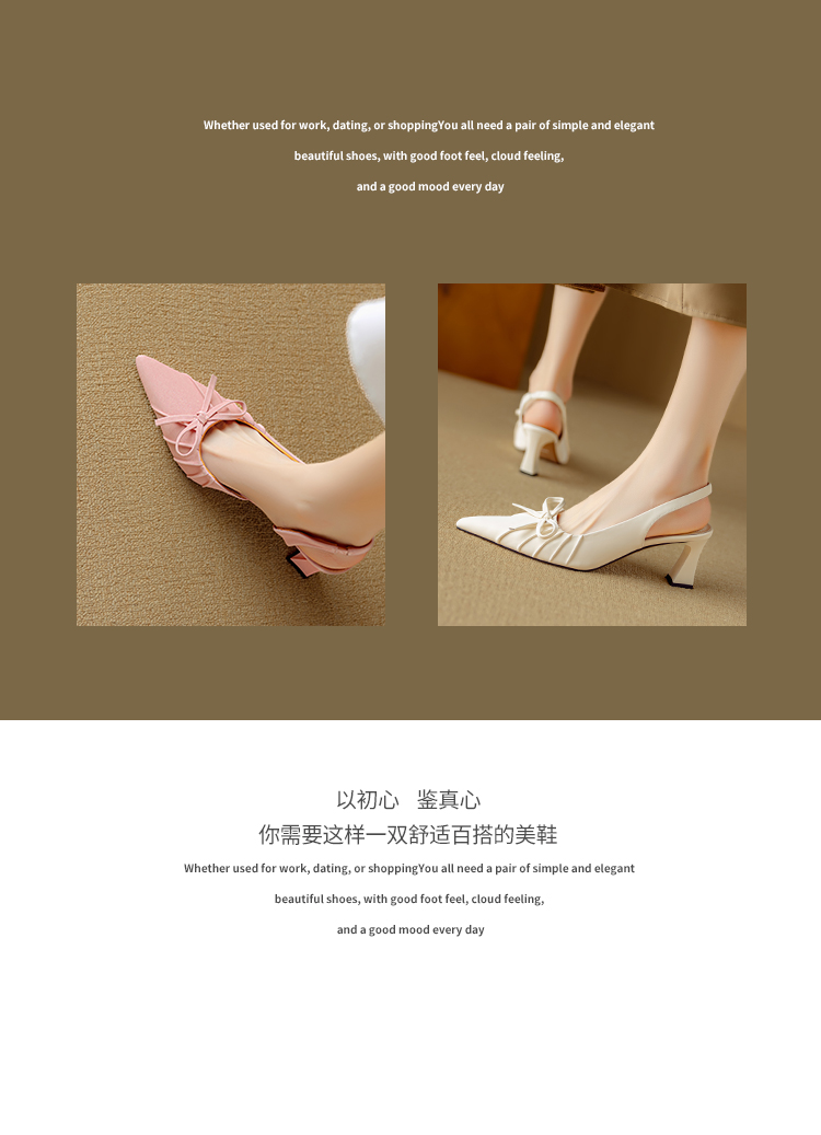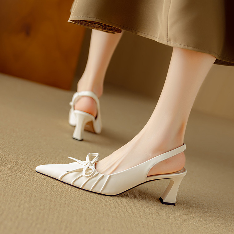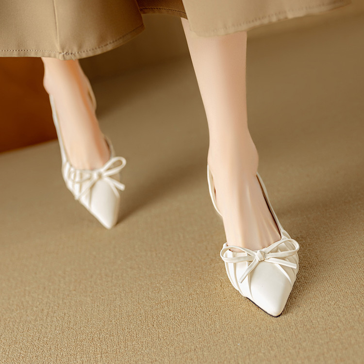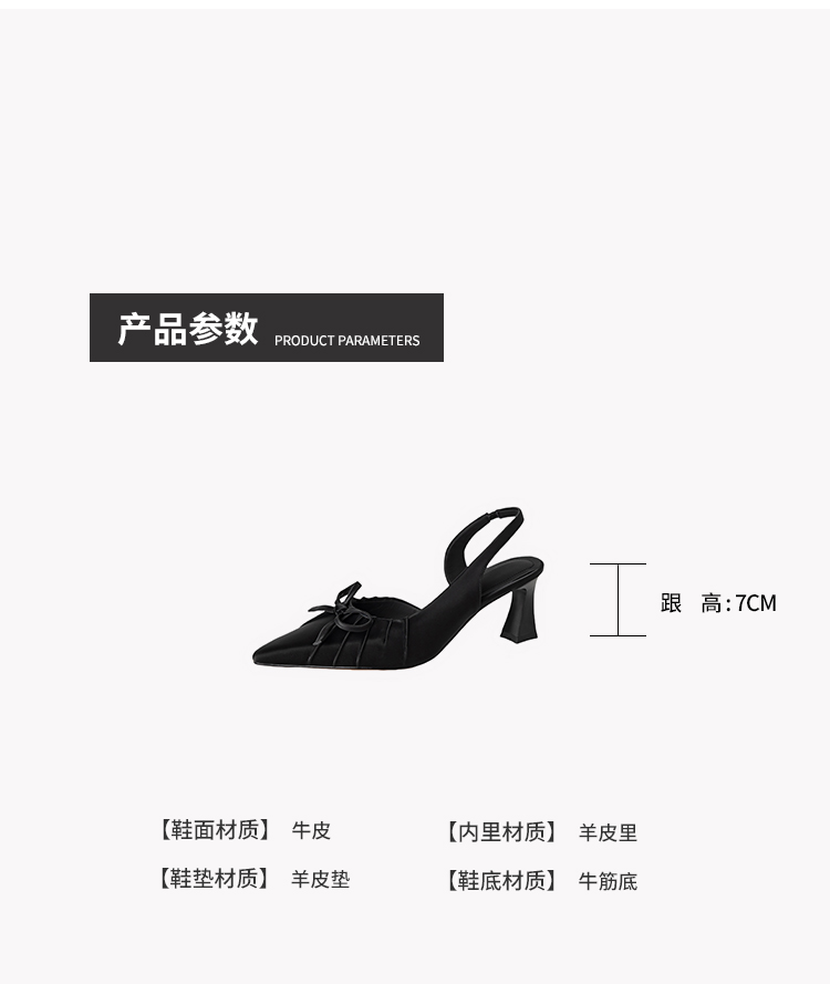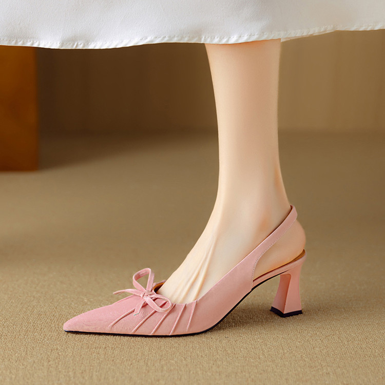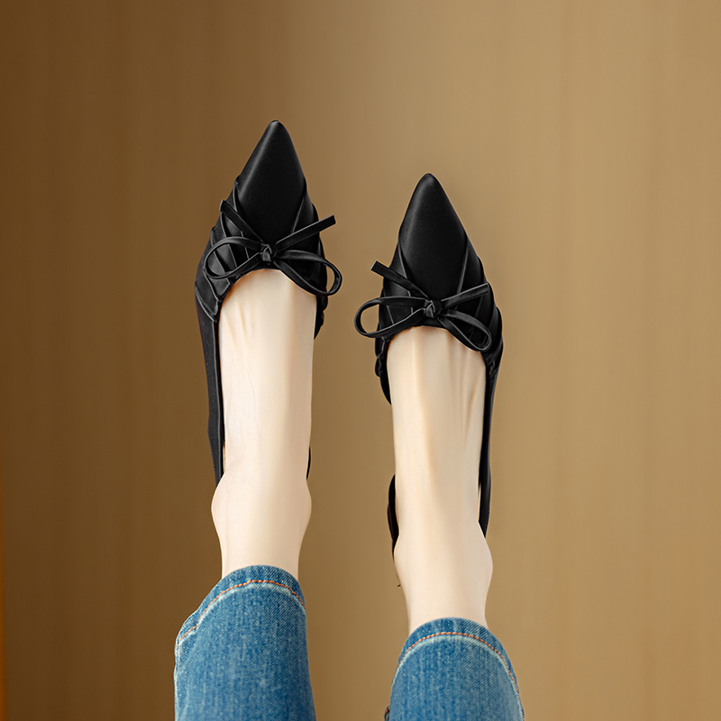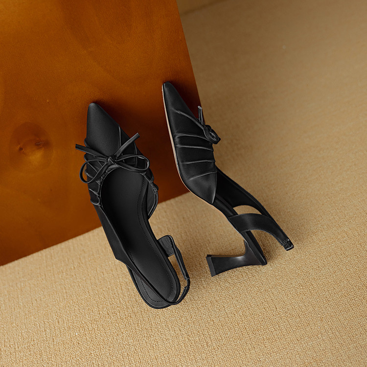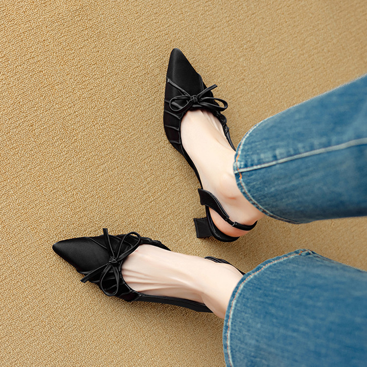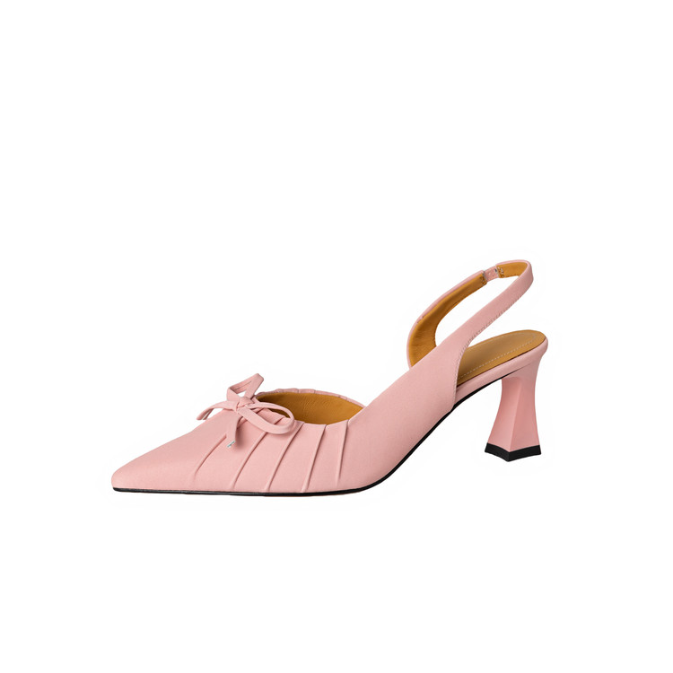 【预售5天】法式气质尖头皱褶包头后空凉鞋女春季新款蝴蝶结温柔高跟单鞋DB&M6263