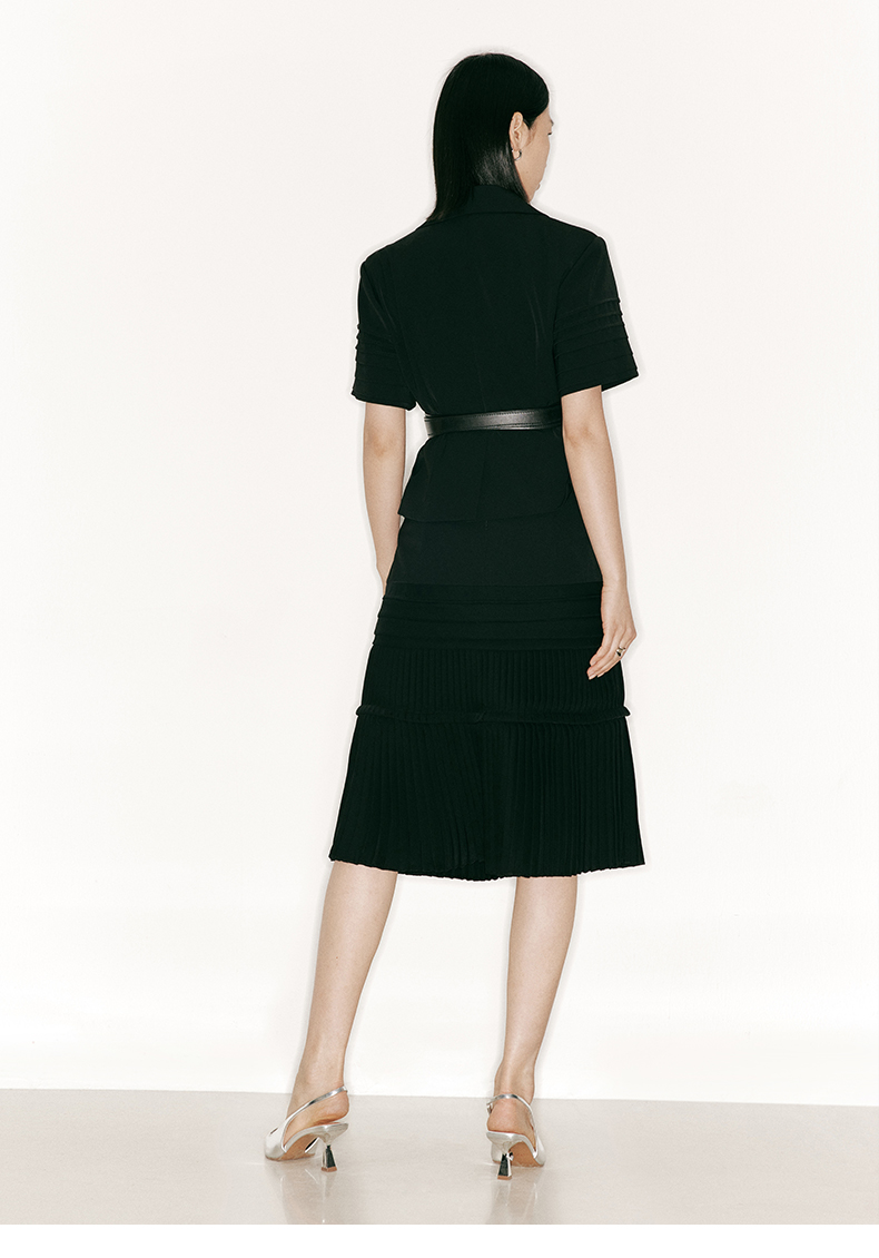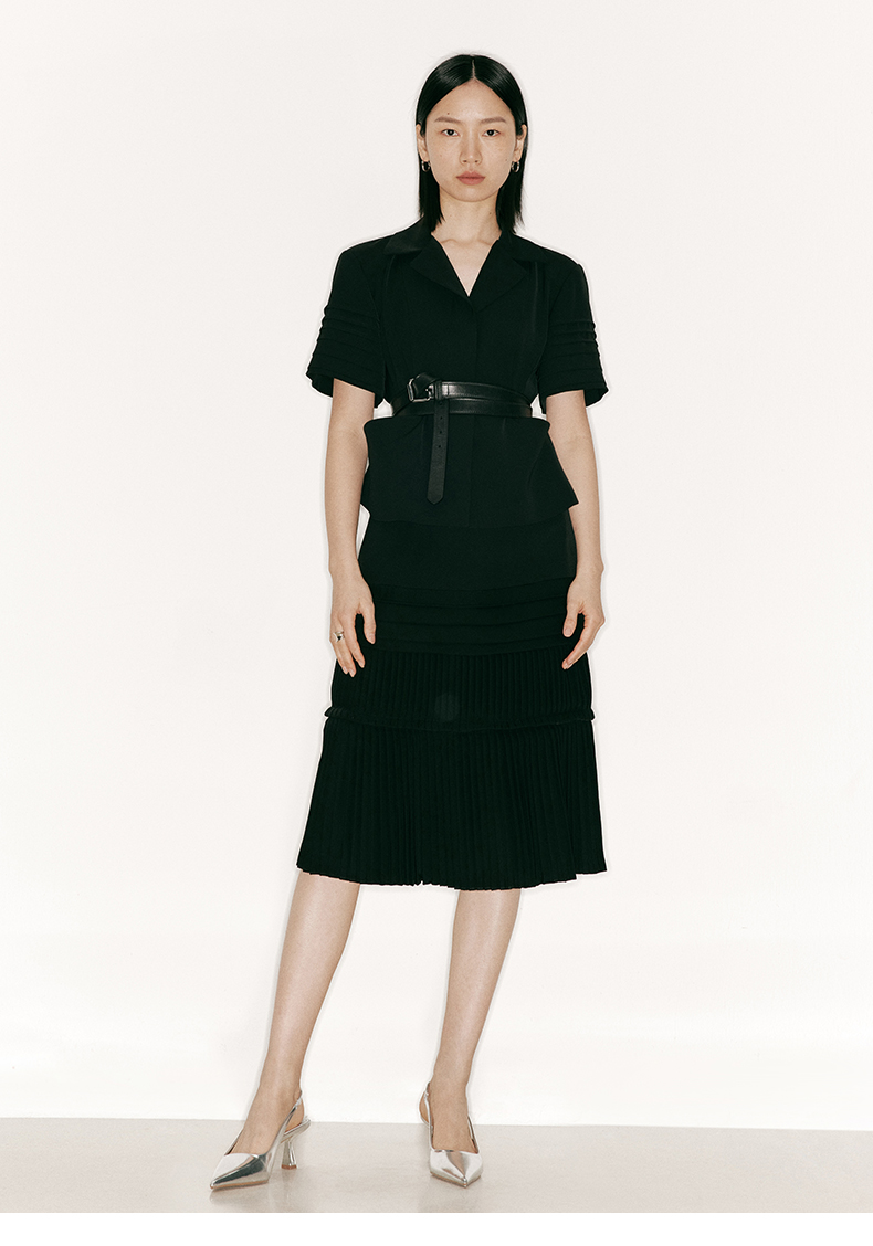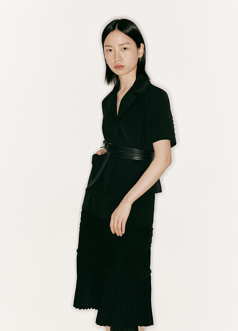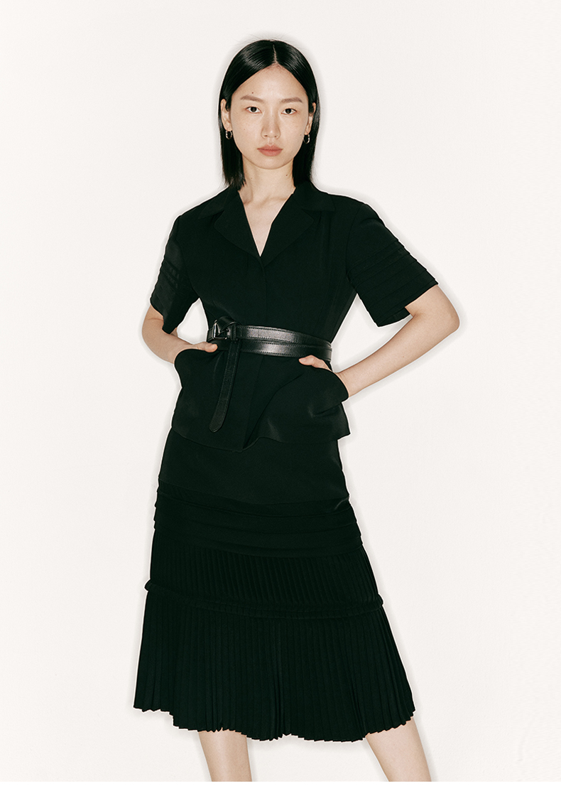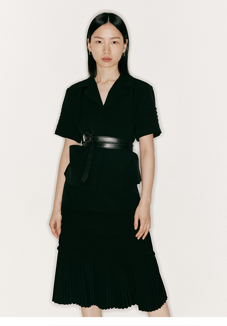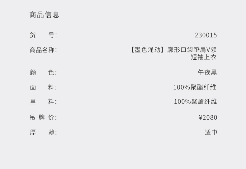 【墨色涌动】廓形口袋垫肩V领短袖上衣/230015