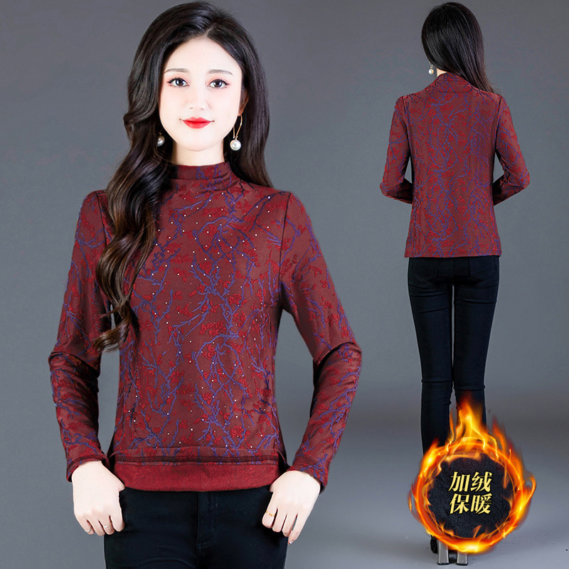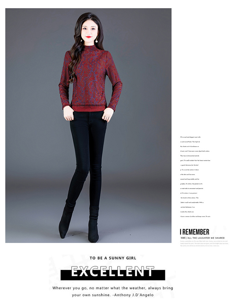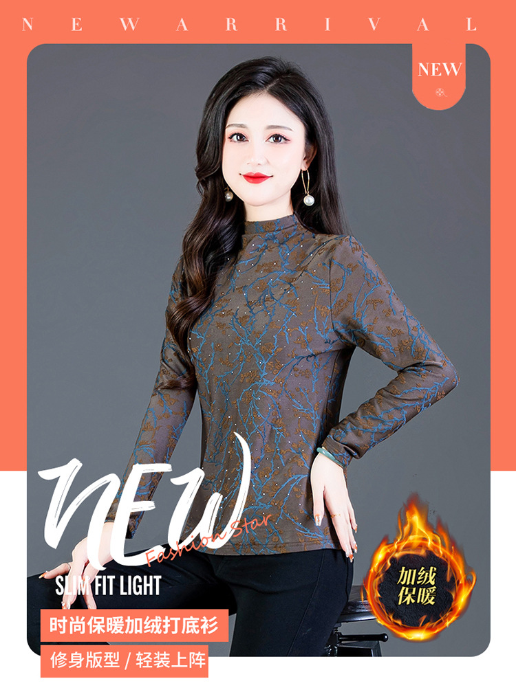 加绒加厚打底衫,刺绣花短款保暖女士小衫QYM-TYP-MY8081-Y