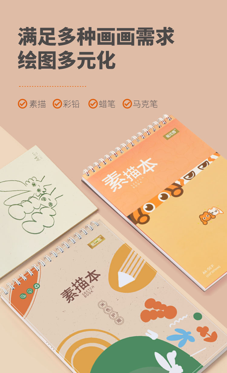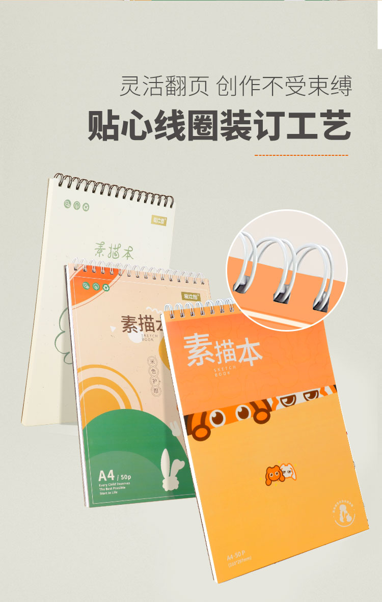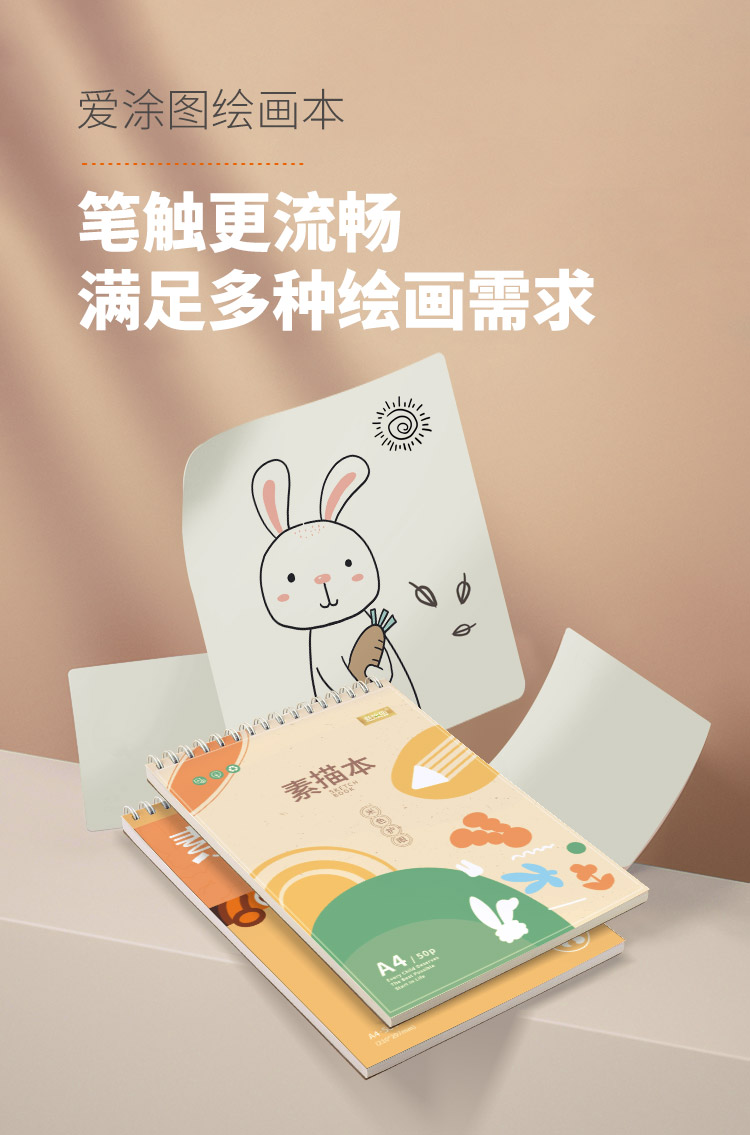 爱涂图A4线圈画画素描本儿童手绘本马克笔专用绘画本速写纸8K小学校彩铅涂鸦水彩画纸素描纸美术生专用