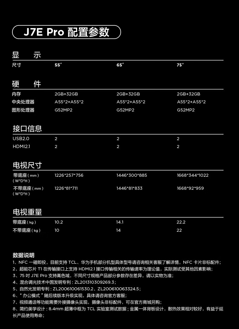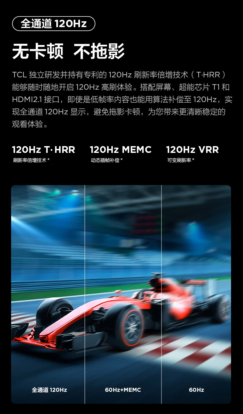 TCL电视 75J7E Pro 75英寸 全通道120Hz 超能芯片T1 电影级130%高色域 莱茵认证2+32GB 高刷极速电视