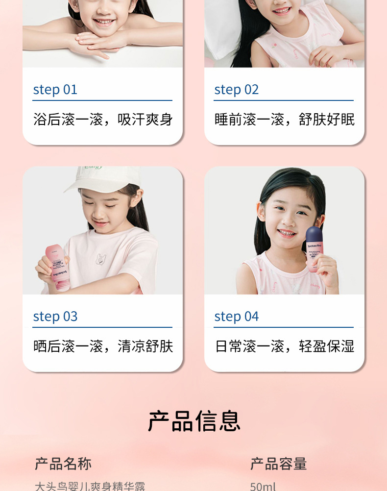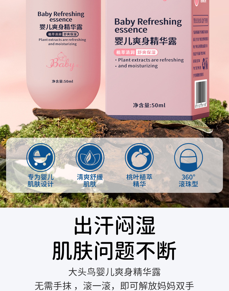 【舒缓退红!清爽不粘腻】大头鸟桃子水爽身露宝宝痱子粉婴儿专用液体爽身粉新生儿夏季防痱。xb