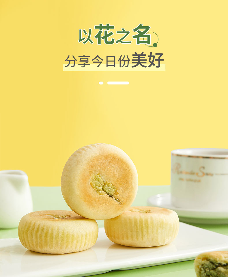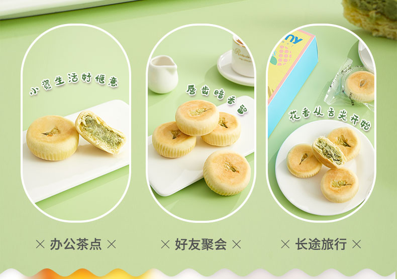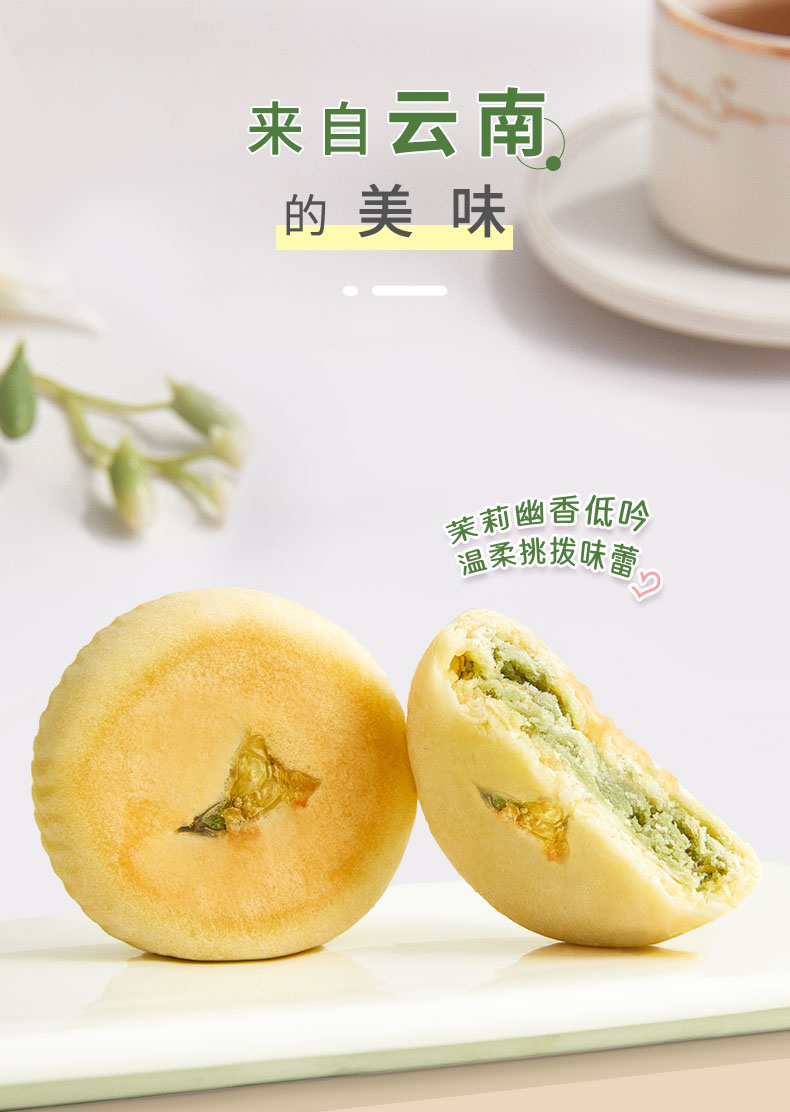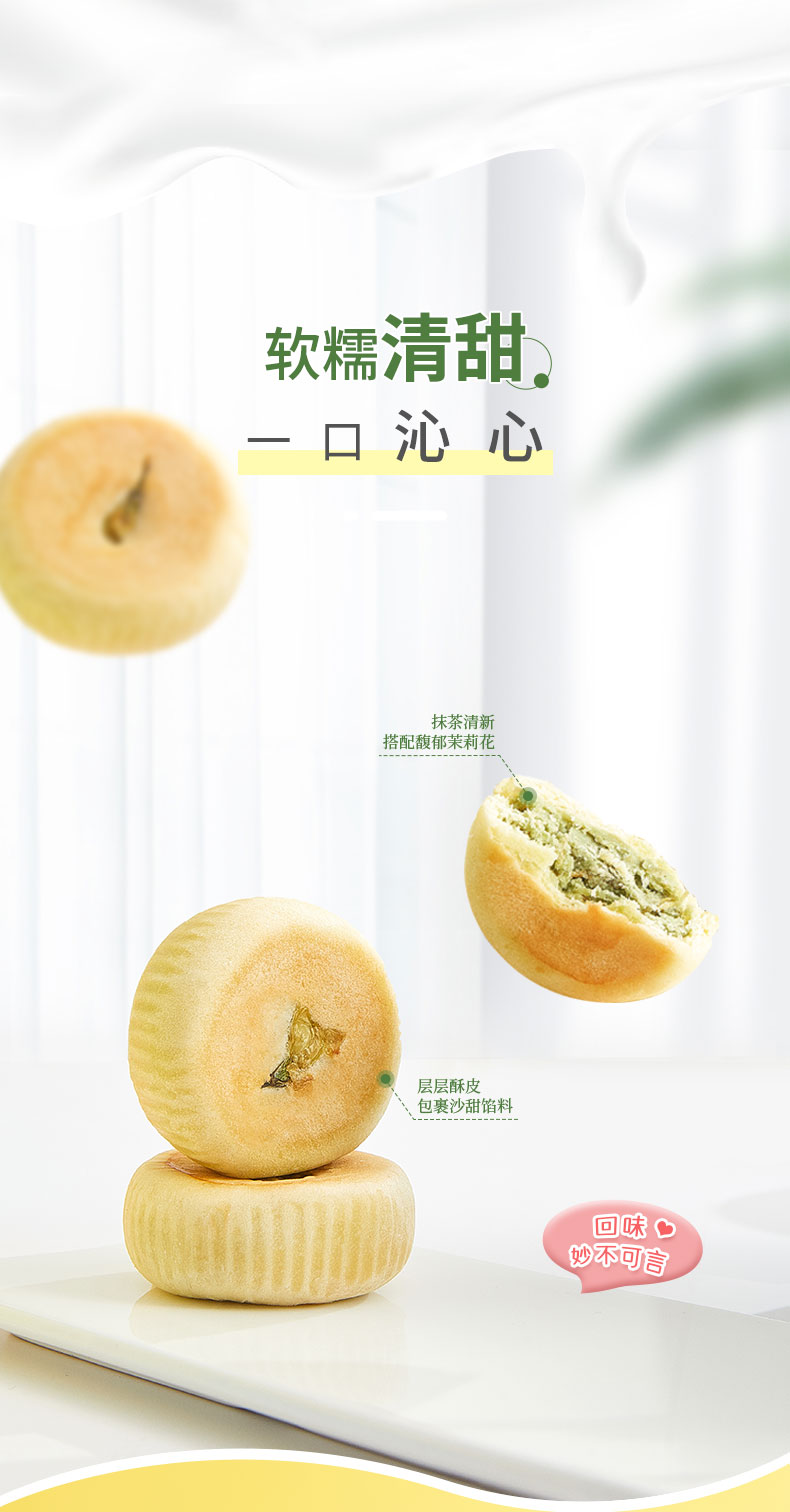 雅觅 抹茶茉莉花饼280g 8枚 鲜花饼特产小吃 营养休闲食品零食