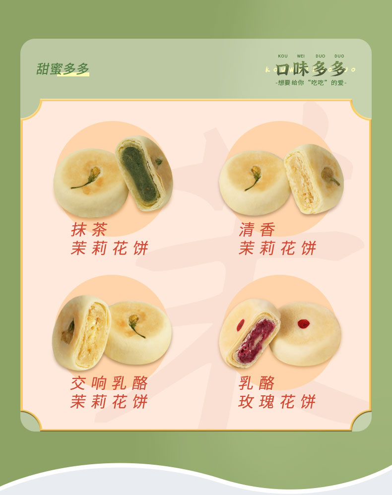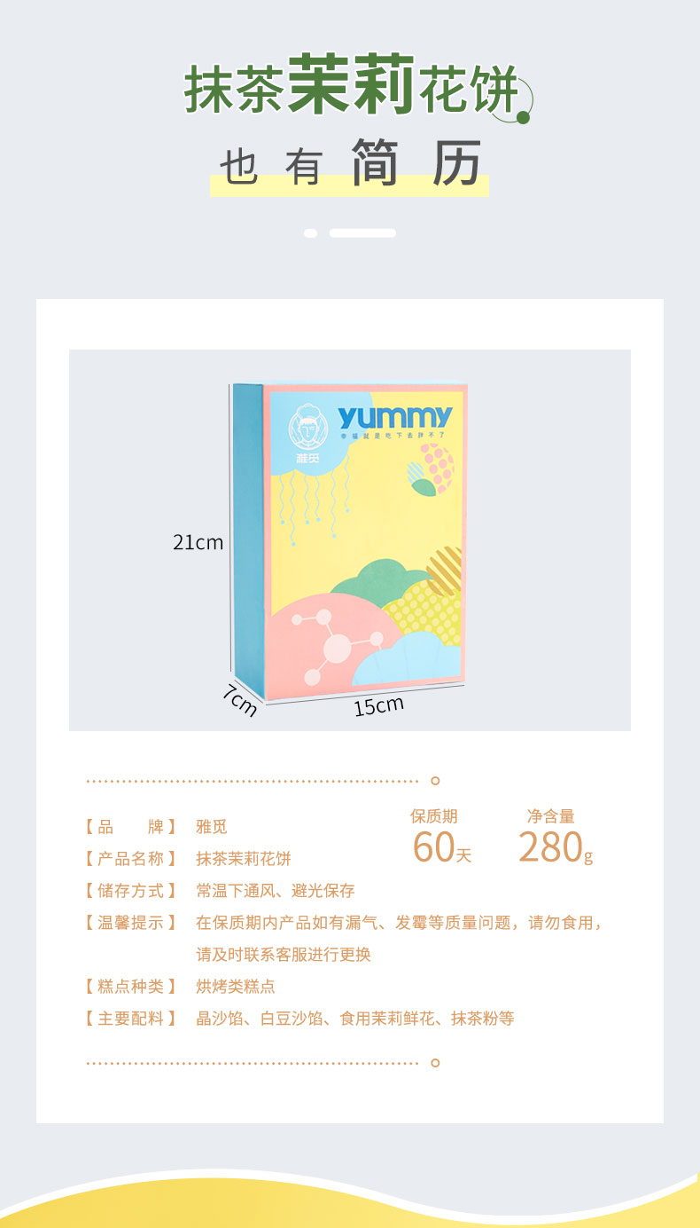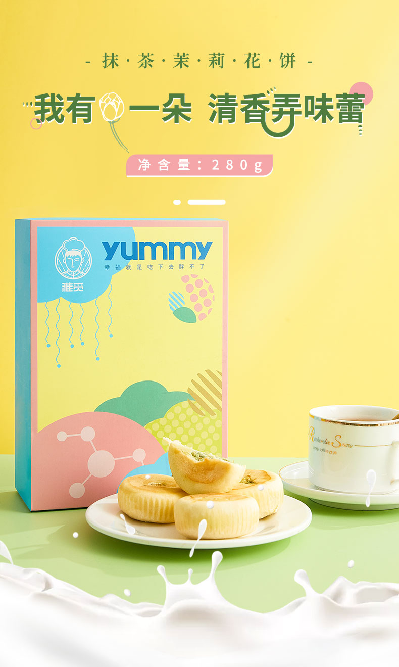 雅觅 抹茶茉莉花饼280g 8枚 鲜花饼特产小吃 营养休闲食品零食