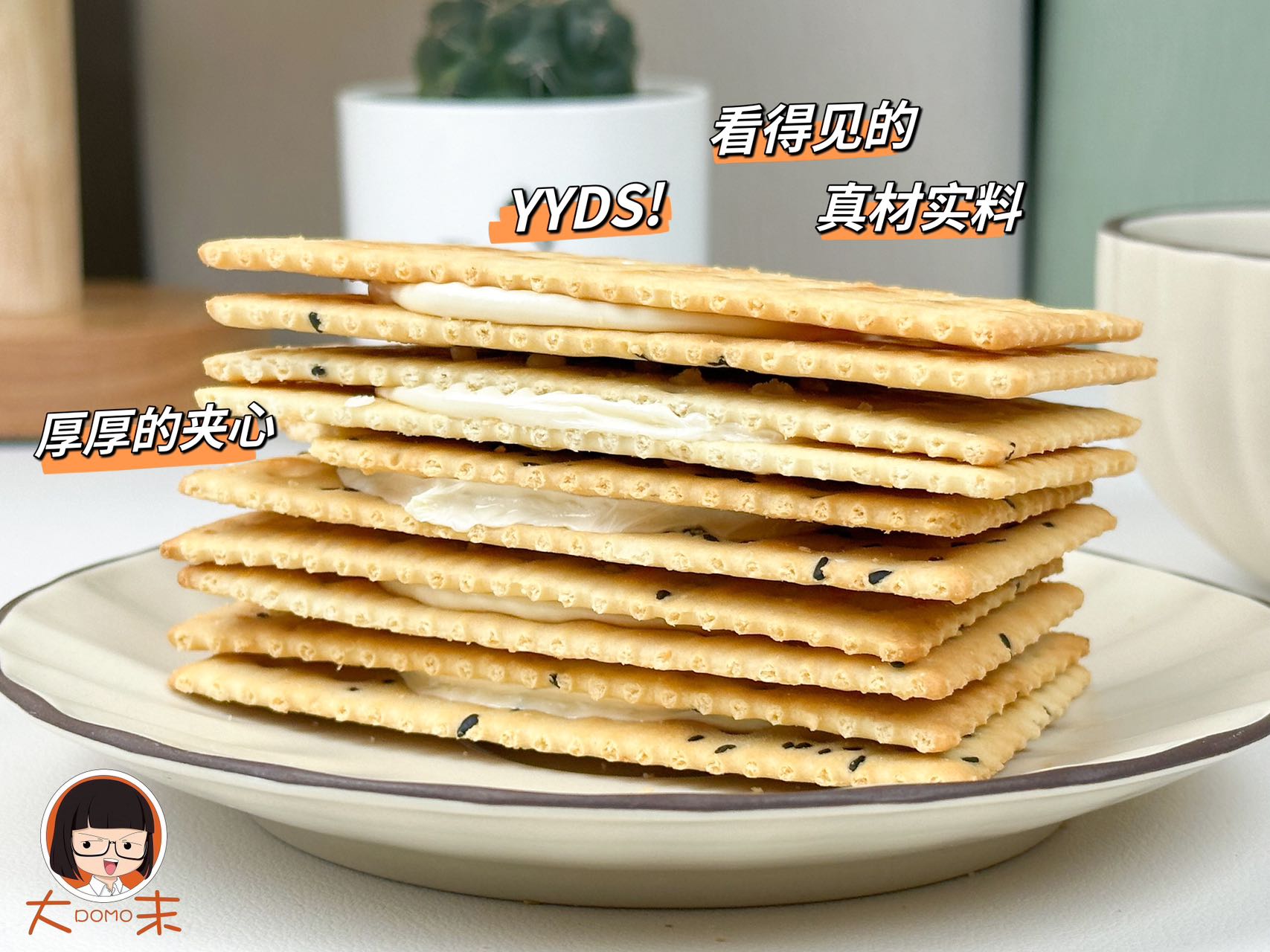 饼干是酥脆的,包裹着里面软软的夹心,口感层次贼丰富,一整个治愈住了……