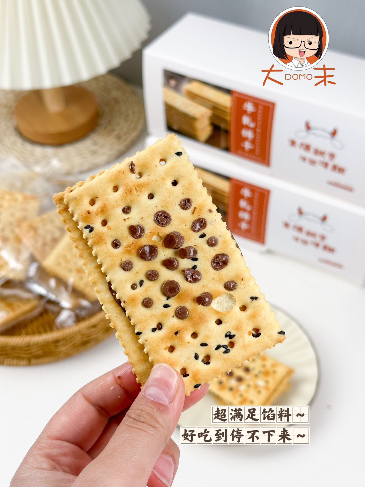 口感独特:饼干香酥脆、夹心香甜,结合起来口感丰富,一口咬下去嘎嘣脆,口感酥脆,好吃不腻。