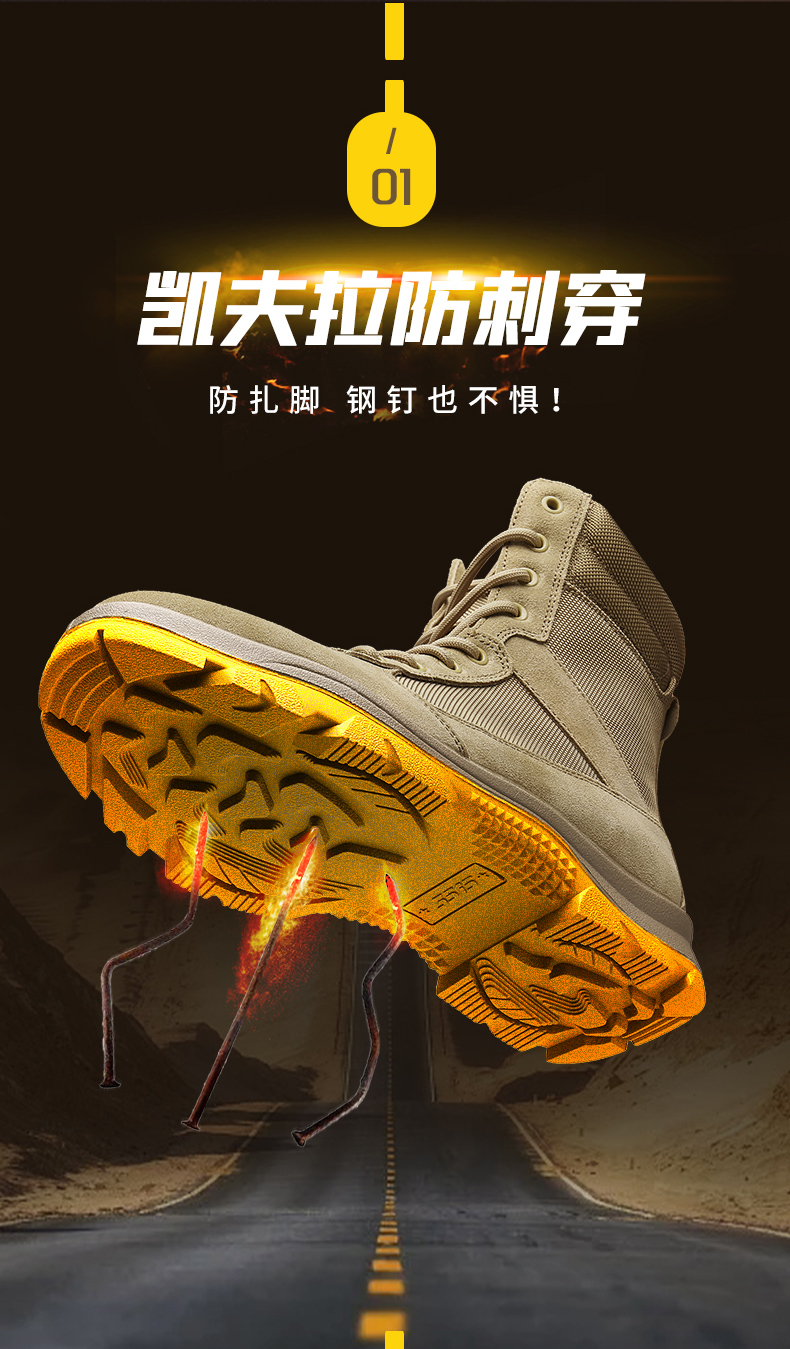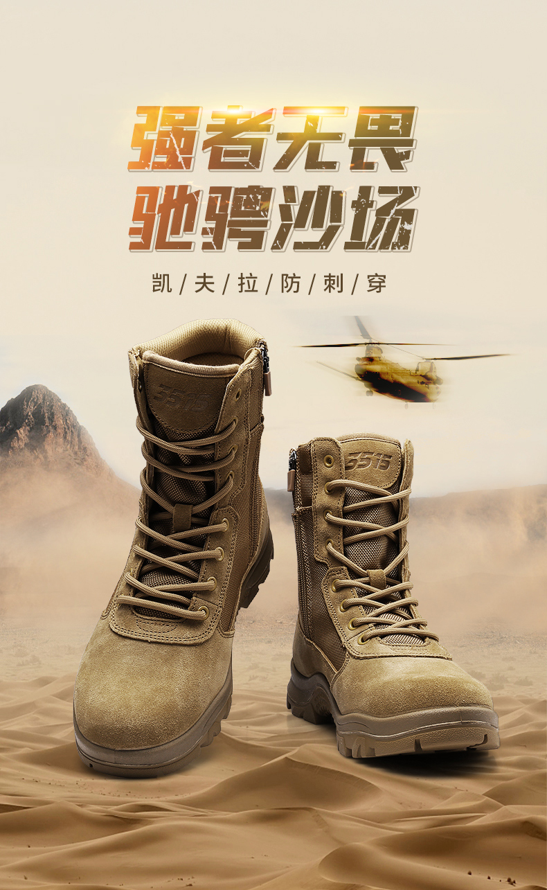 强人3515男靴户外沙漠靴高帮徒步登山靴凯夫拉防刺穿战术靴