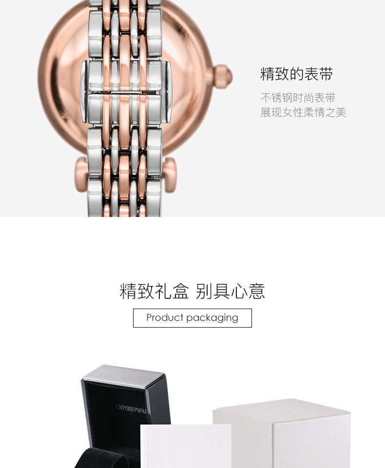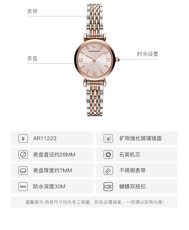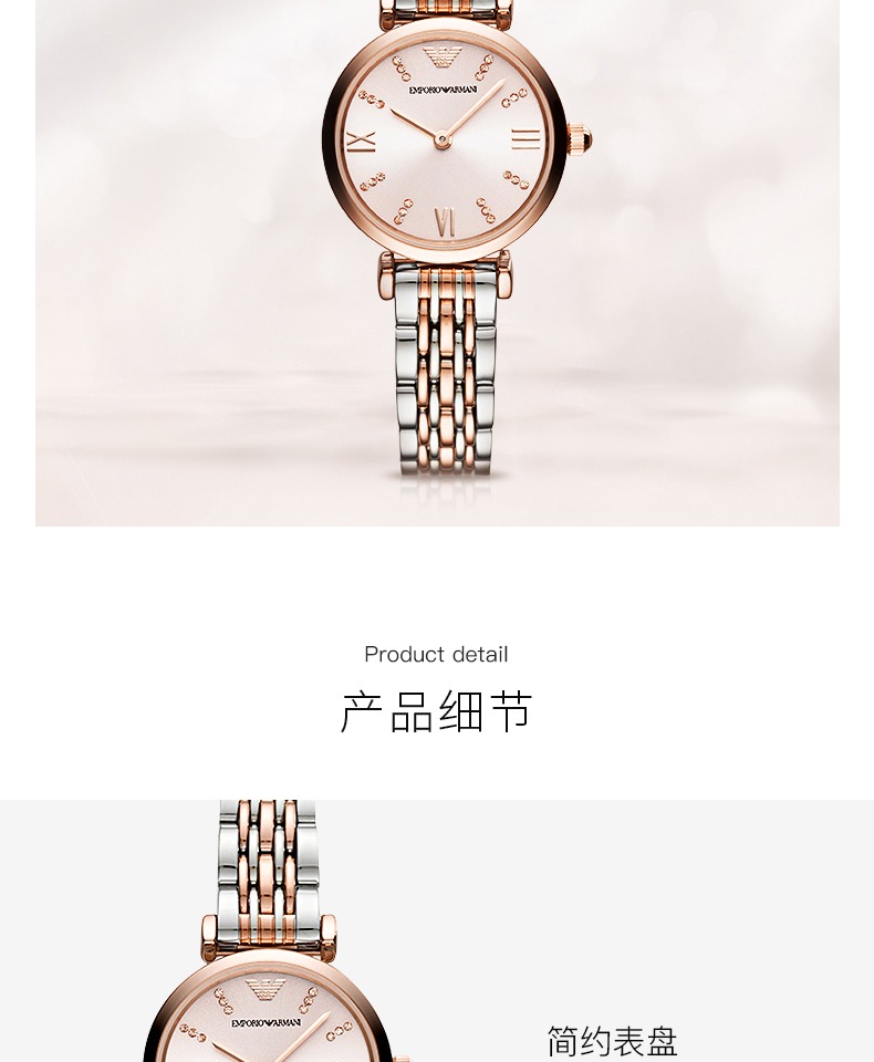Armani阿玛尼手表女 28mm表盘 简约时尚玫瑰金女款AR11223