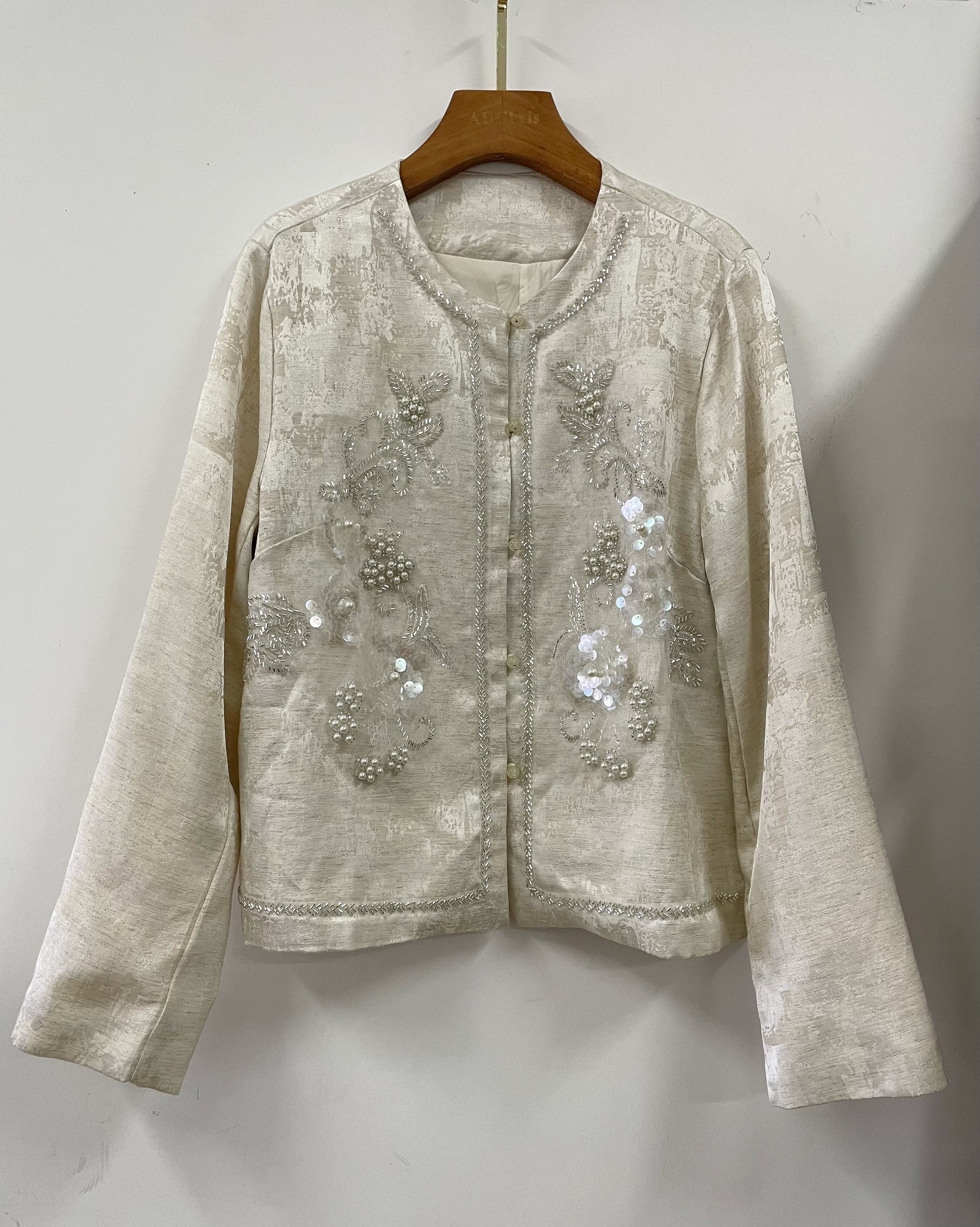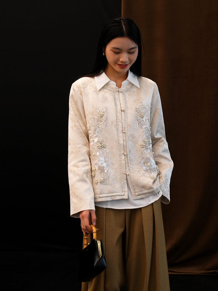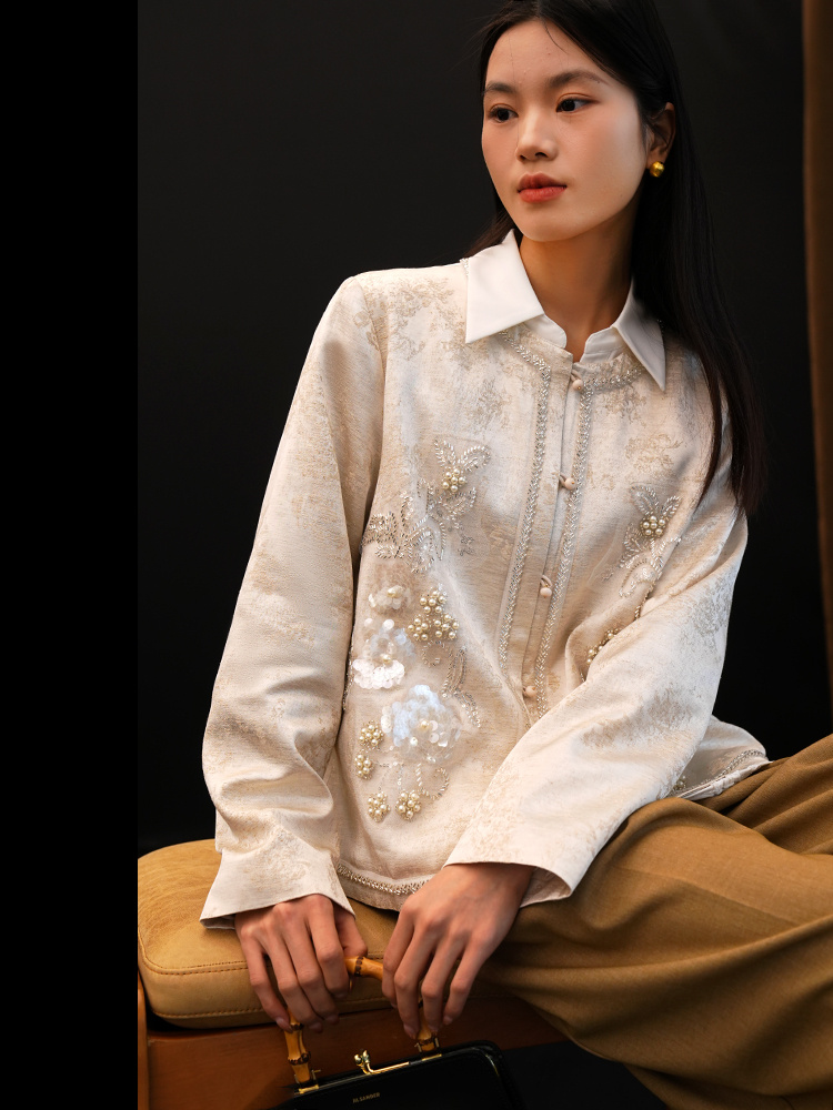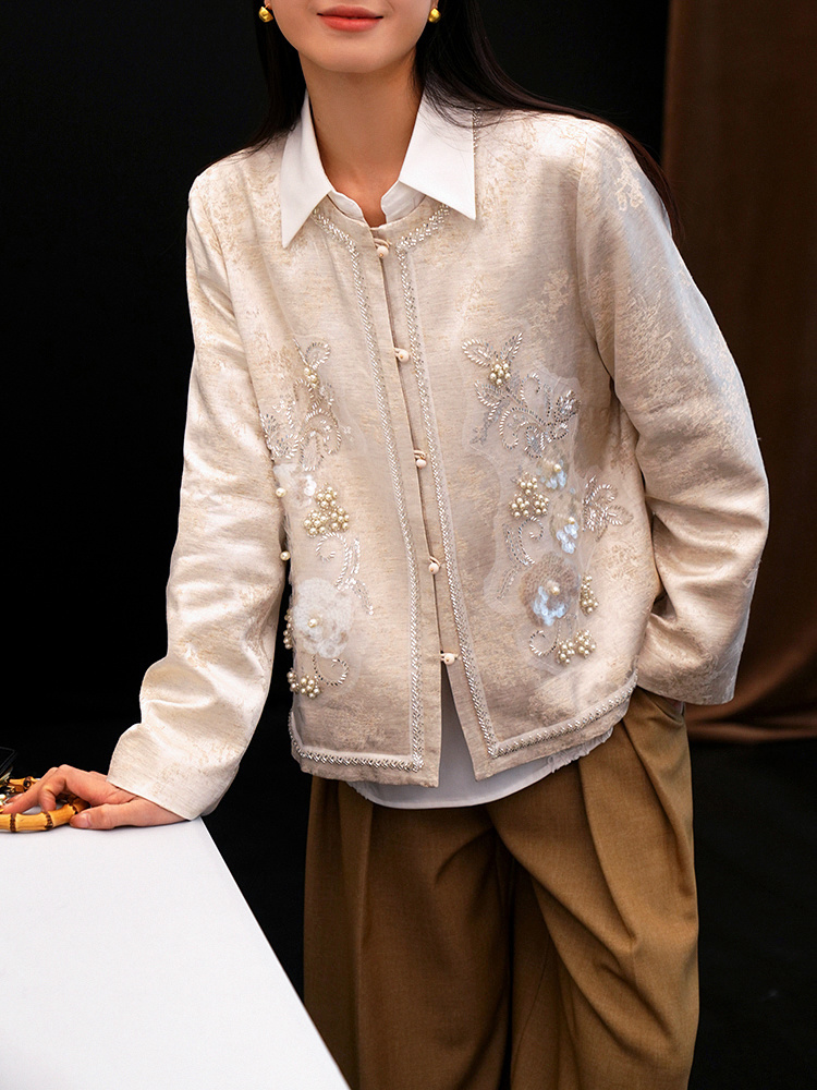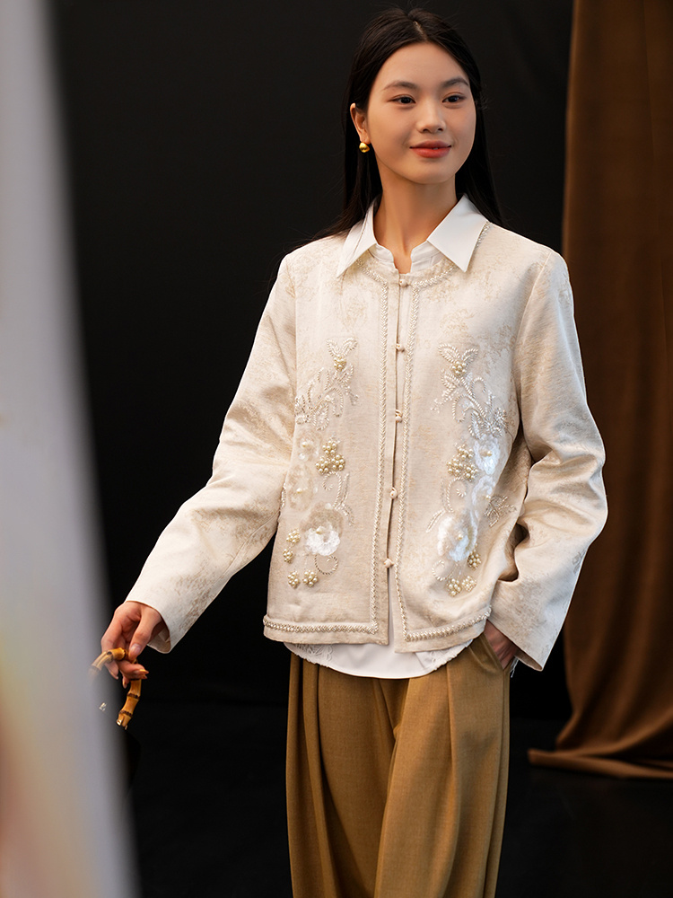 新中式亚麻系列▪国风珠片刺绣上衣,