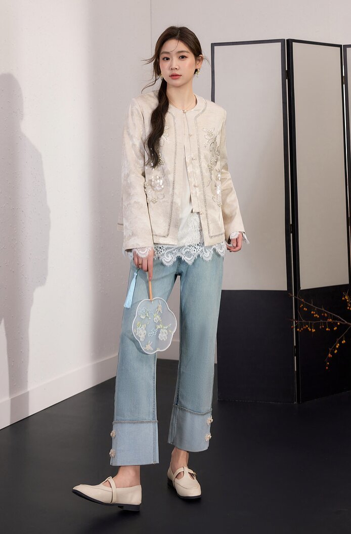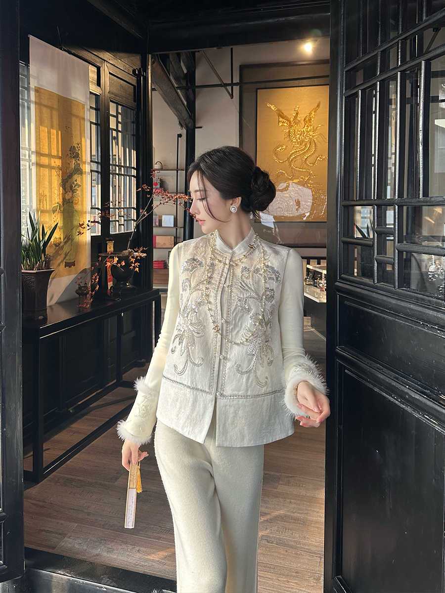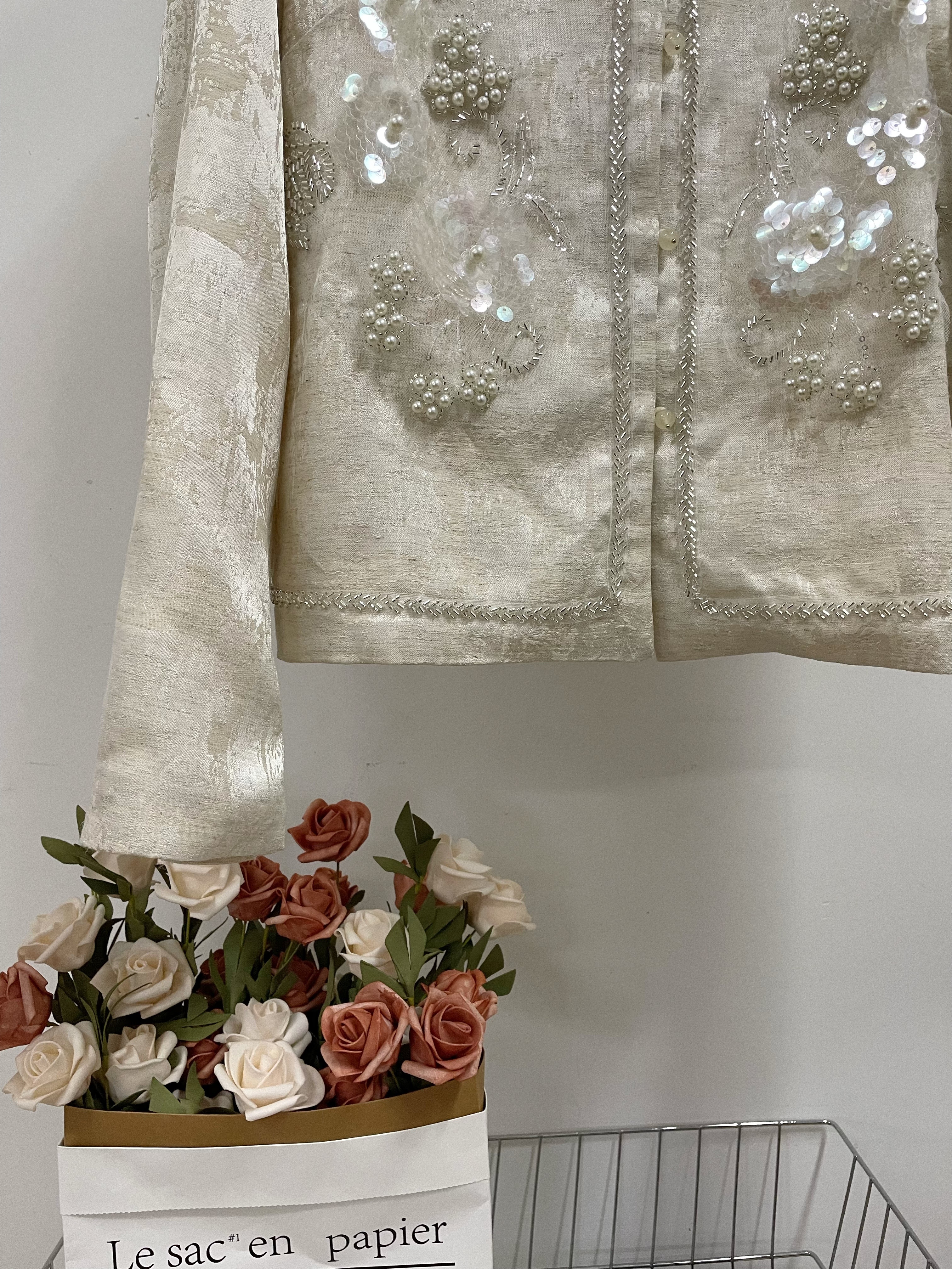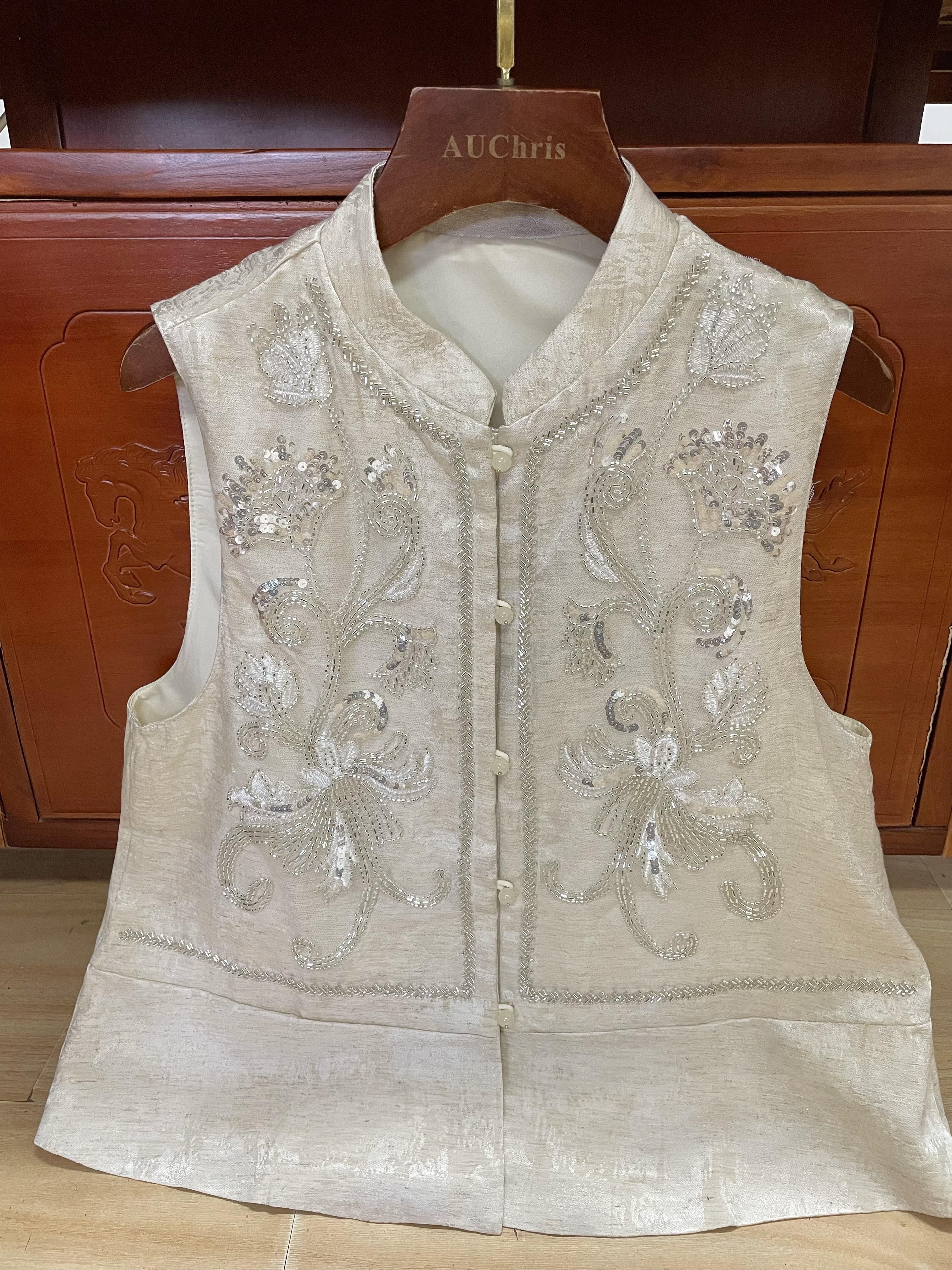 新中式亚麻系列▪国风珠片刺绣上衣,