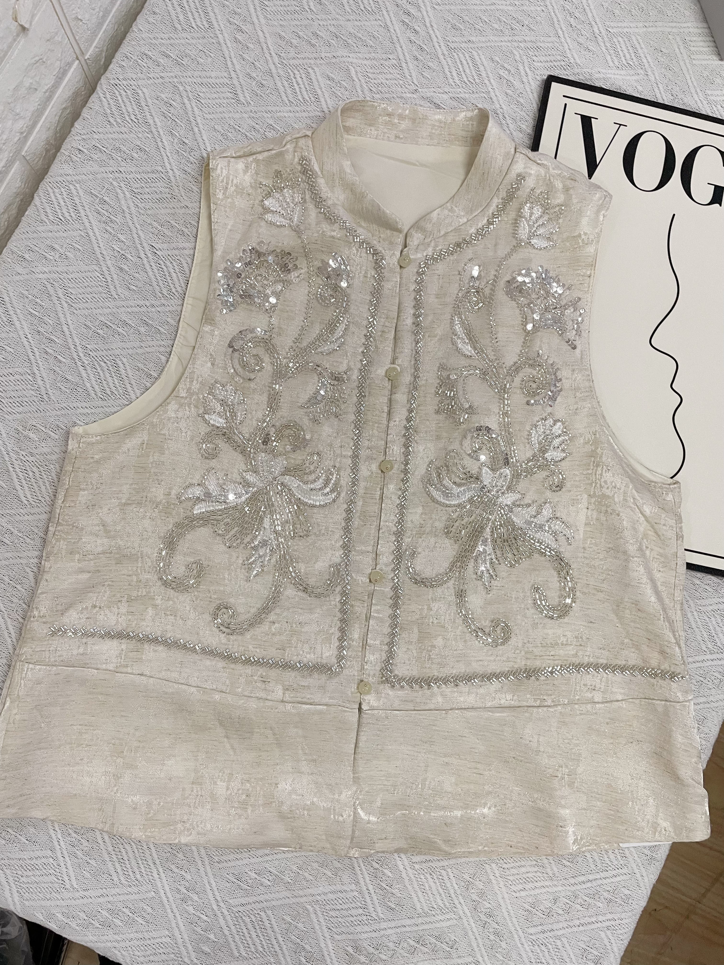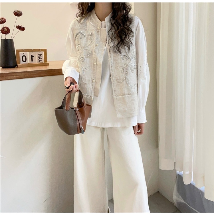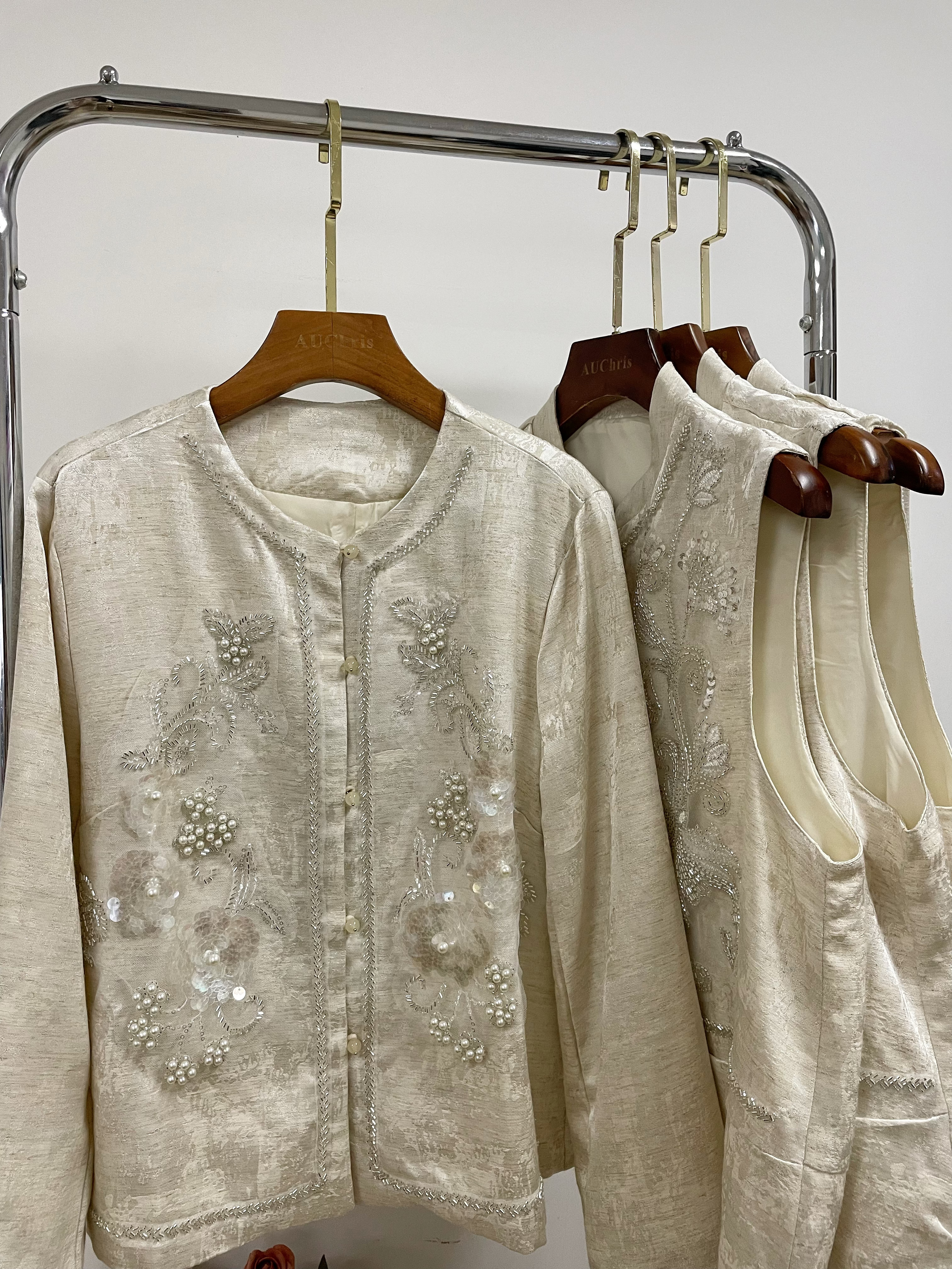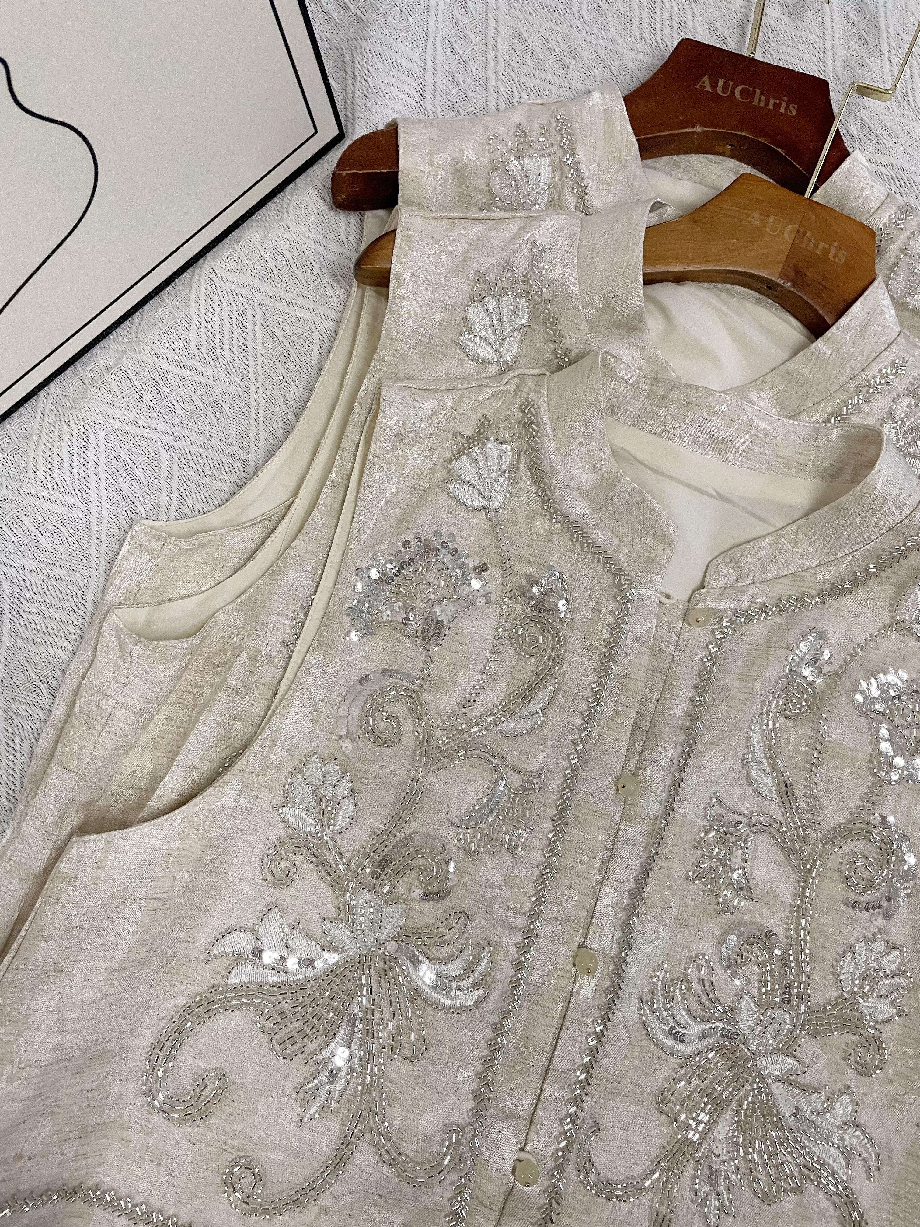 新中式亚麻系列▪国风珠片刺绣上衣,