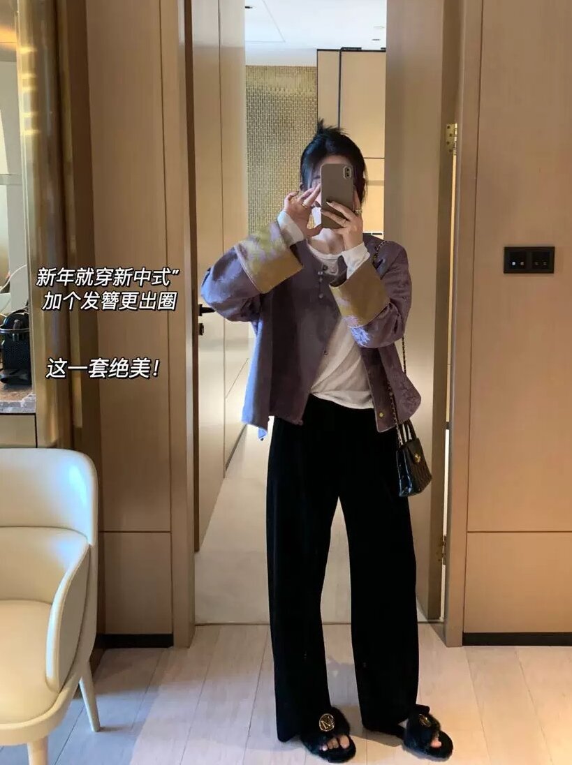 这种穿上都是有点宽松才好看,而且基本都是开扣穿