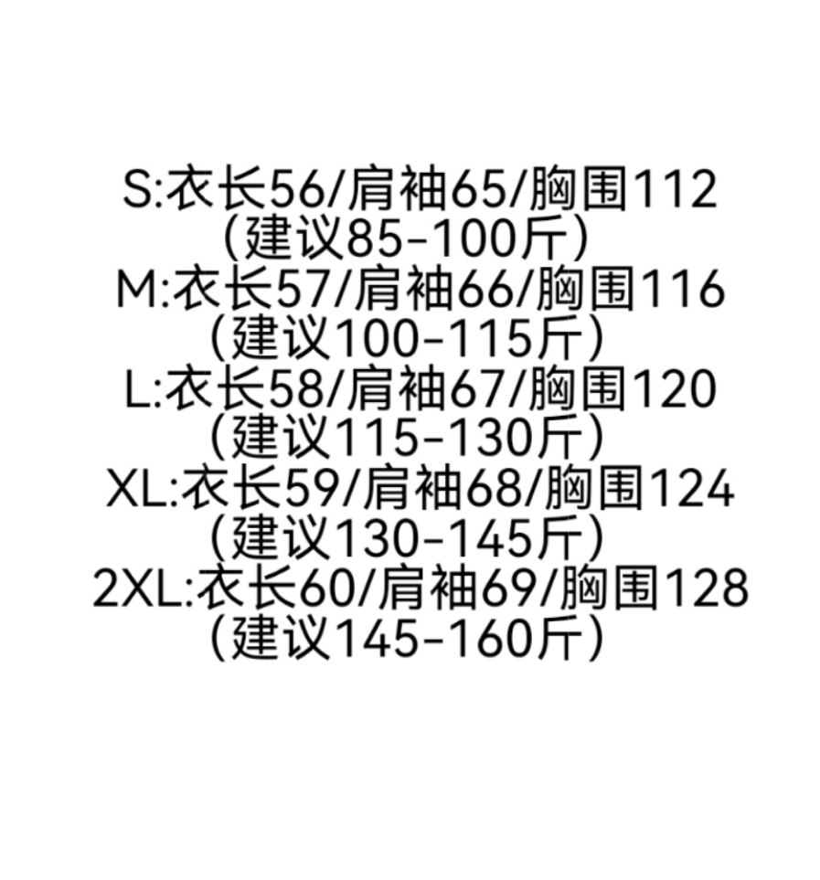 XL:袖长52/胸围1118/衣长61/肩宽50