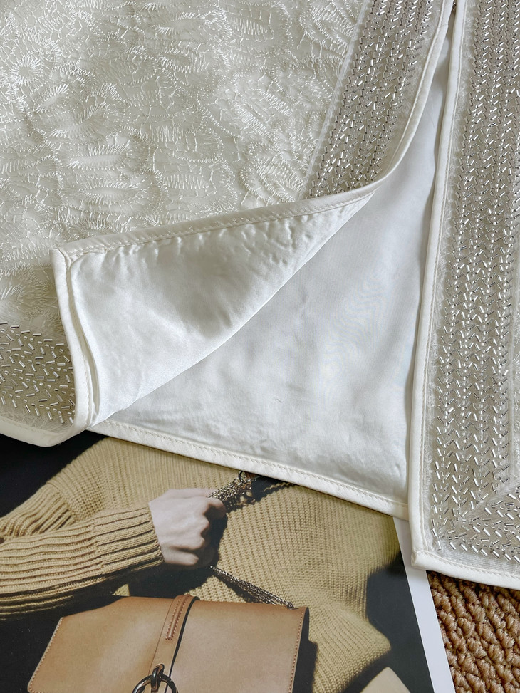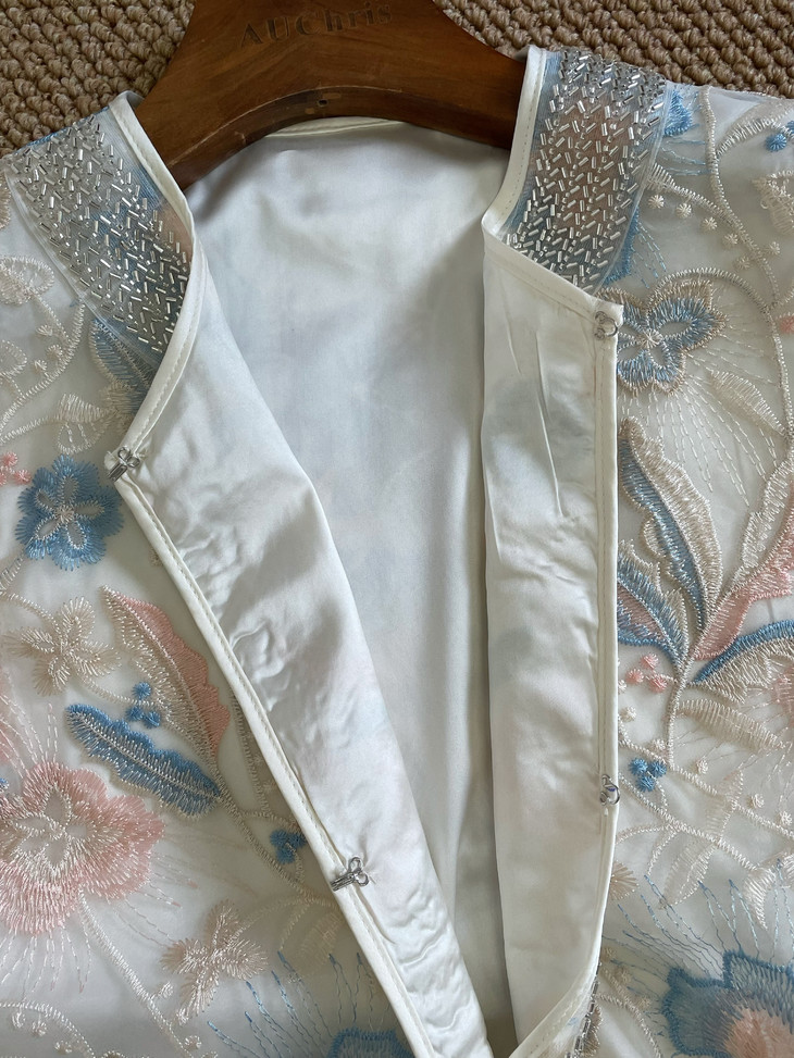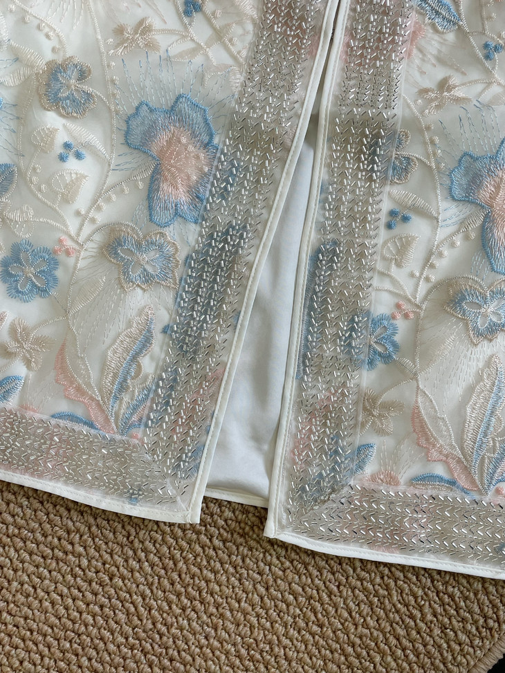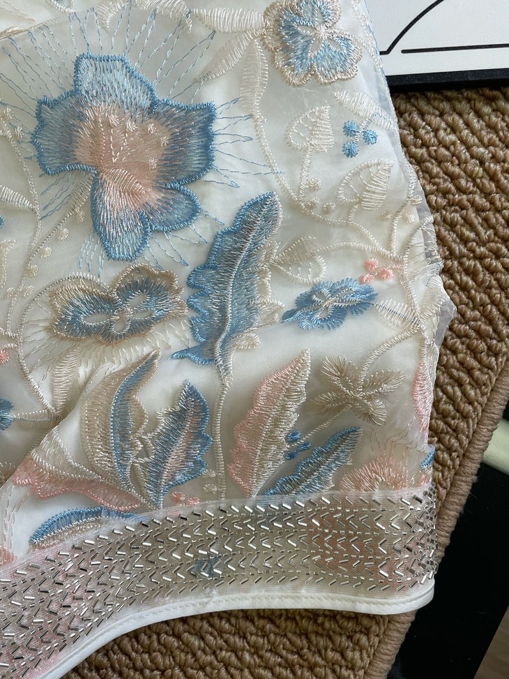 轻盈的欧根纱面料,搭配灵动的刺绣图案