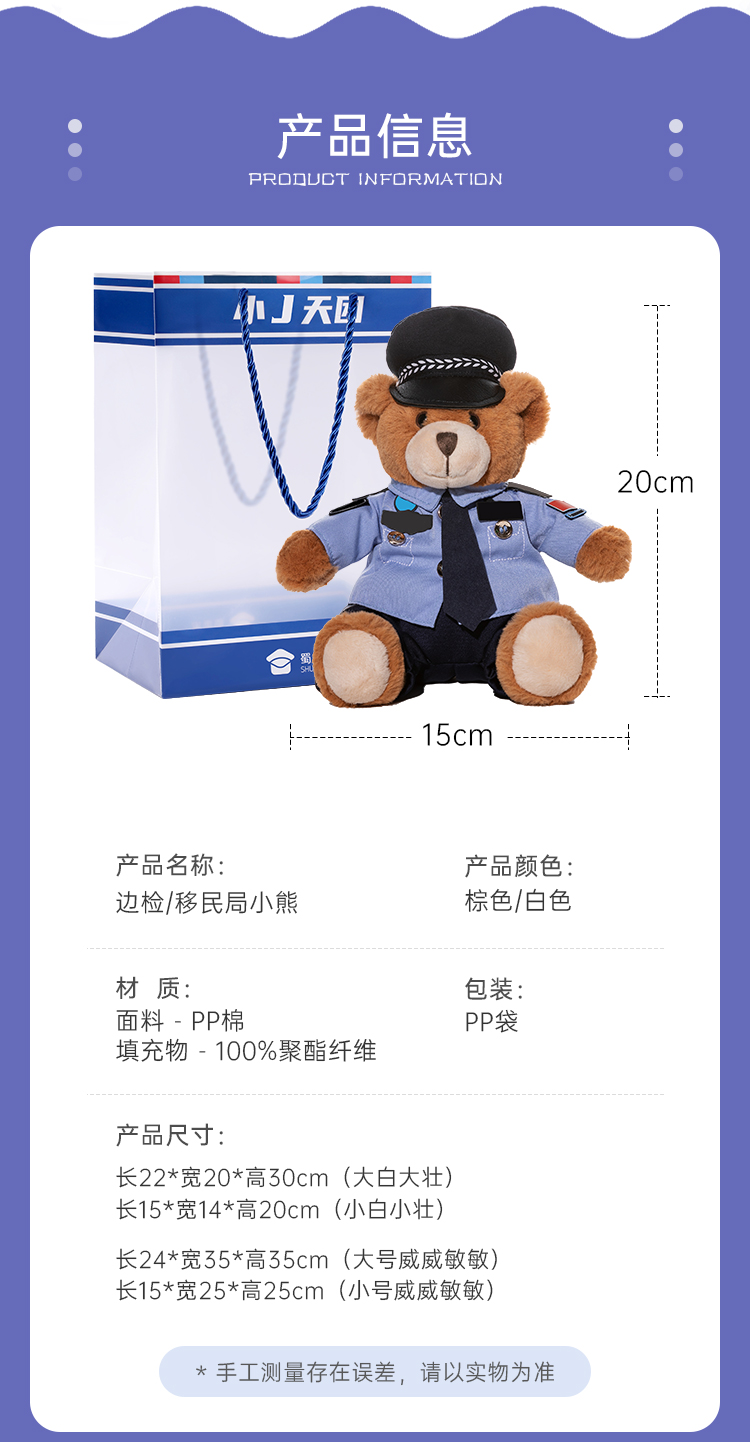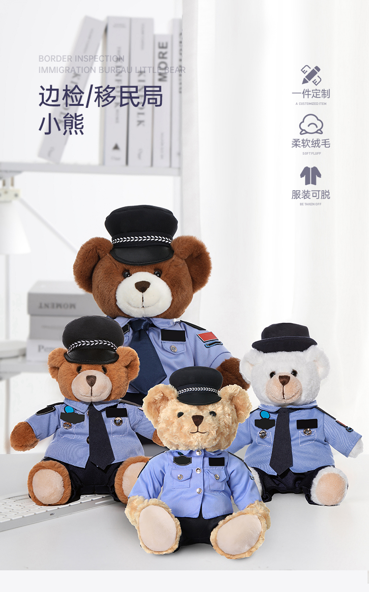 【边检/移民局小熊(可定制)】儿童毛绒公仔玩具创意毛绒小熊玩偶布娃娃送礼礼品礼物