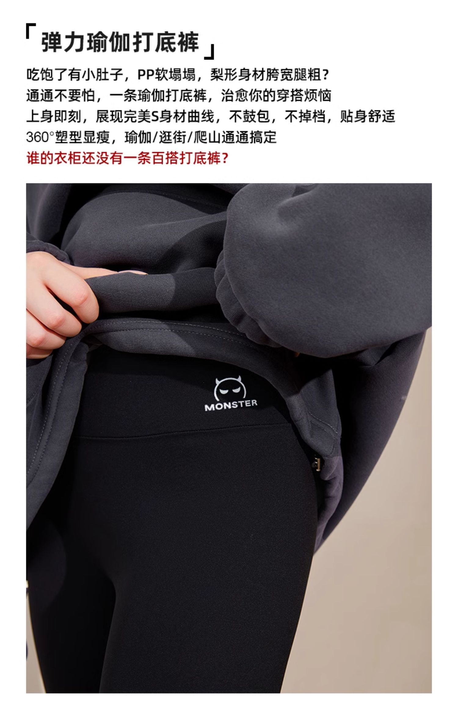 mc2黑色鲨鱼裤女春秋新款瑜伽打底裤舒适弹力提臀芭比裤加绒加厚