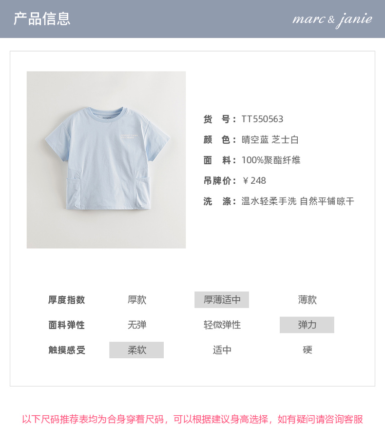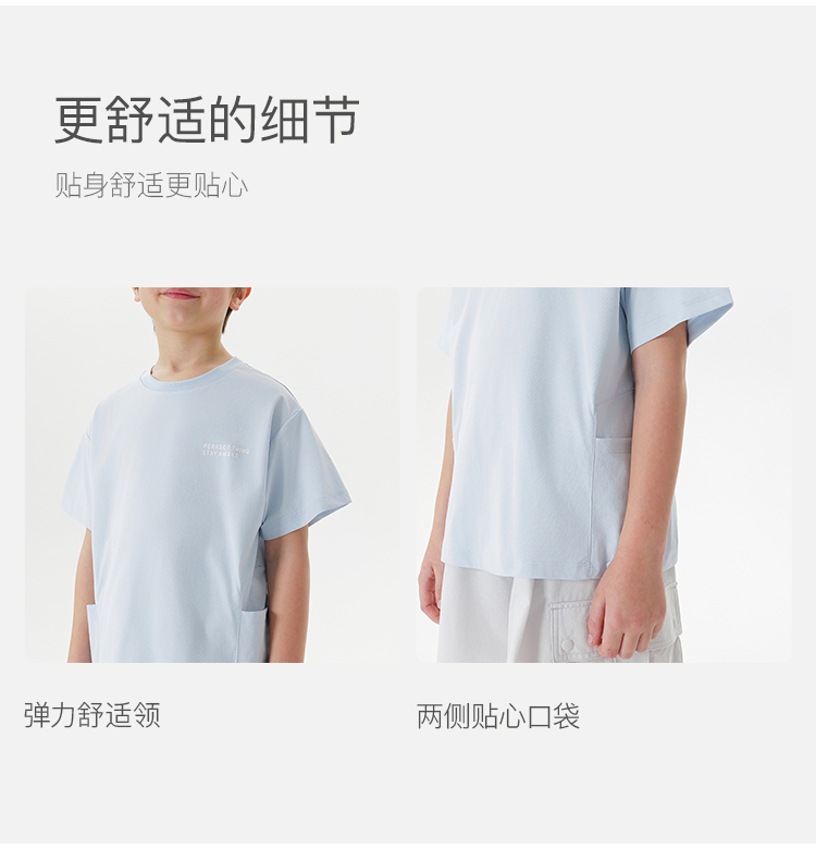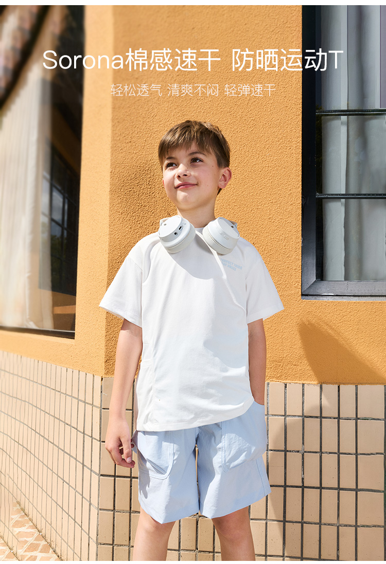 【速干防晒】马克珍妮男童侧边大口袋运动短袖T恤夏装新款550563