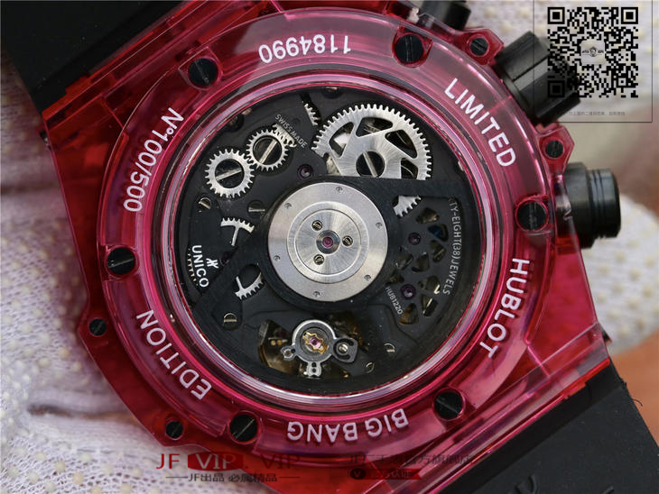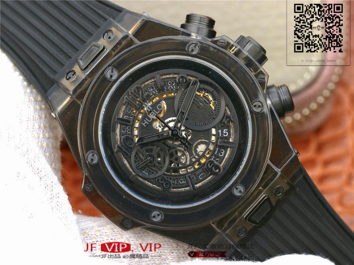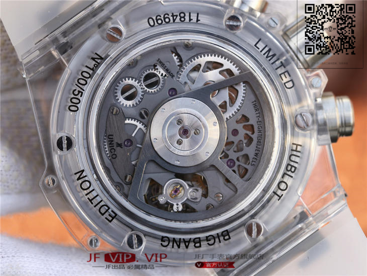 HB宇舶表年度 作品——宇舶BIG BANG系列411.JX.4802.RT“全透腕表”。