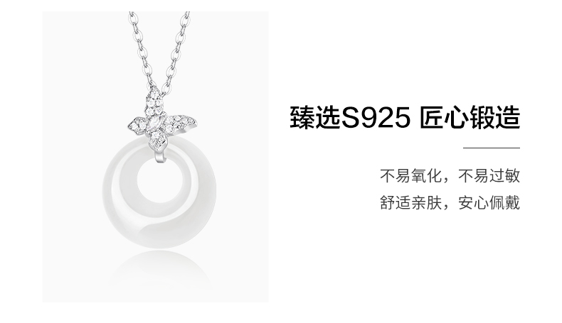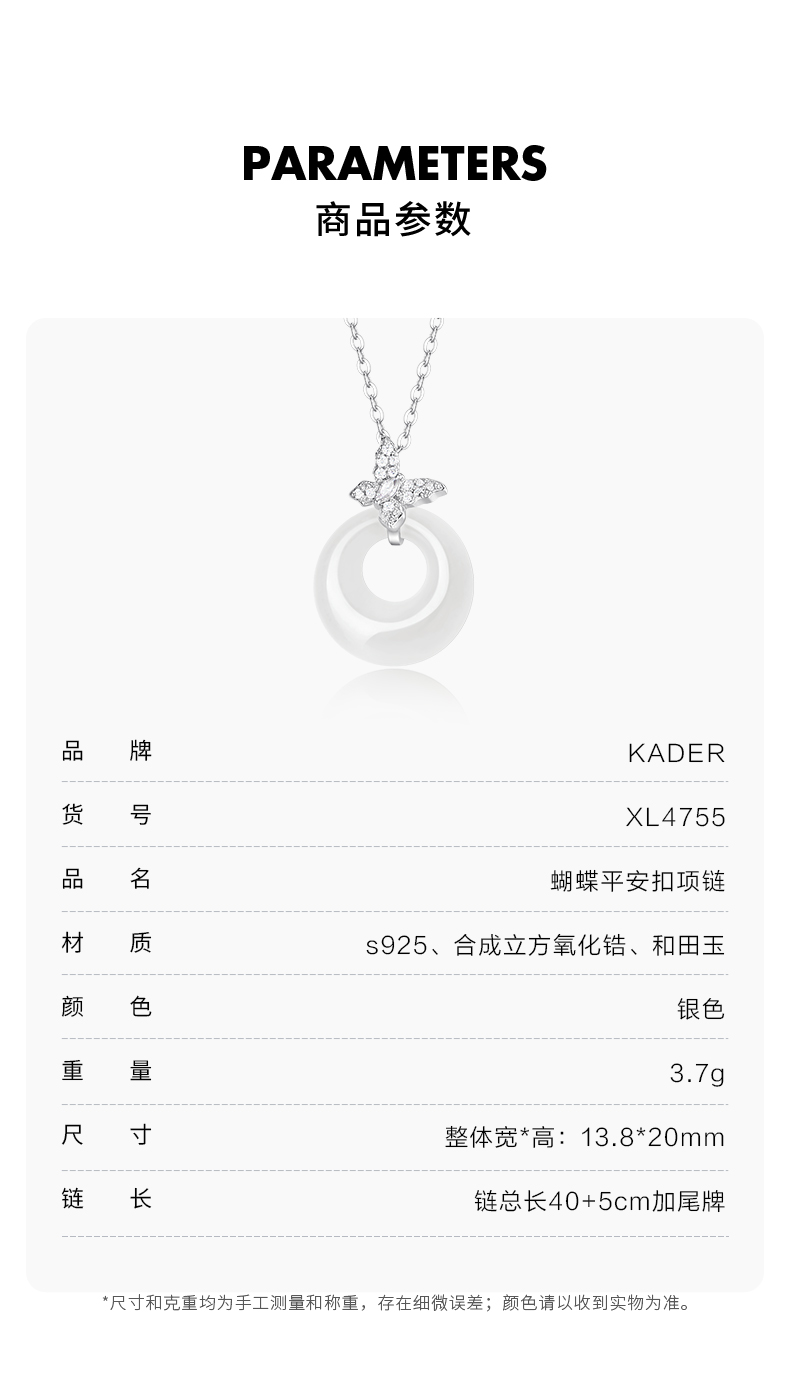 卡蒂罗/KADER 如意福牌系列 蝴蝶平安扣项链 925银和田玉新中式浪漫优雅蝶舞可调节锁骨链 璀璨灵动大气吸睛配饰